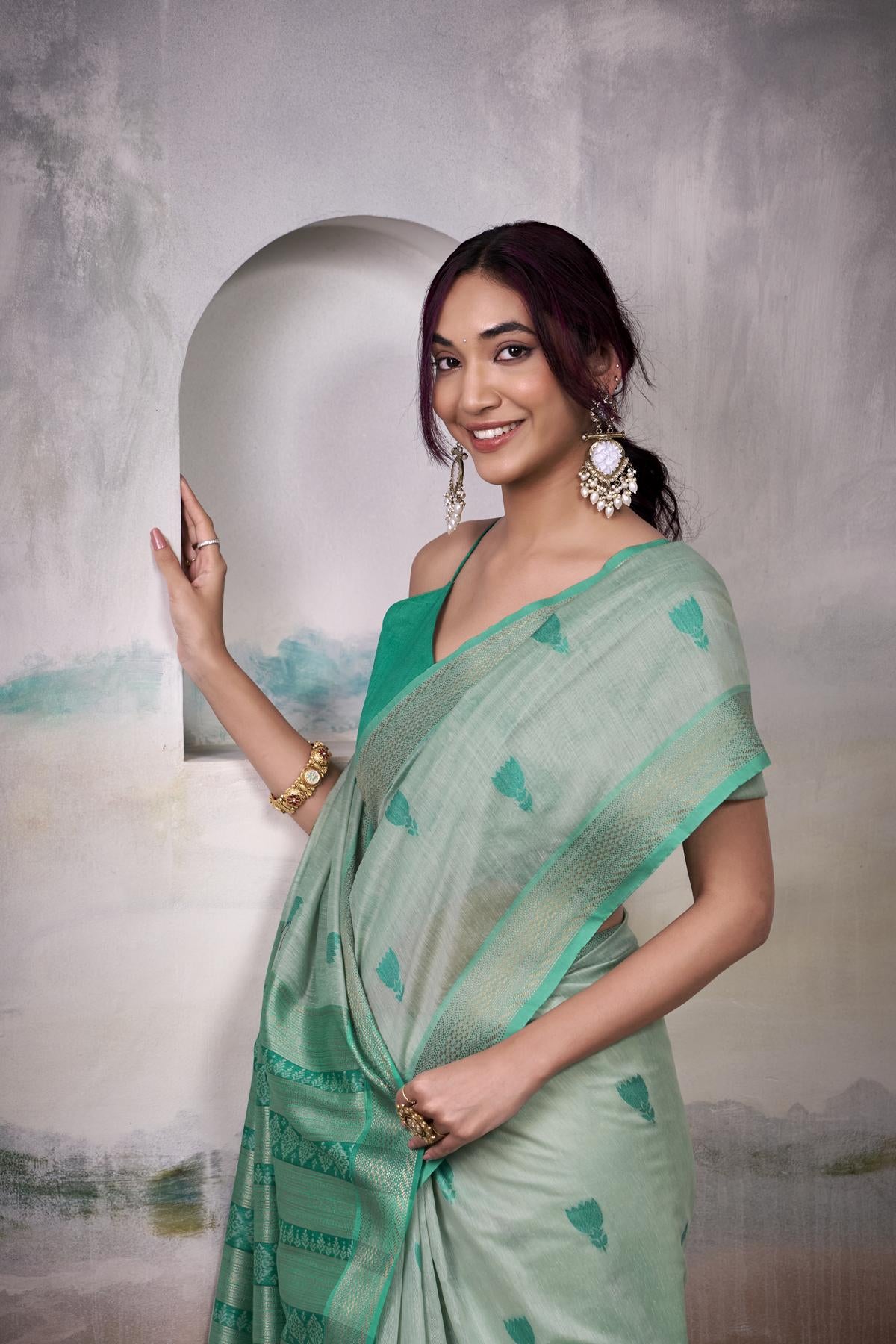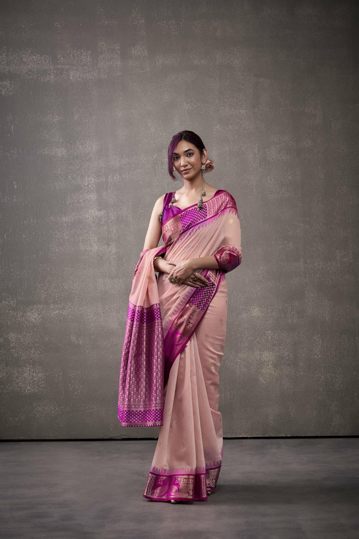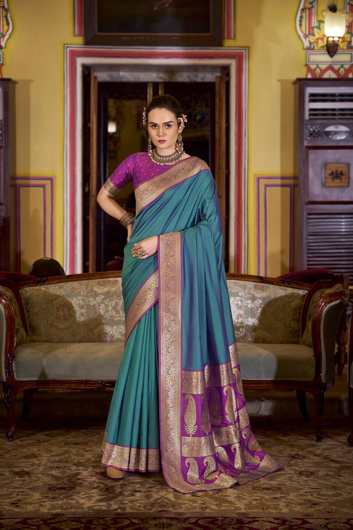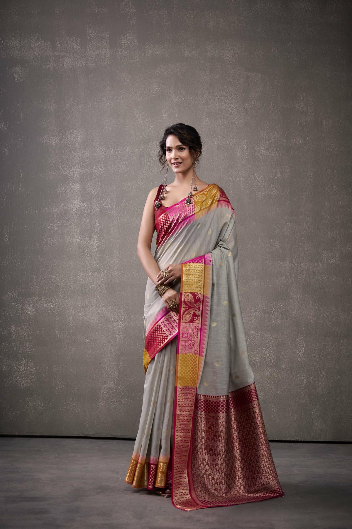 Double-Tone Silk Saree with Glimmering Zari Elegance