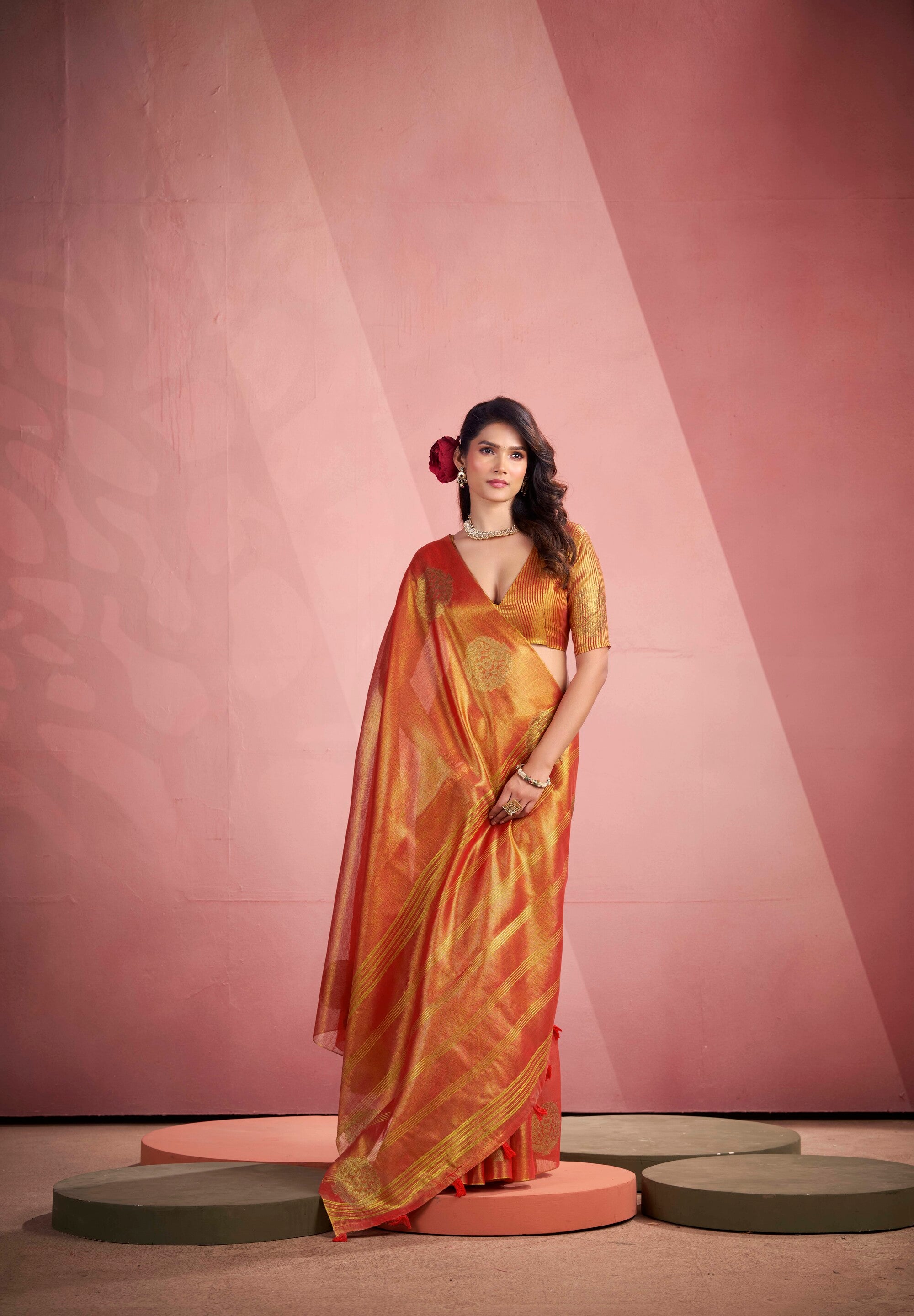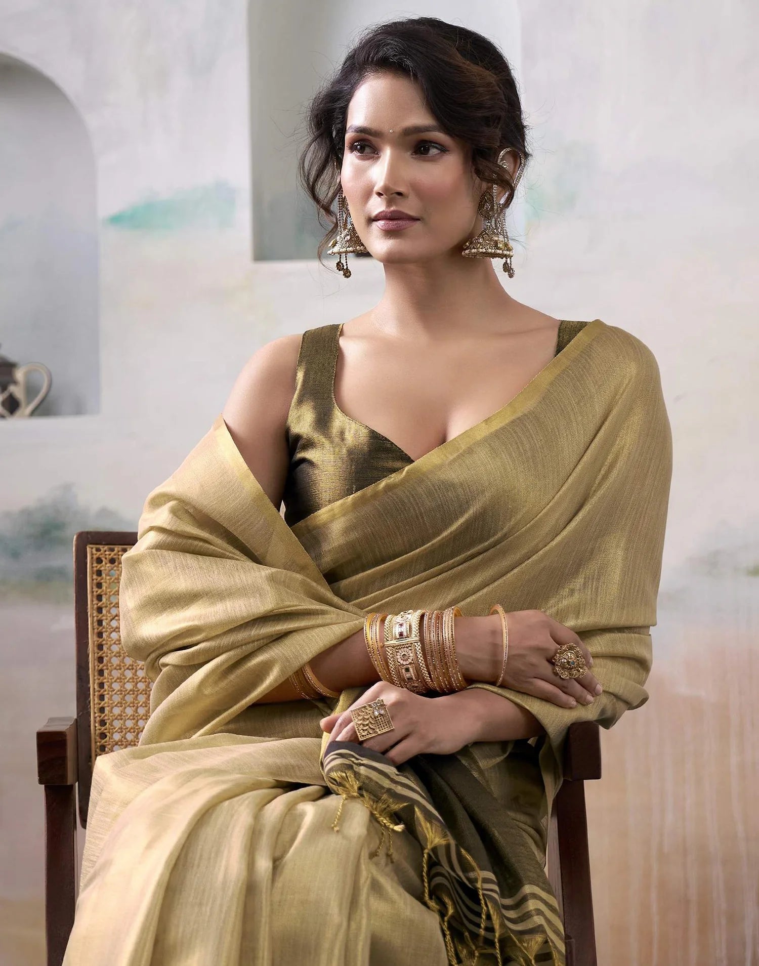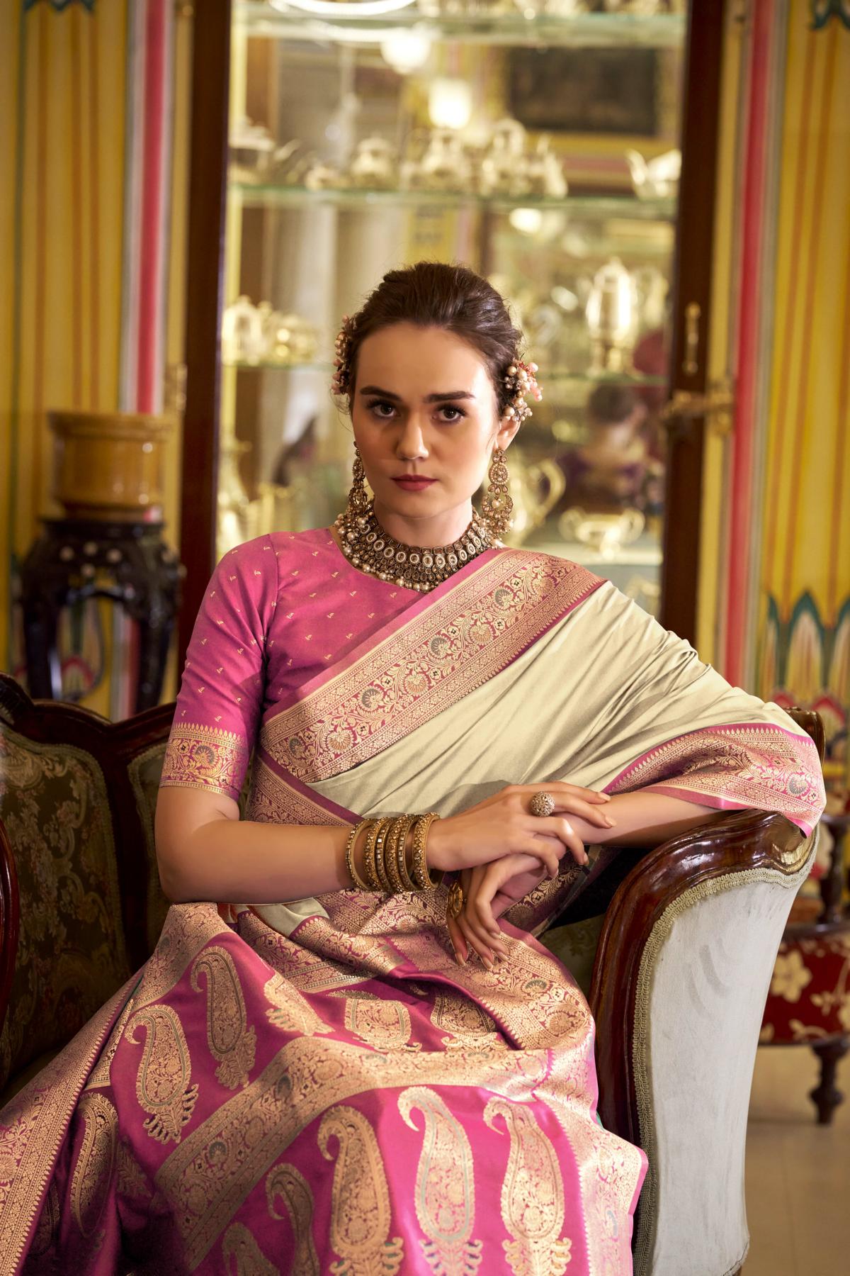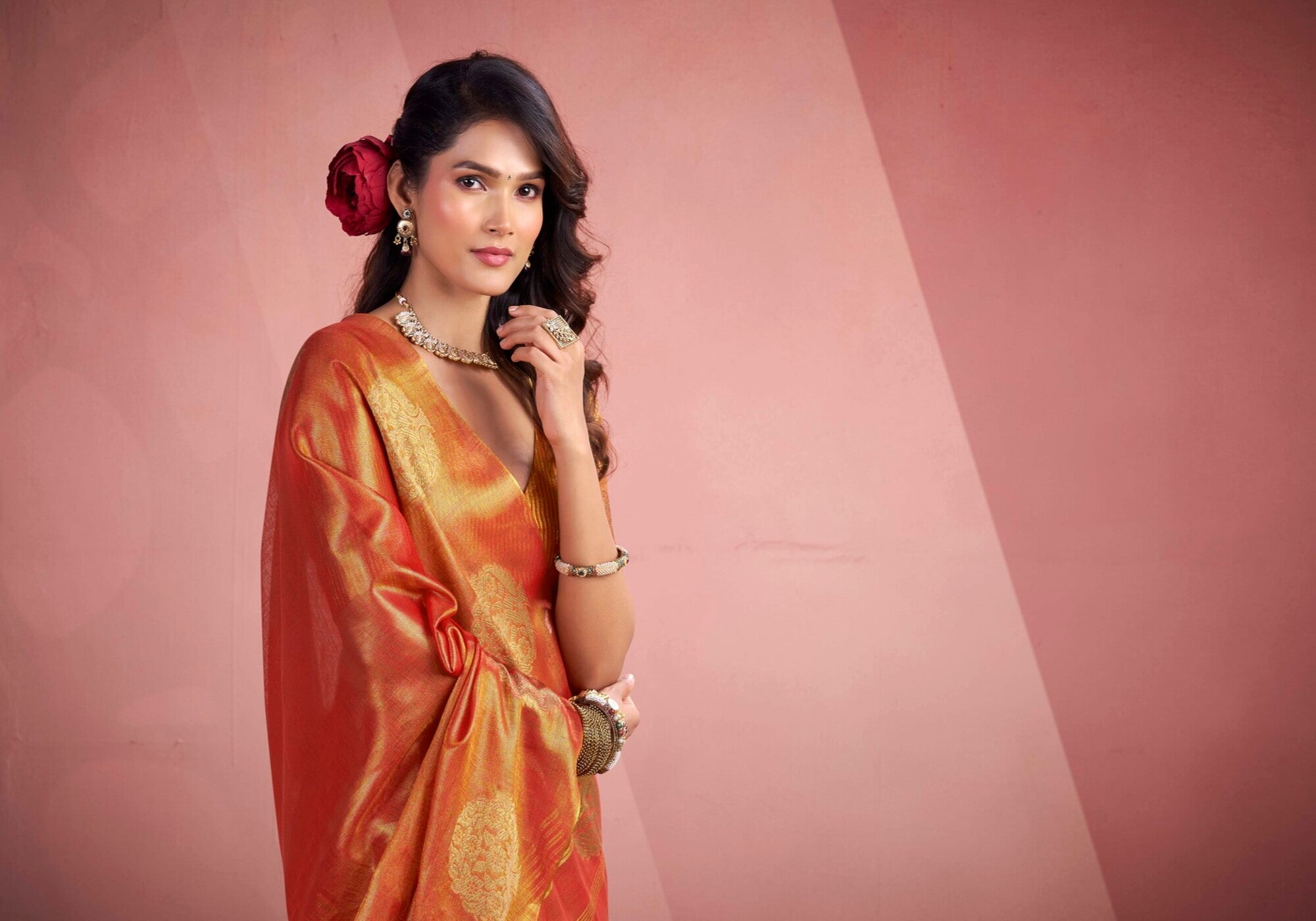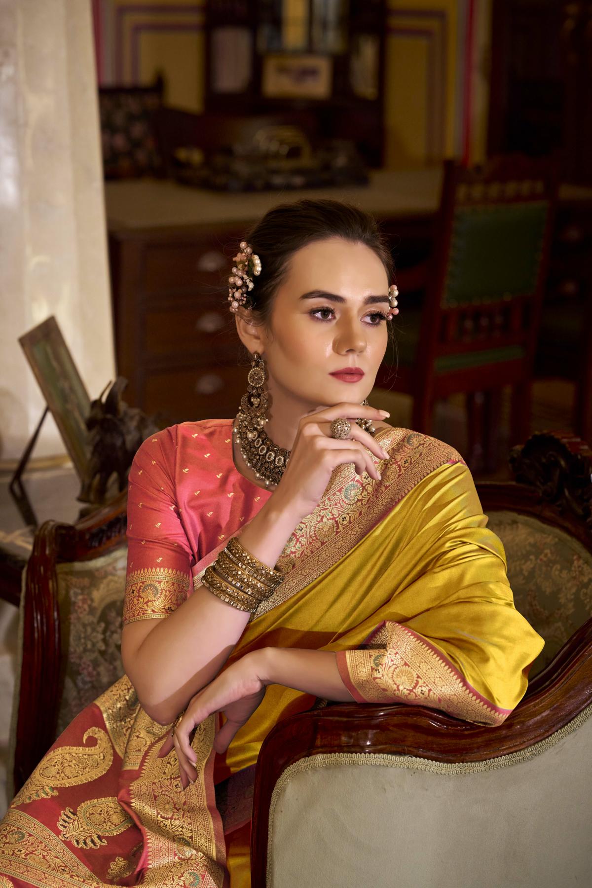 Draped in Royalty: Banarasi Silk with Golden Zari Grandeur