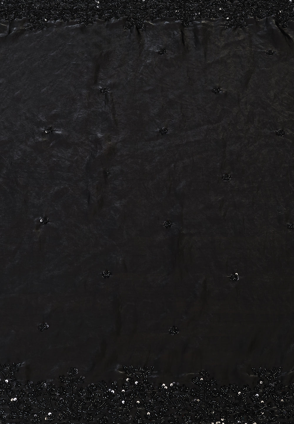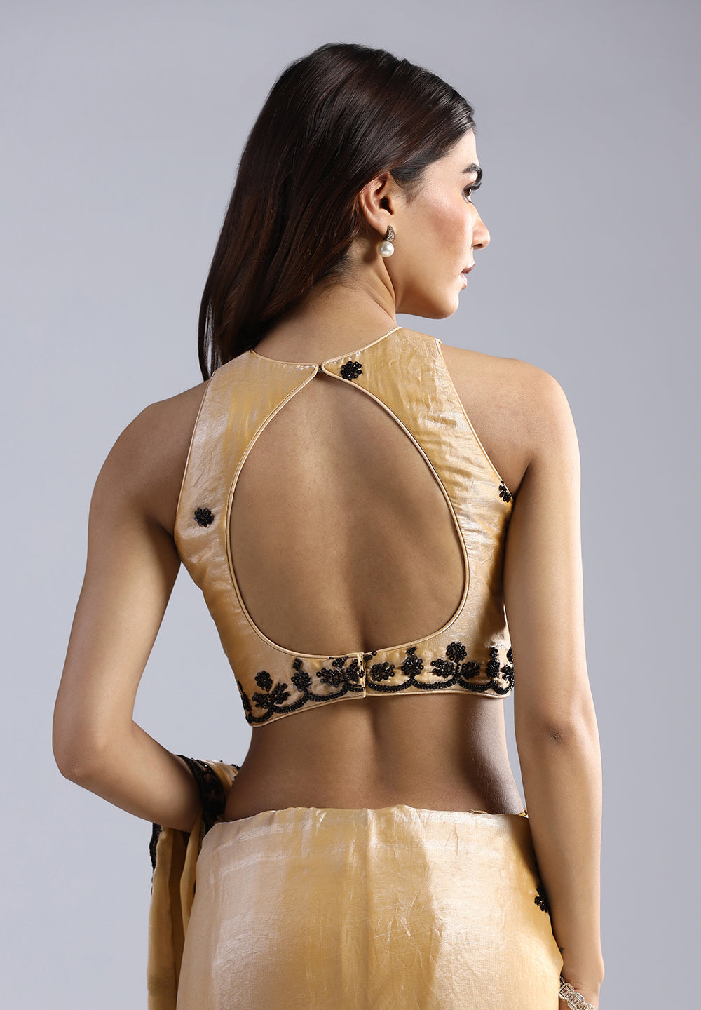 Golden Organza Saree with Black Sequin & Beads Artistry