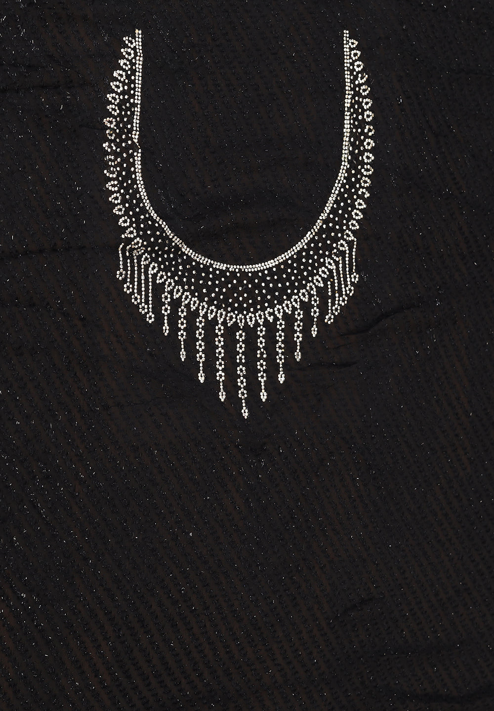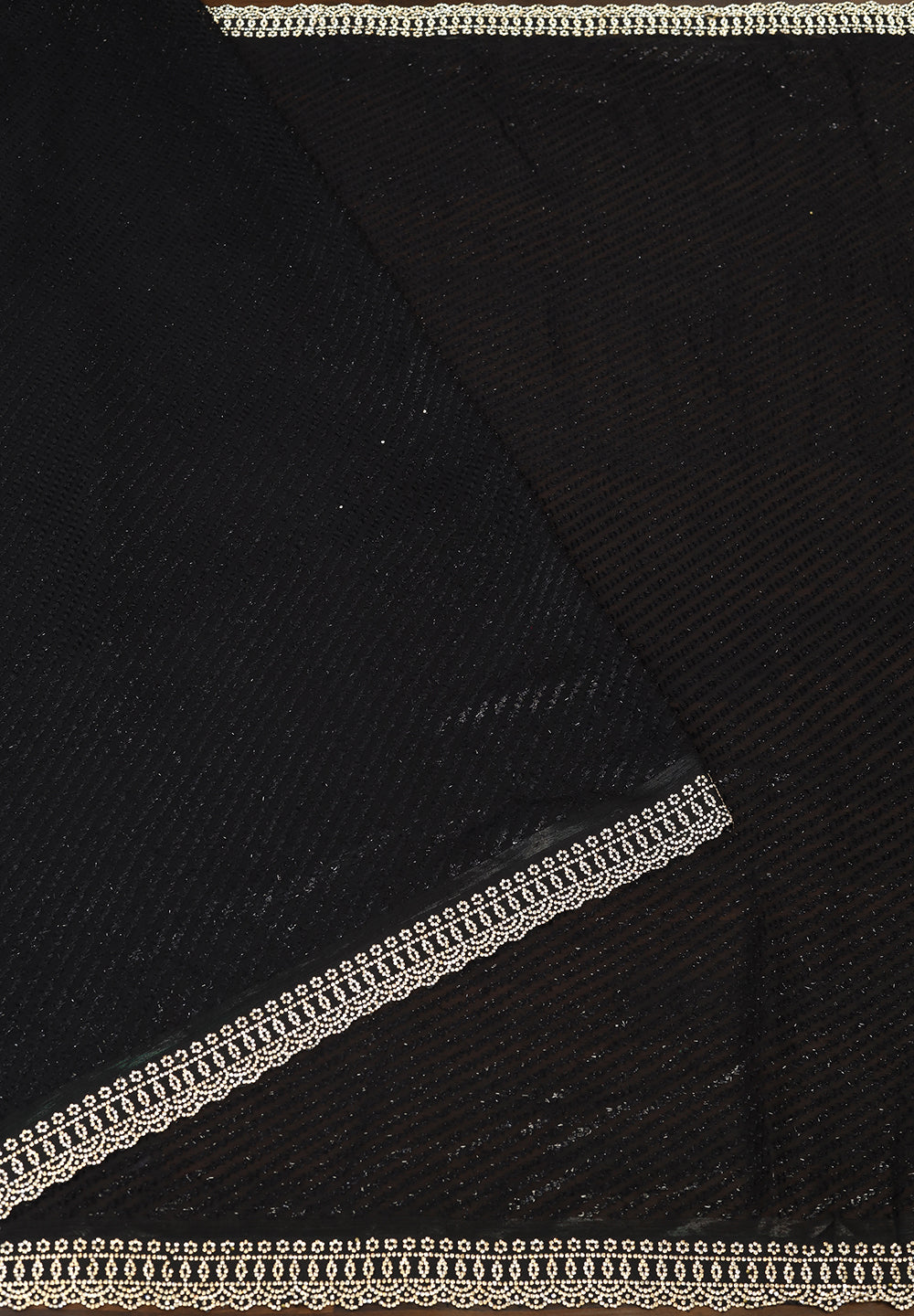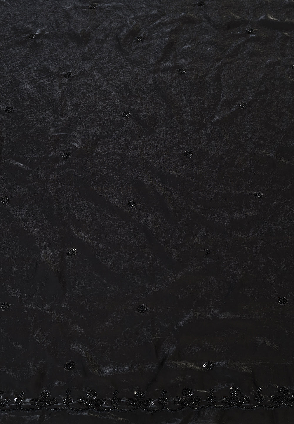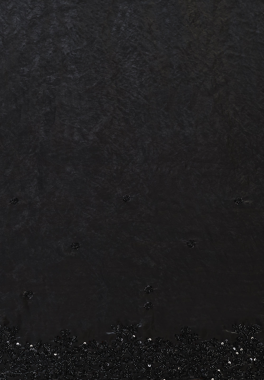 Stunning Midnight Black Net Saree with Intricate Sequin & Moti Lattice Work