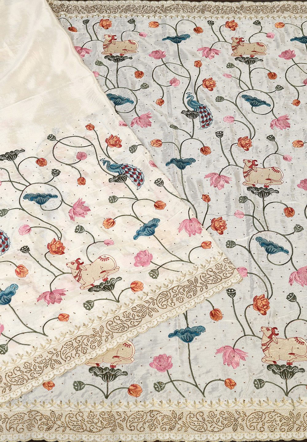 Organza Saree with Pichwai-Inspired Hand Embroidery