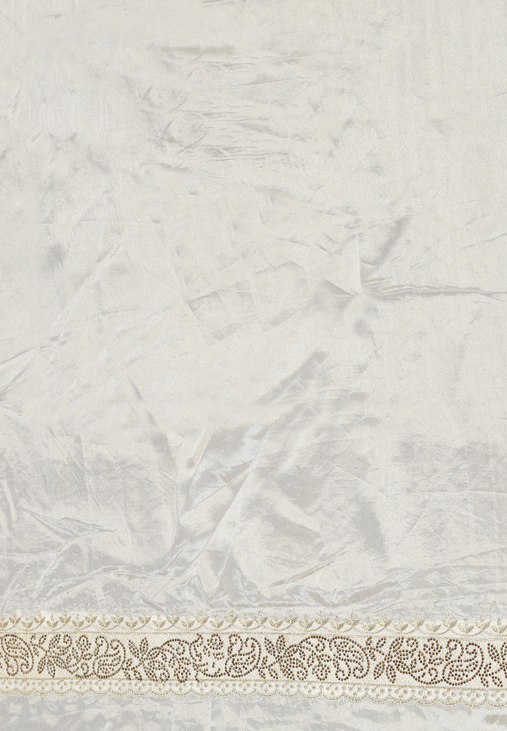 Crepe Saree Adorned with Shimmering Swarovski Crystals and Traditional Zari Artistry