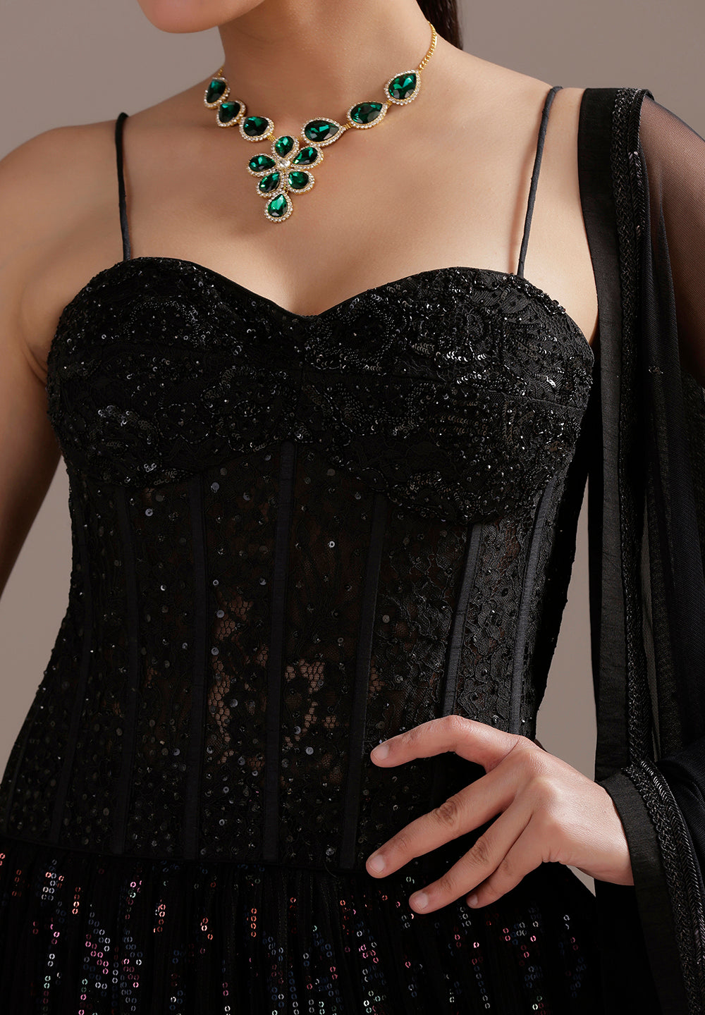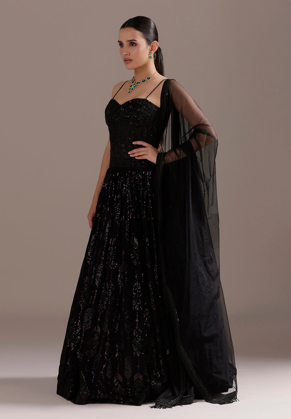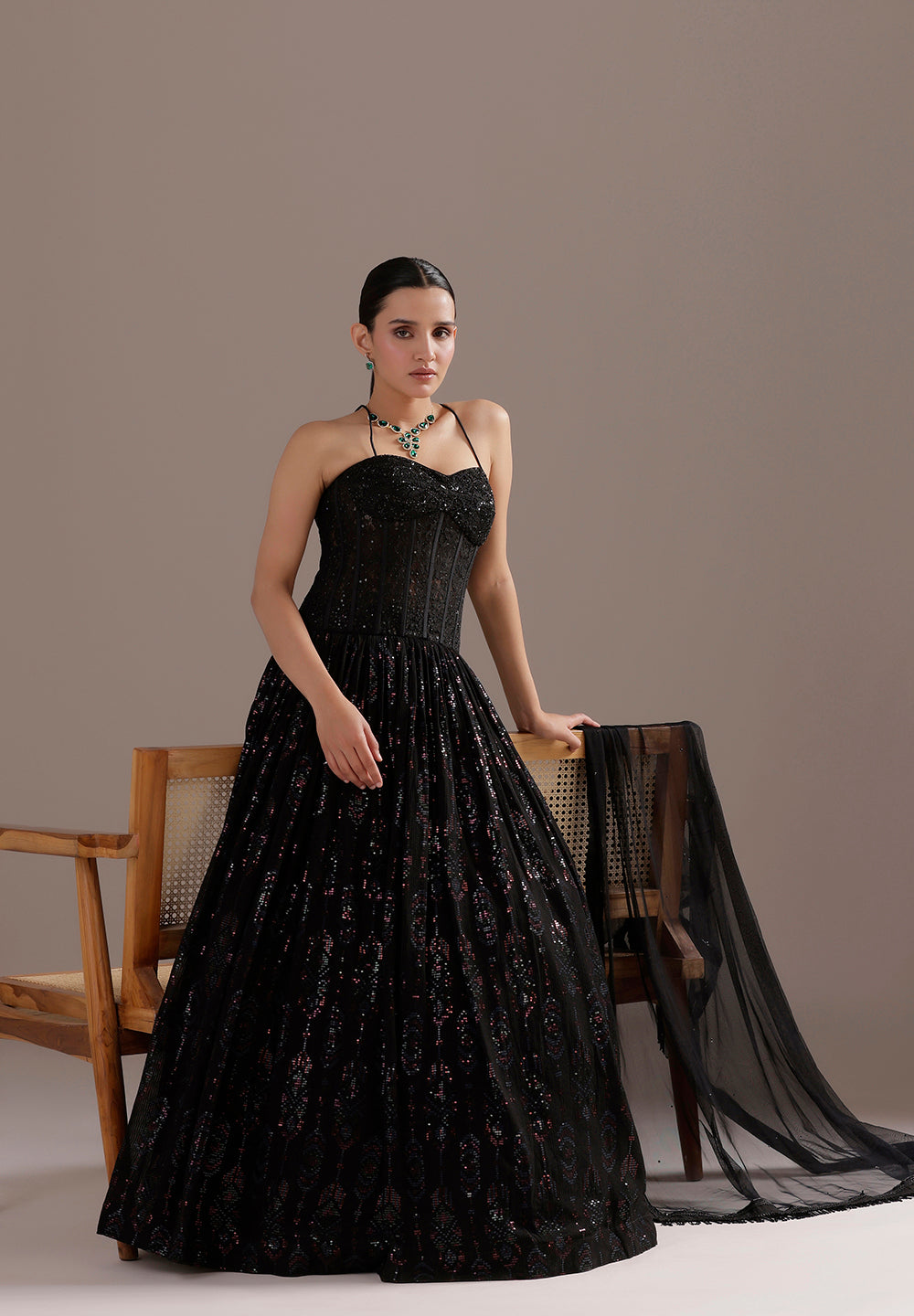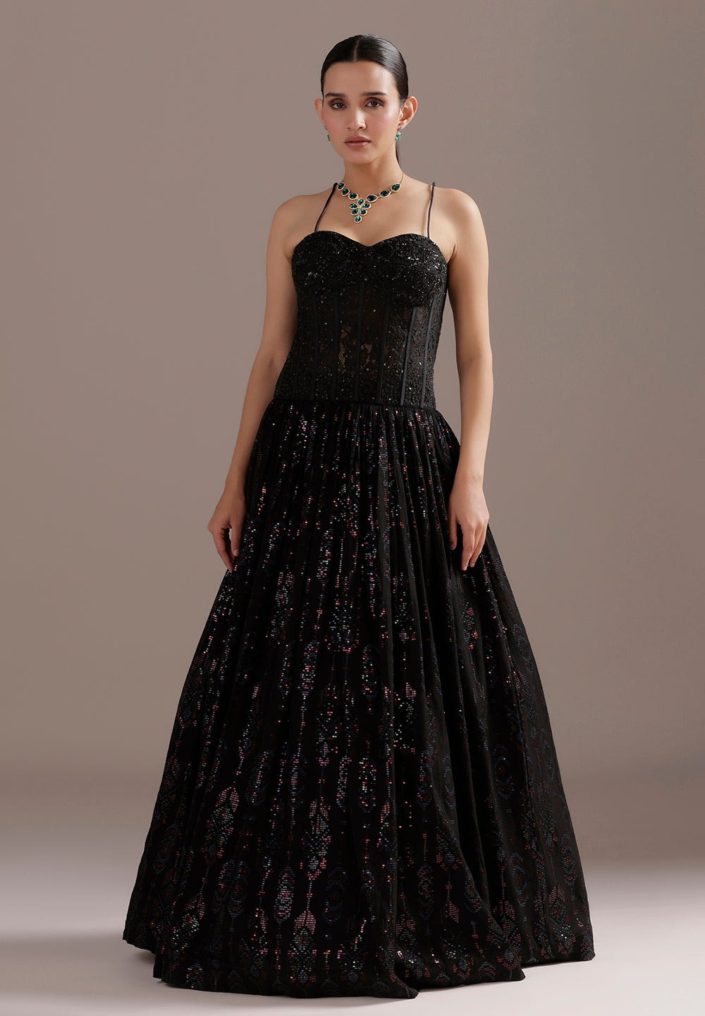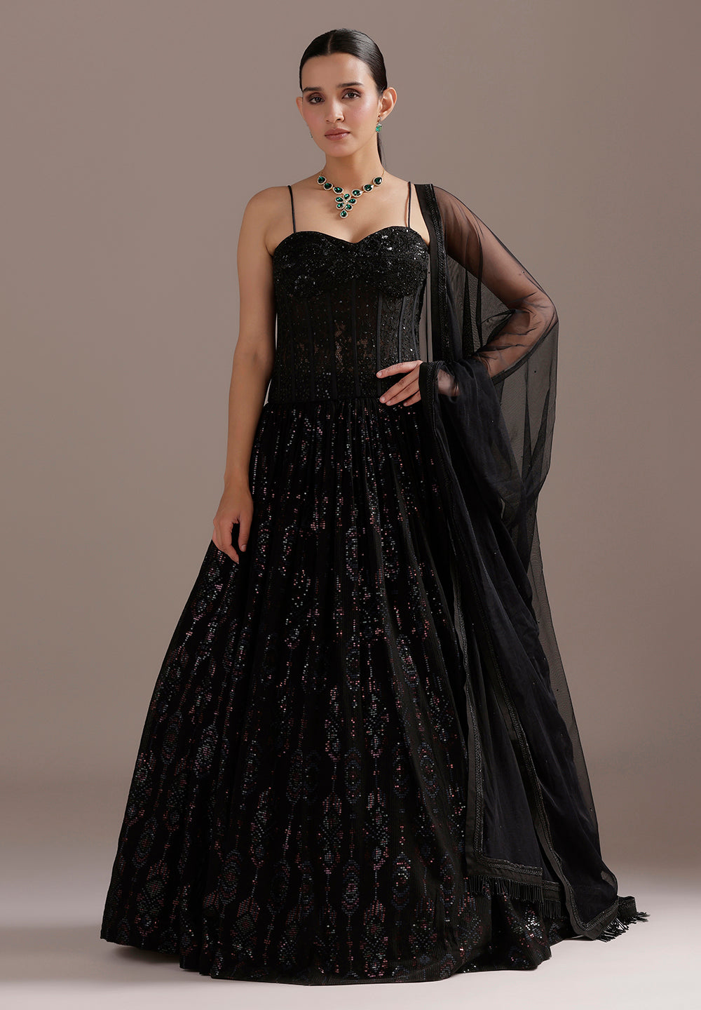 Perfect for brides and wedding guests alike, these lehengas drape beautifully, adding fluidity and charm to your look. Whether it’s a soft champagne bridal lehenga or a dramatic black sequin corset lehenga, each creation by Bombay Selections celebrates femininity, elegance, and individuality. Step into the spotlight with ethnic wear for women that combines sheer grace with contemporary allure.
