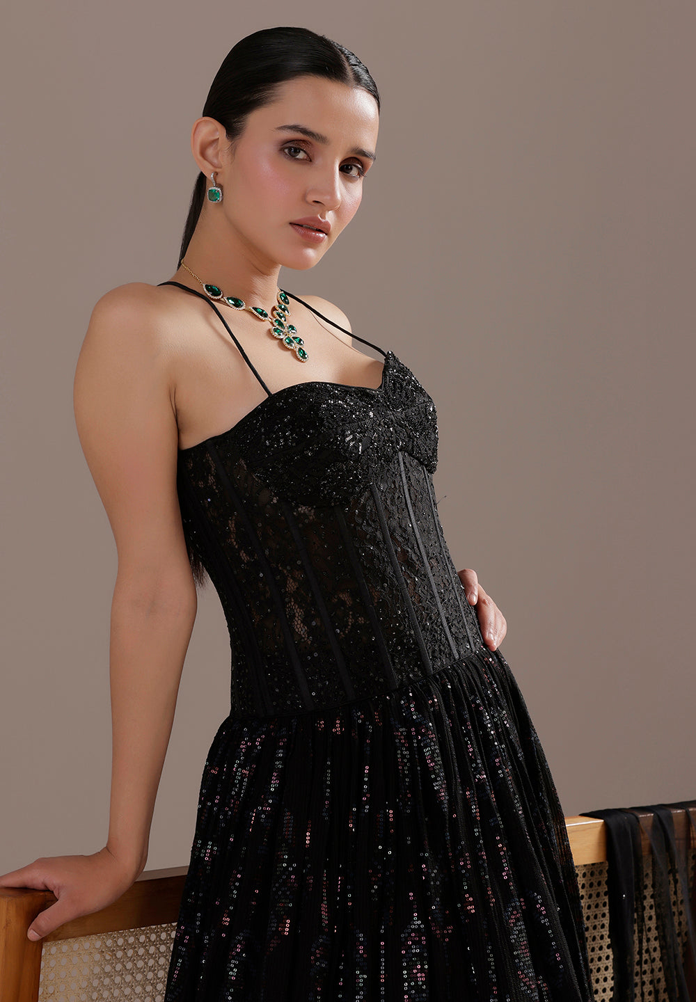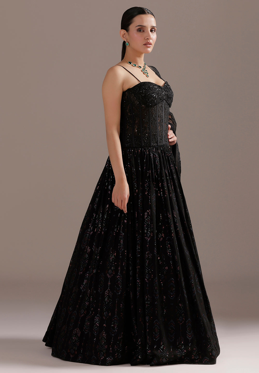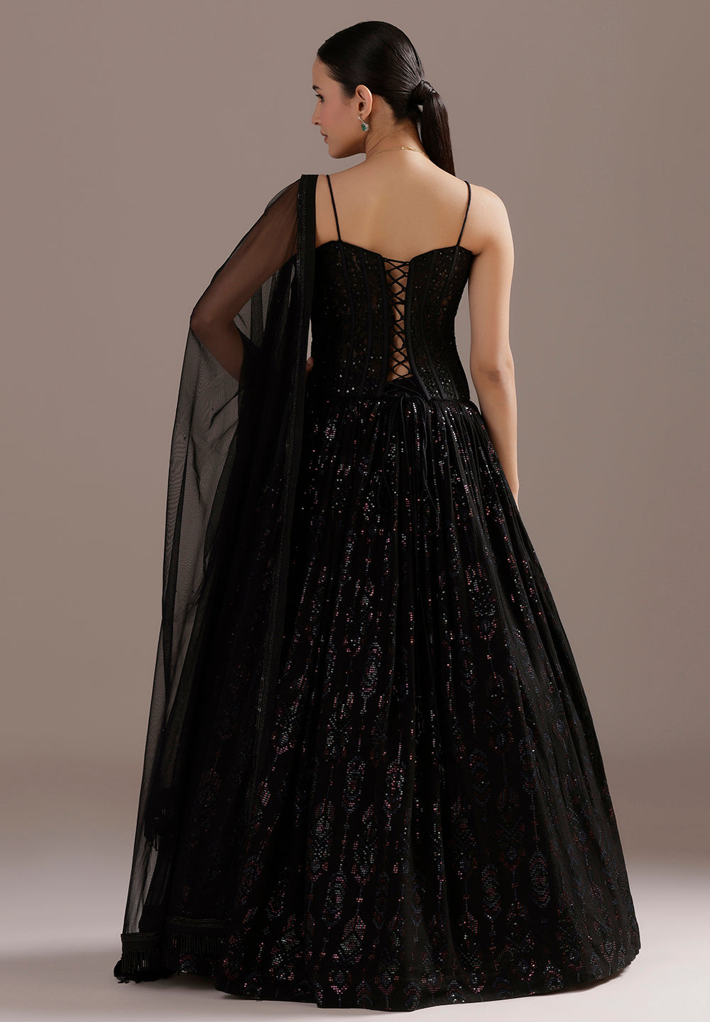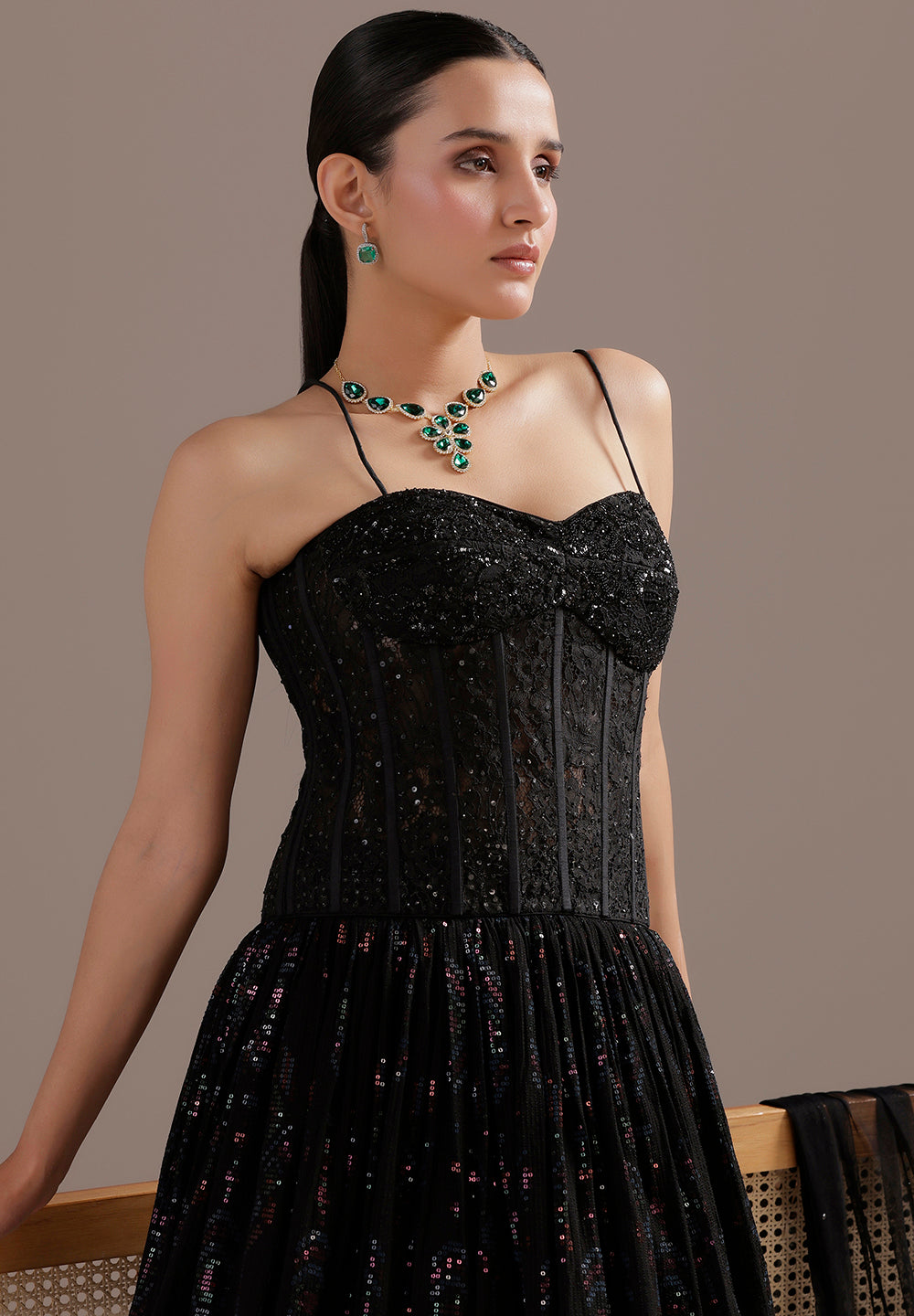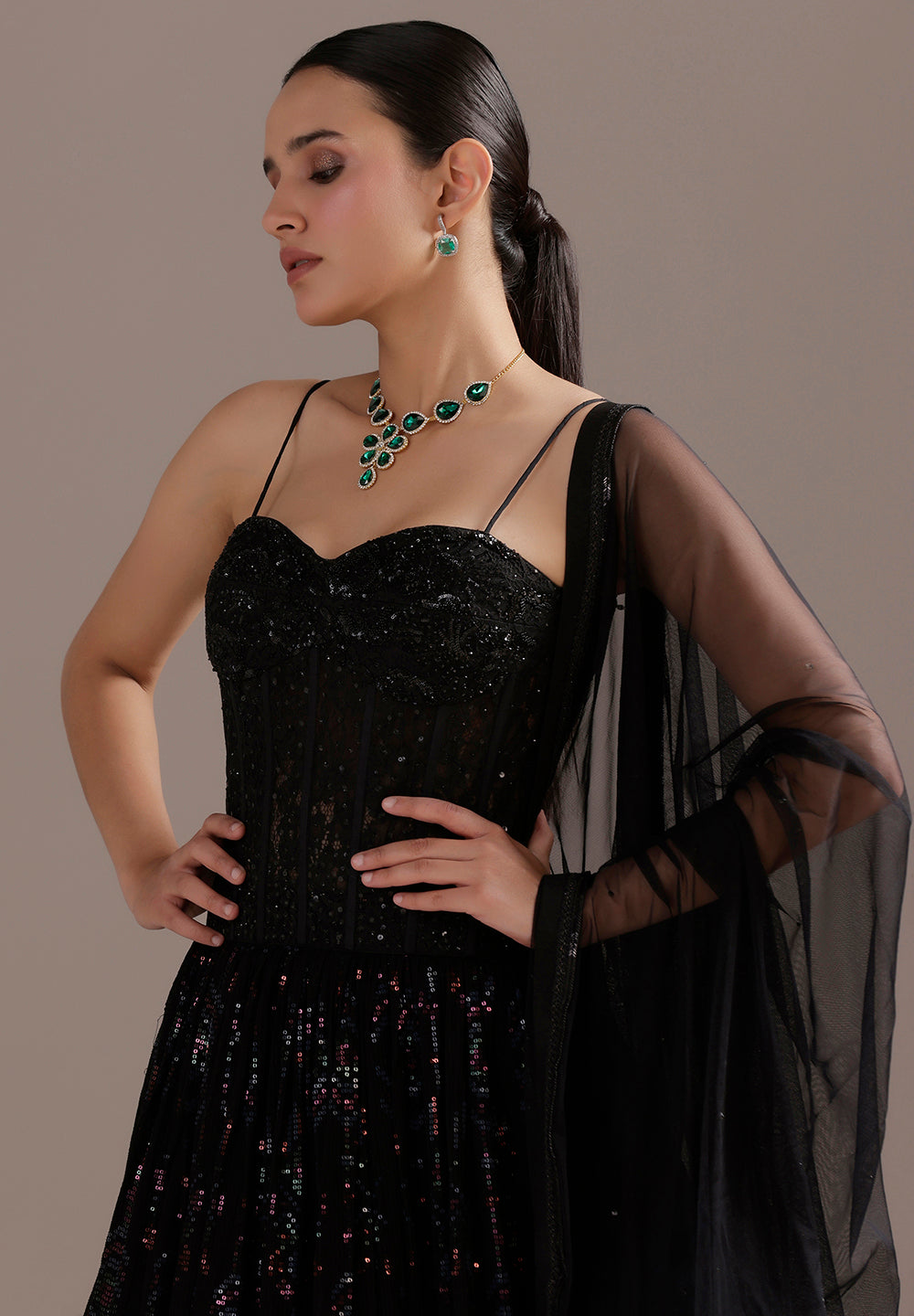 Perfect for brides and wedding guests alike, these lehengas drape beautifully, adding fluidity and charm to your look. Whether it’s a soft champagne bridal lehenga or a dramatic black sequin corset lehenga, each creation by Bombay Selections celebrates femininity, elegance, and individuality. Step into the spotlight with ethnic wear for women that combines sheer grace with contemporary allure.