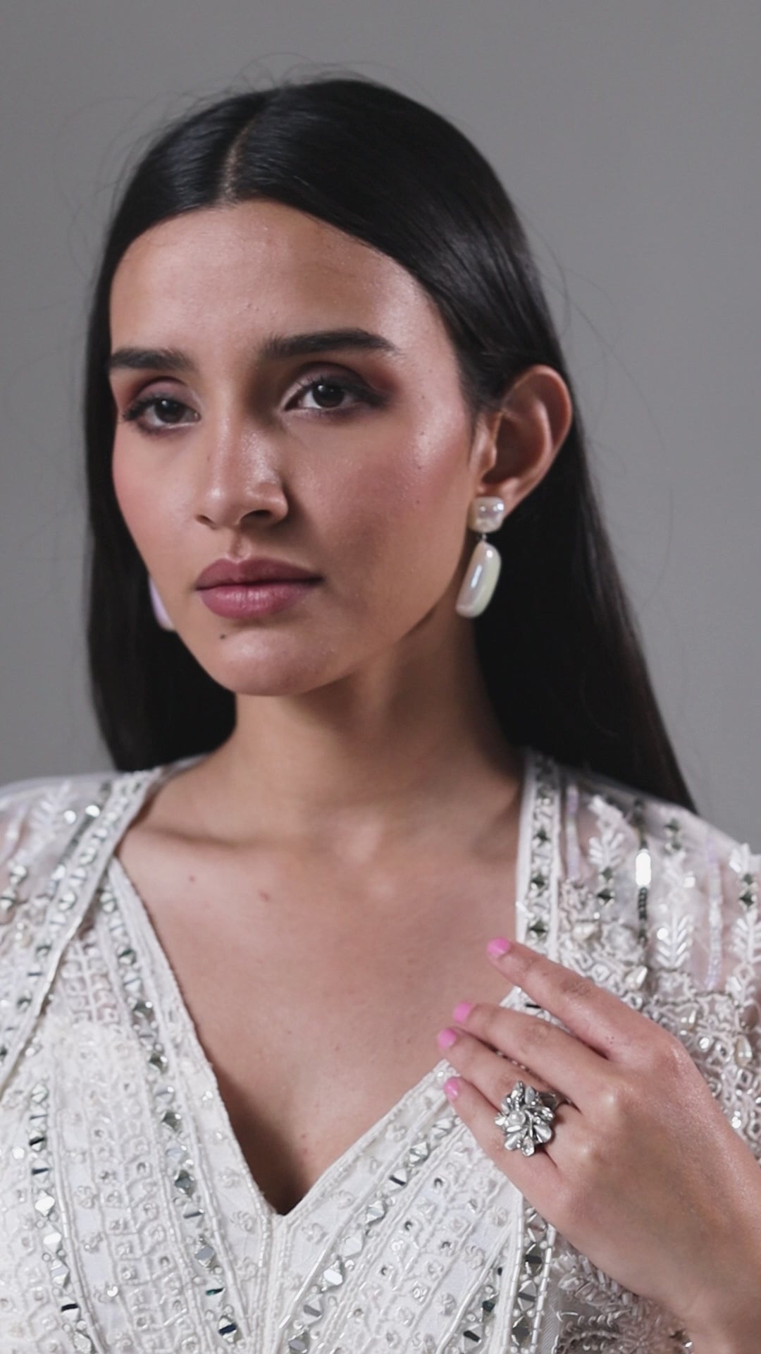 - Makeup: Go for dewy makeup with shimmery eyes and nude lips for timeless elegance.