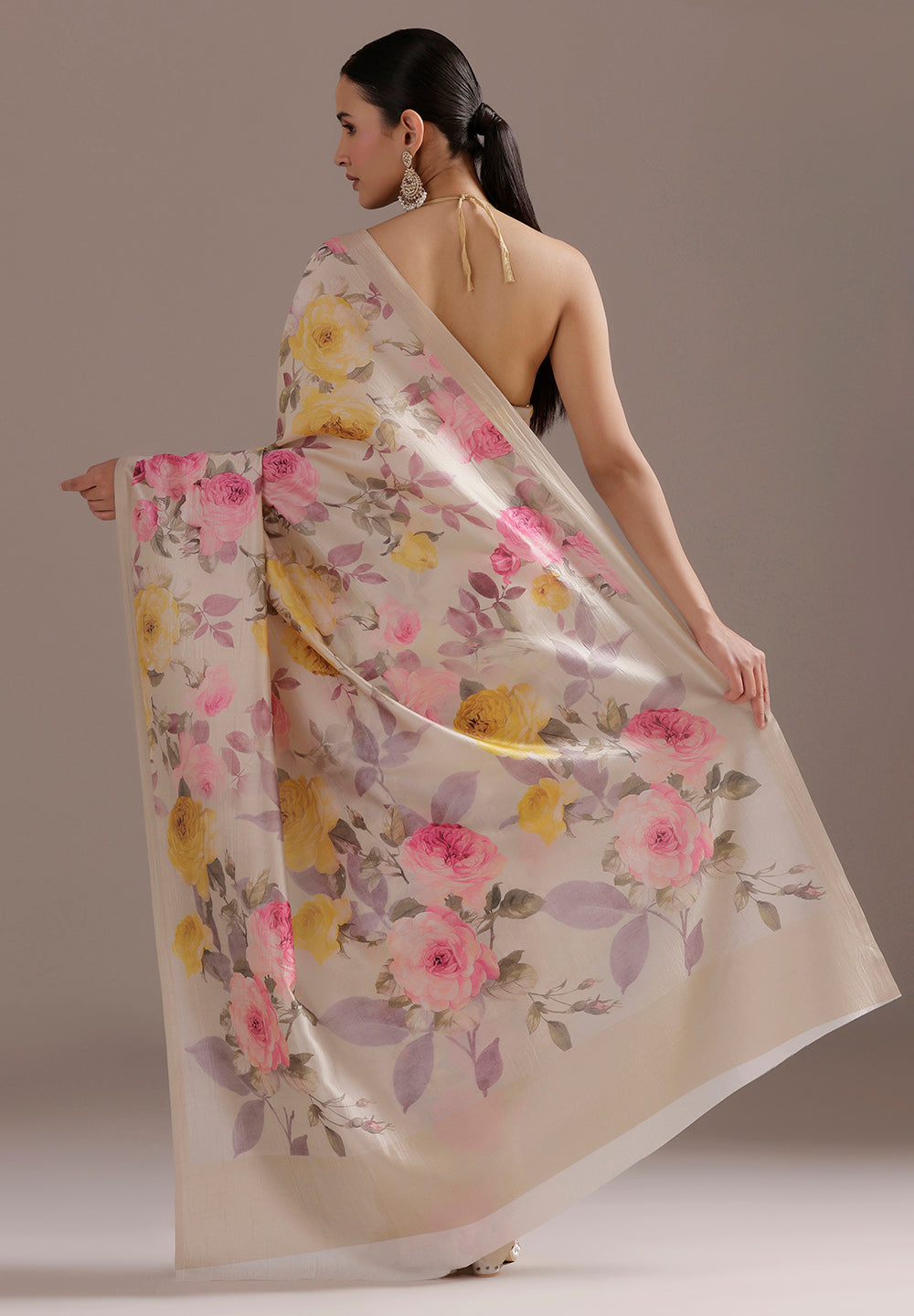 Discover Multi Printed Satin Crepe Sarees in captivating shades of blue, gold, and green, or choose from our Printed Silk Sarees and Tissue Silk Sarees for a touch of luxury and sheen. Each saree is thoughtfully designed to balance elegance and comfort, making it a versatile addition to your ethnic wardrobe.