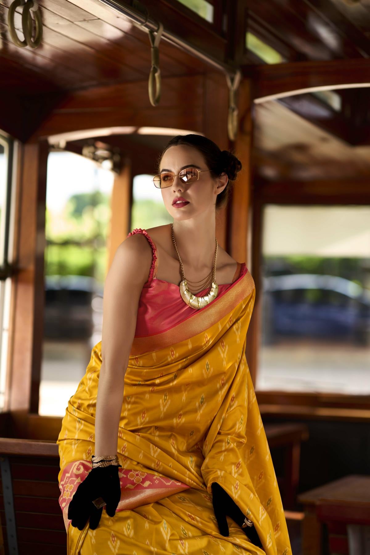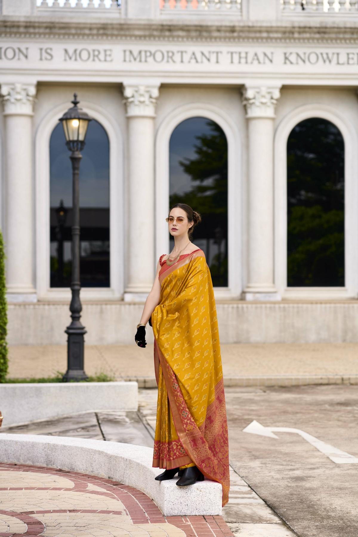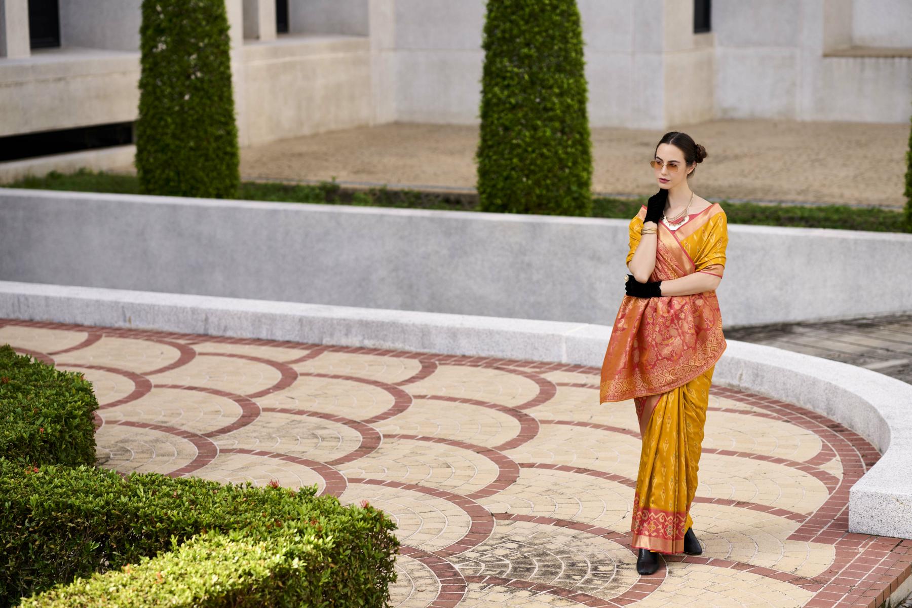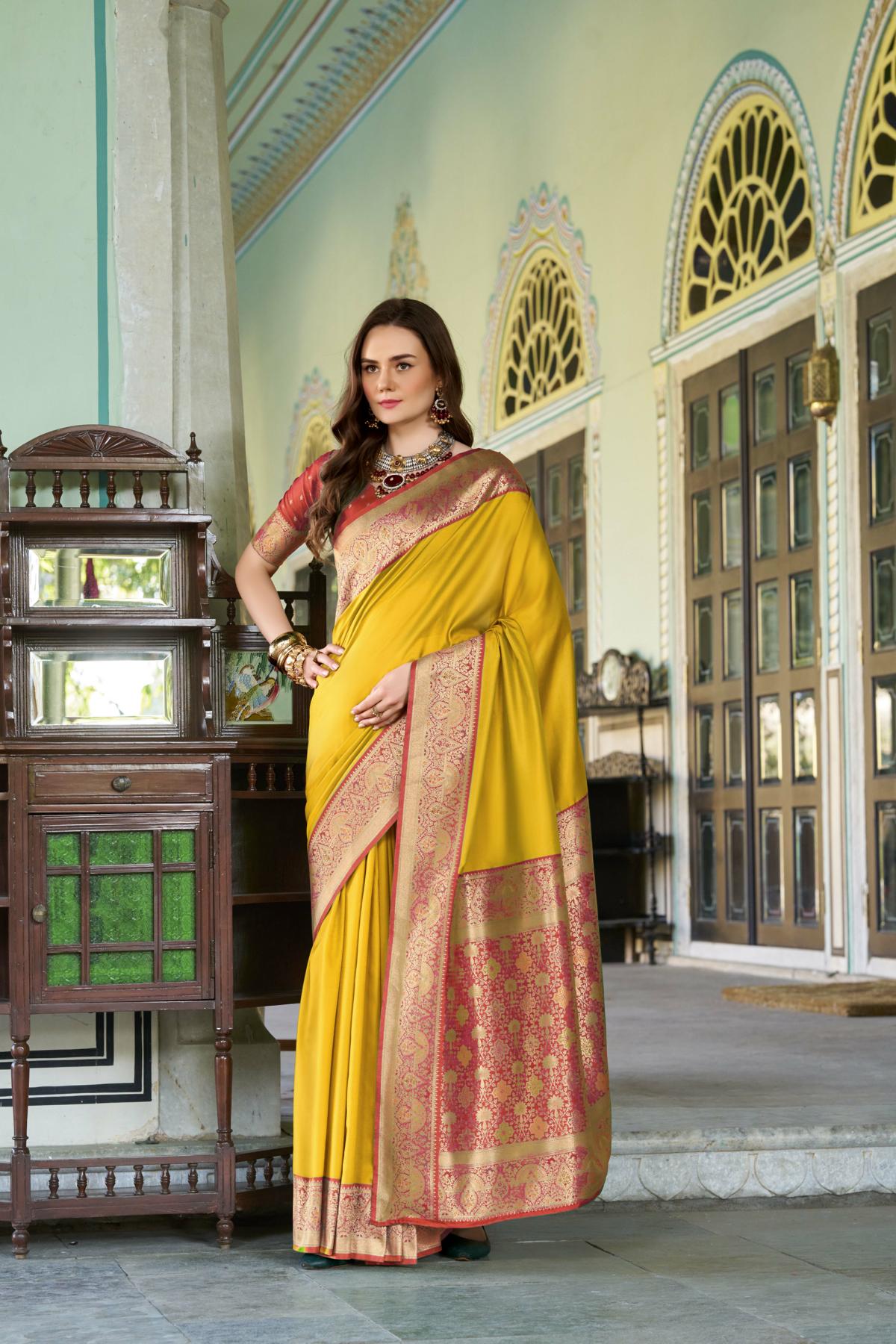 Bring sunshine, joy, and traditional charm to your special ceremony with our Haldi Sarees collection at Bombay Selections. Designed in bright hues like mustard, marigold yellow, turmeric gold, and soft saffron tones, these sarees beautifully reflect the spirit of the Haldi ritual. Crafted in lightweight fabrics such as georgette, chiffon, organza, and soft silks, they allow easy movement while keeping your look fresh and glowing. Subtle embellishments, delicate borders, and elegant prints add just the right amount of festive flair, making these sarees perfect for brides, bridesmaids, and family members who want a radiant, picture-perfect Haldi look.