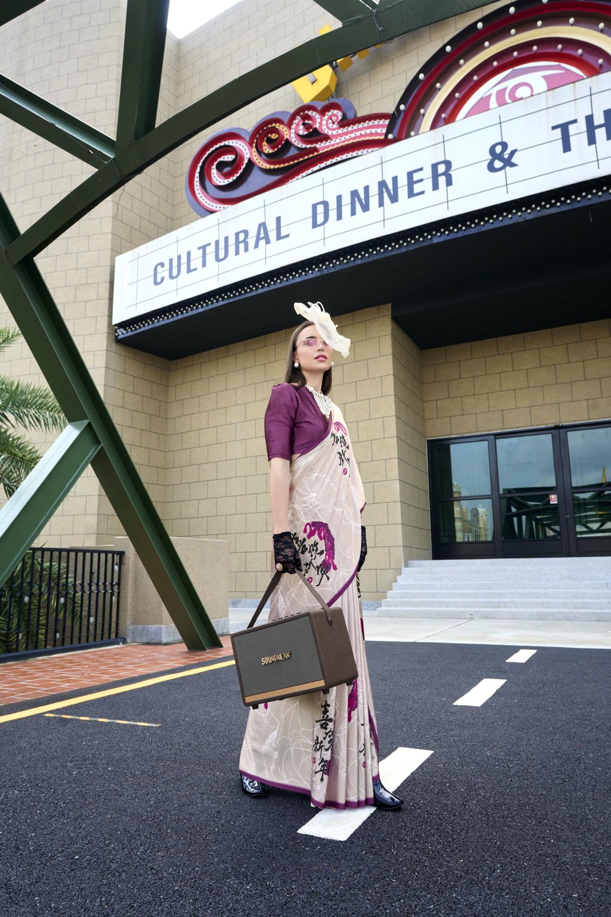 Georgette has a magical way of floating around you as you walk. Pair it with a sleeveless blouse for summer weddings or layer it with a velvet jacket for winter receptions — the possibilities are endless.