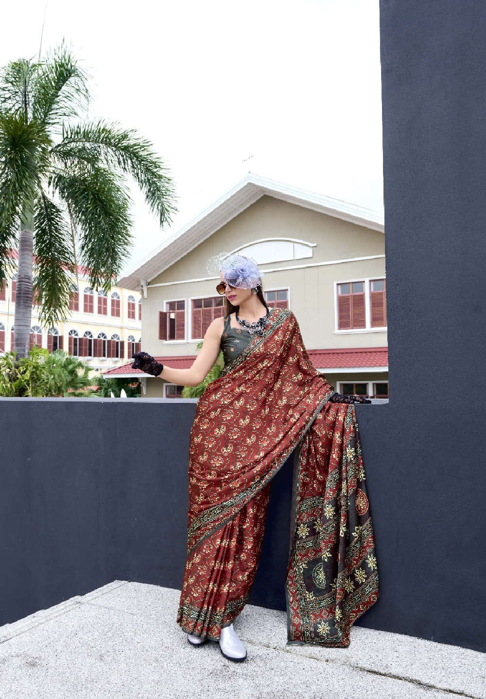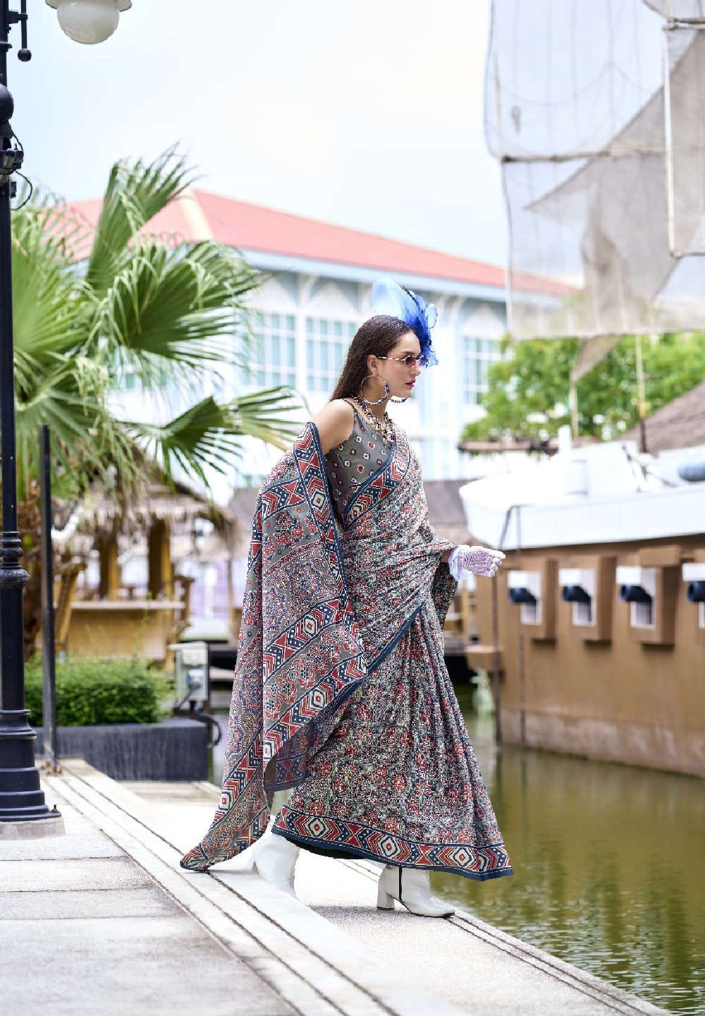 Printed sarees are the unsung heroes of every working woman’s wardrobe. A vibrant Bagru block print can brighten a Monday morning meeting, while a subtle Ajrakh or Kalamkari can carry you gracefully through parent-teacher meetings and evening chai addas. We update our printed saree catalogue every week so you’ll always find fresh designs inspired by nature, architecture, modern art, and even global trends — all while staying rooted in India’s rich textile vocabulary.
