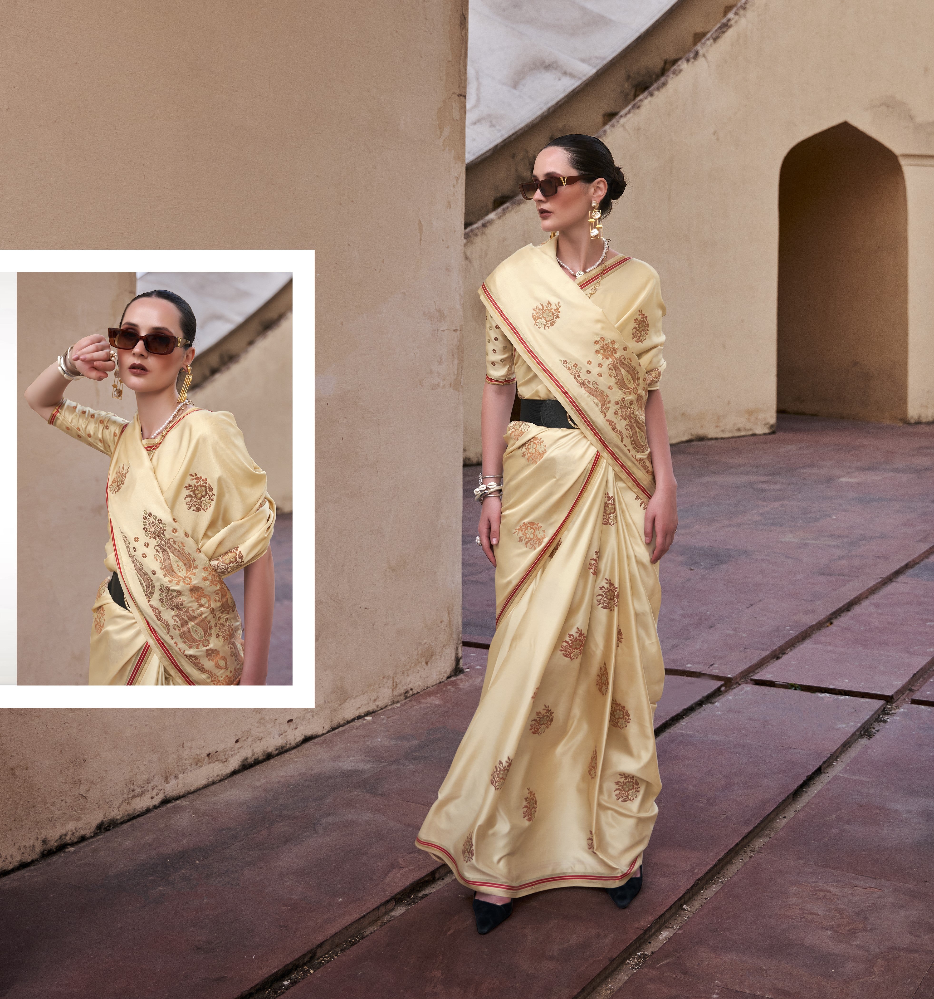 A Banarasi saree is poetry woven in gold and silk. The kadhwa weave, the tanchoi technique, the meenakari enamel effect - each Banarasi masterpiece takes months to create and a lifetime to love.