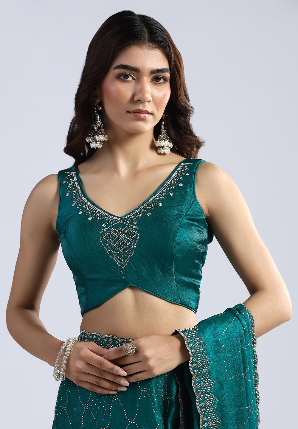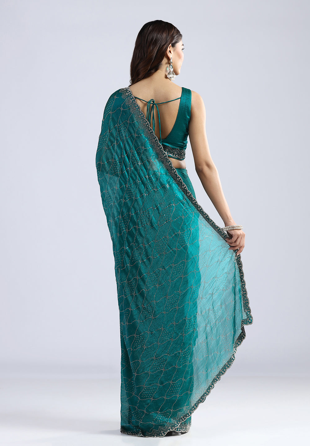 Teal Radiance Hand-Printed Organza Saree with Scalloped Beadwork₹ 4,385₹ 3,508
