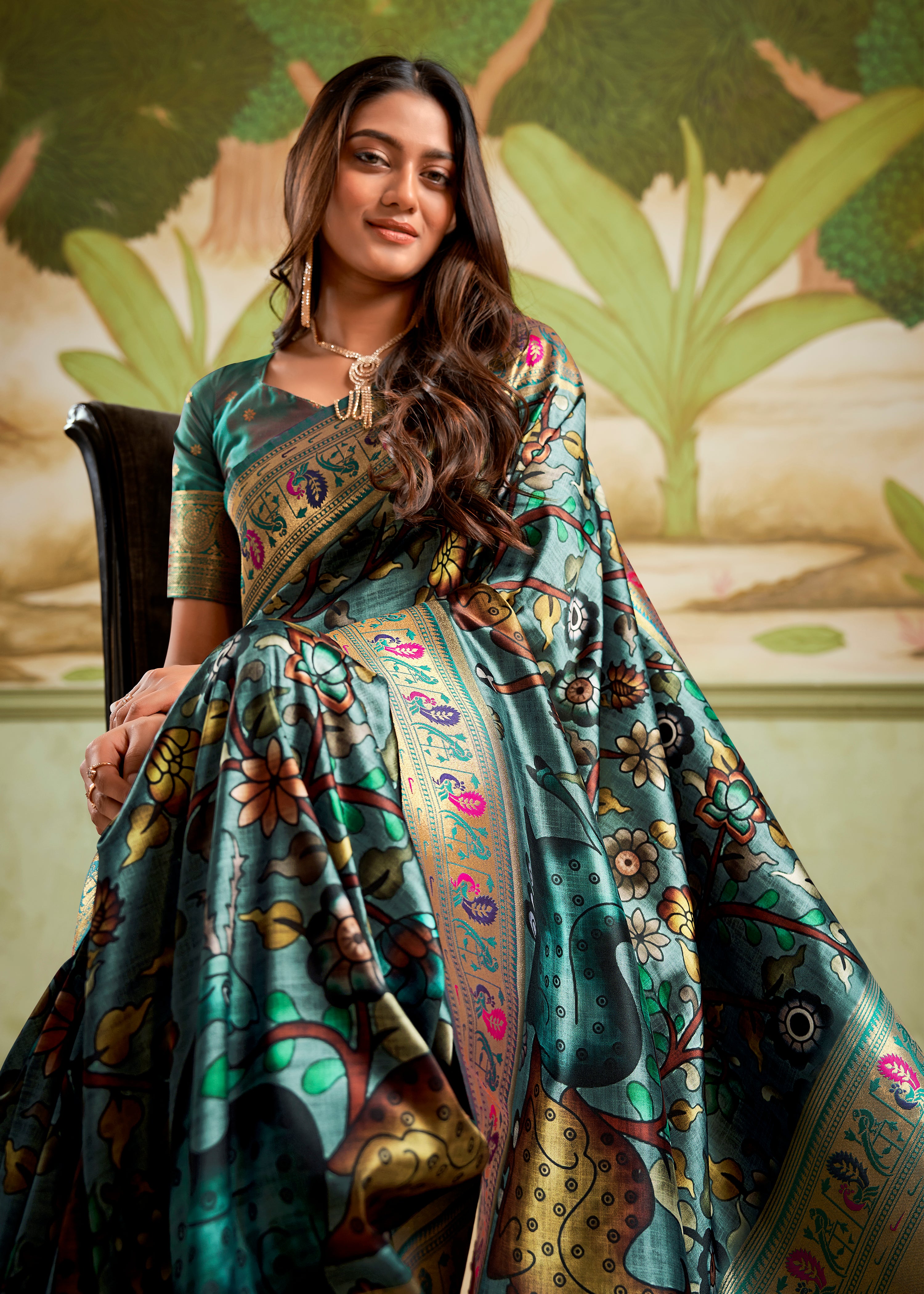 - Lush Nature Greens: Explore the verdant spectrum with a rich rama green satin saree, a delicate pista green satin saree, or a deep bottle green satin saree.