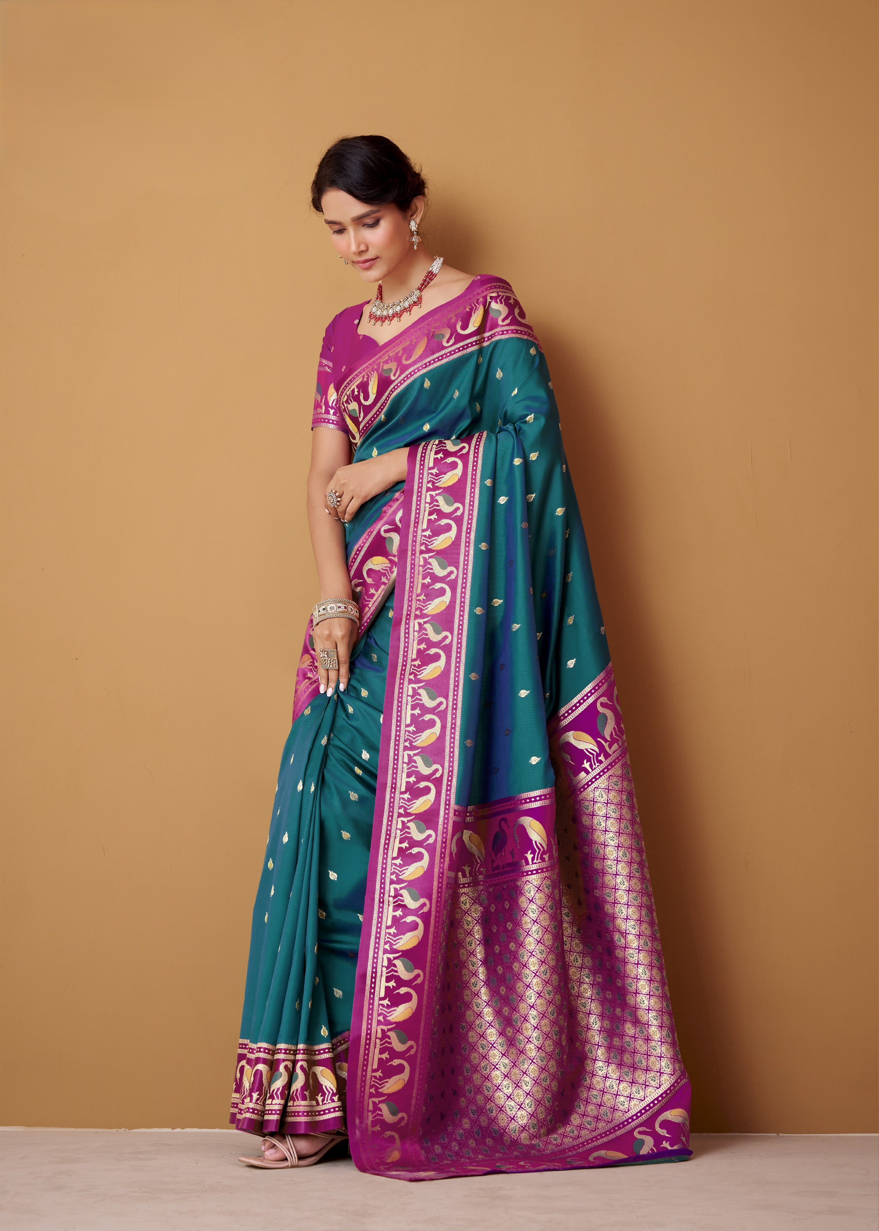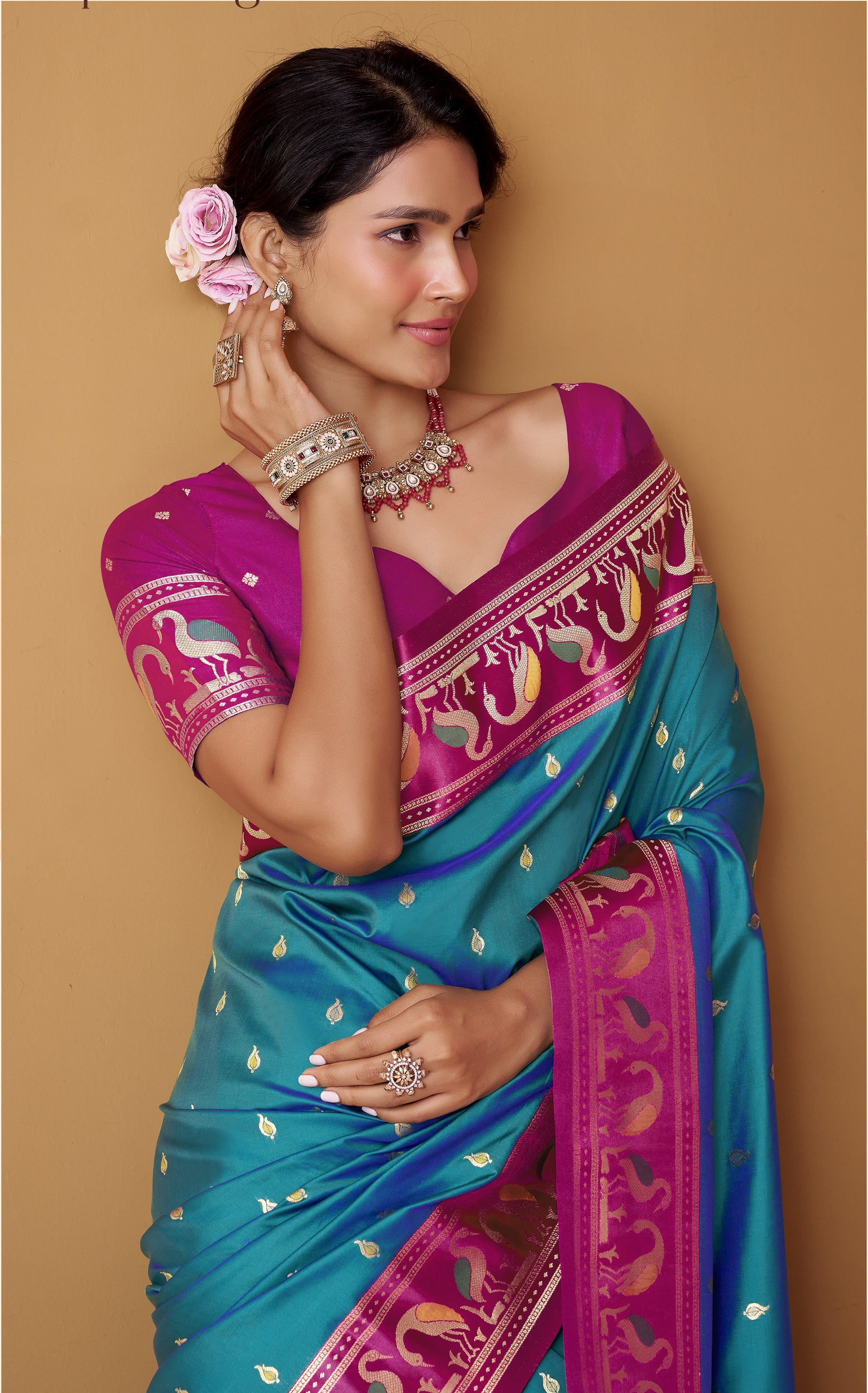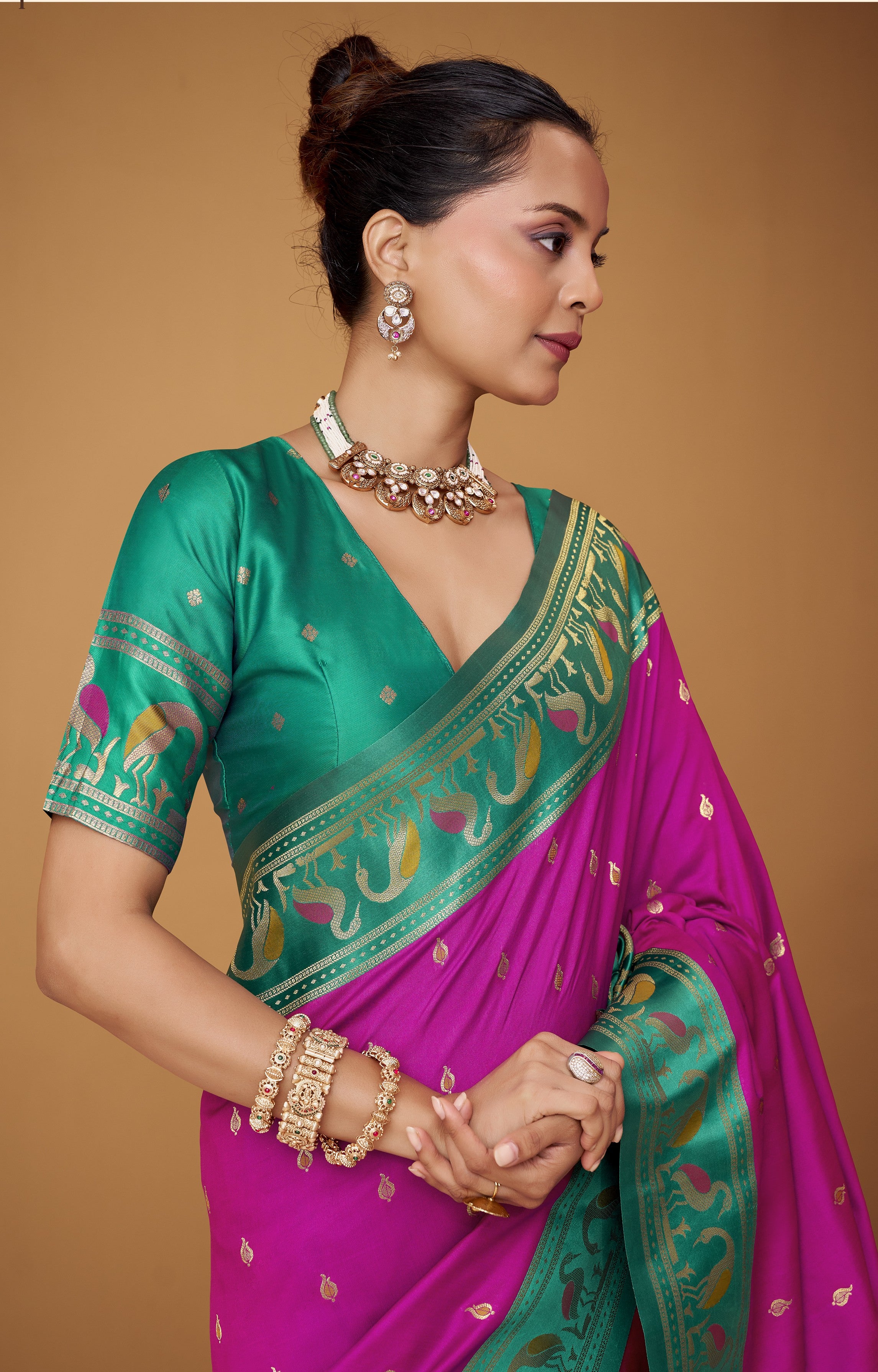 - For Traditional/Zari Border Sarees: A classic brocade blouse or a raw silk blouse in a complementary color enhances the traditional feel while adding textural contrast.