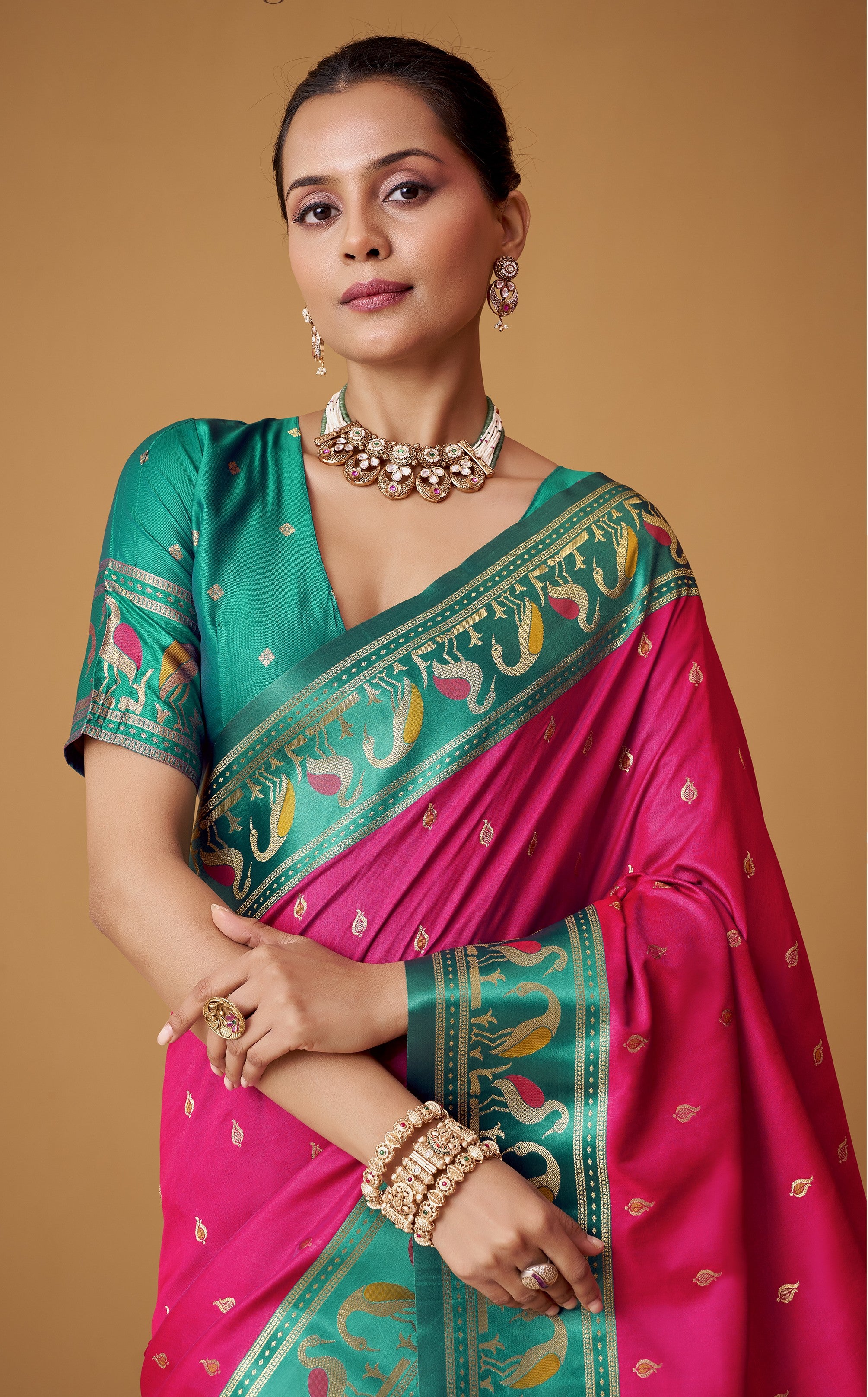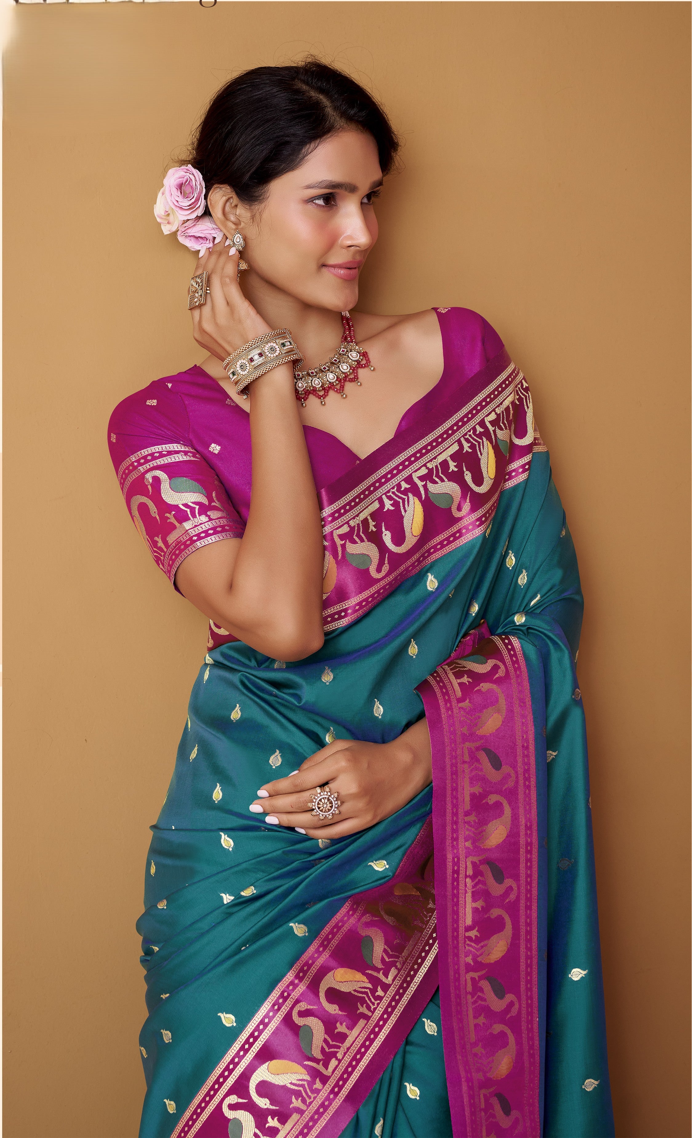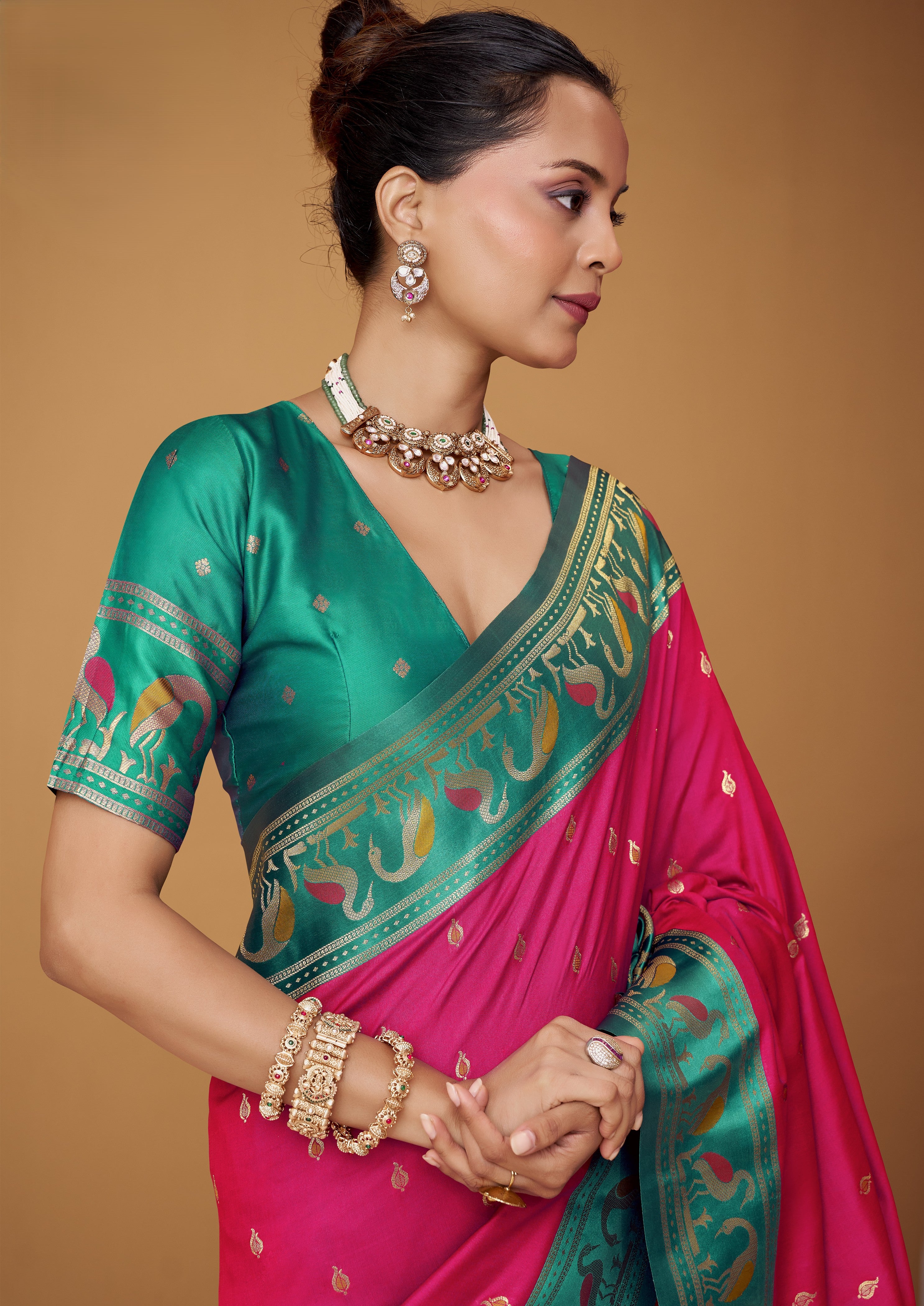 - For Traditional/Zari Border Sarees: A classic brocade blouse or a raw silk blouse in a complementary color enhances the traditional feel while adding textural contrast.