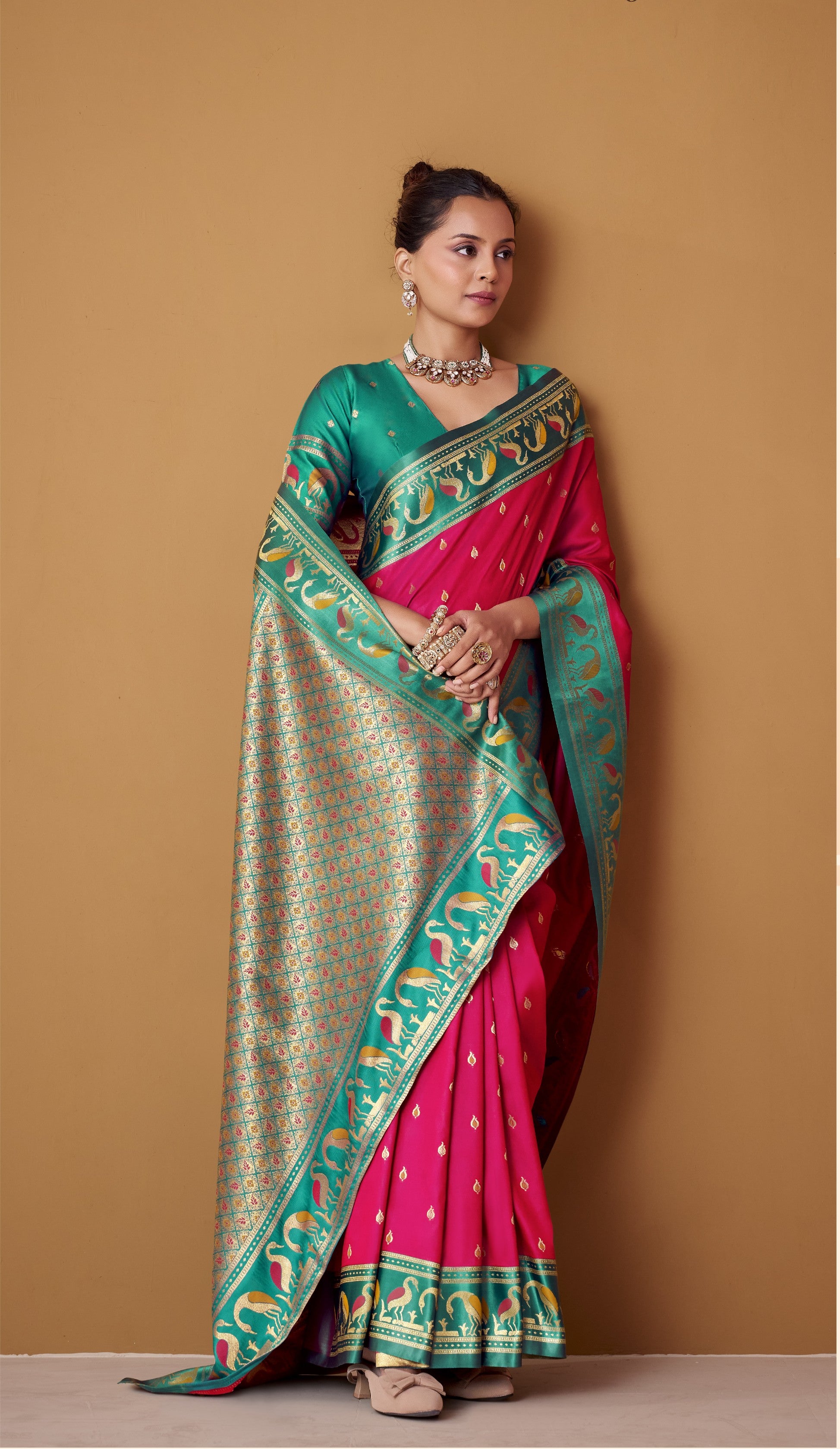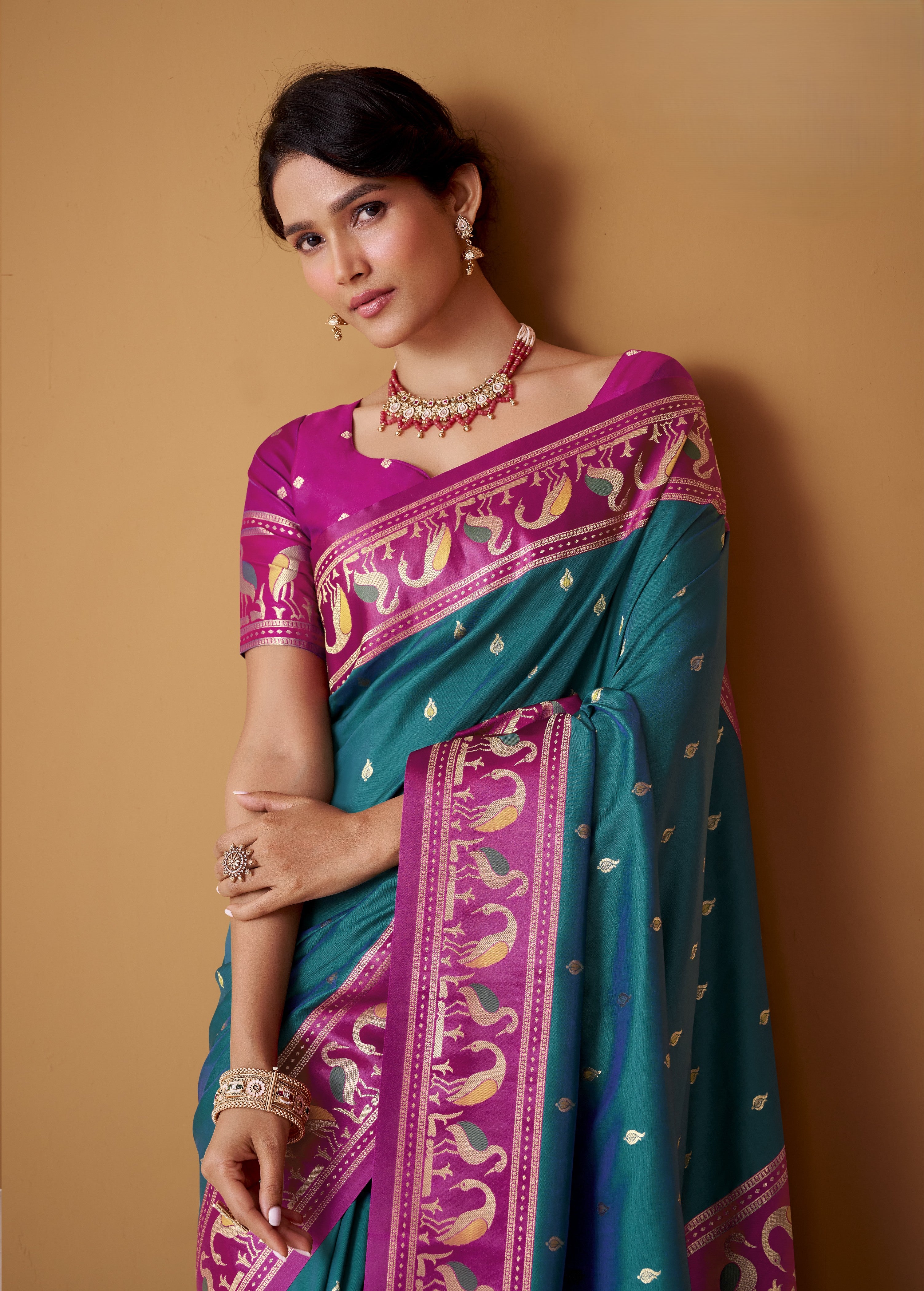 - Cool, Contemporary Accents: Refresh your look with the oceanic shades of a turquoise satin saree or a captivating firozi satin saree.