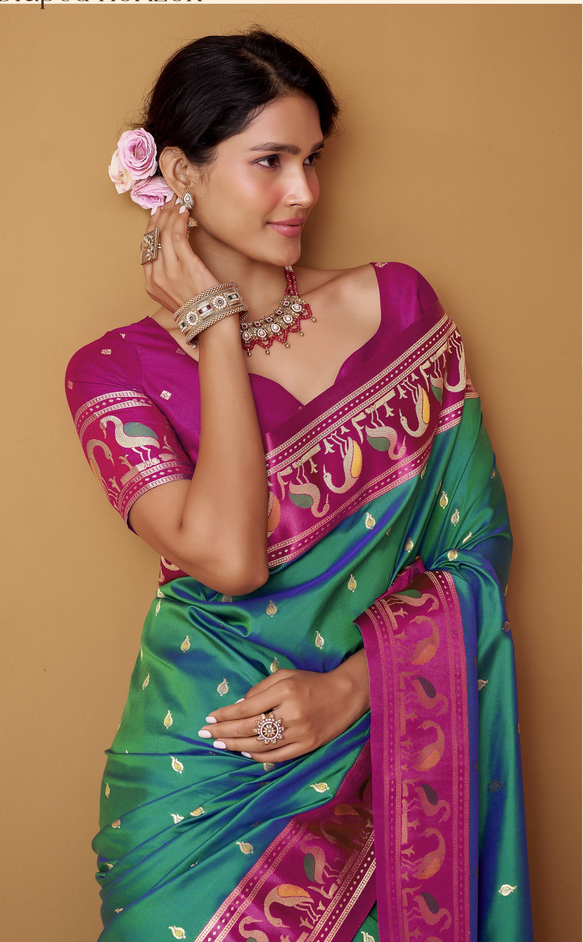 - Ironing: Always iron on the reverse (dull) side of the fabric on the lowest heat setting (silk setting). Placing a thin cotton cloth between the iron and the saree provides an extra layer of protection.