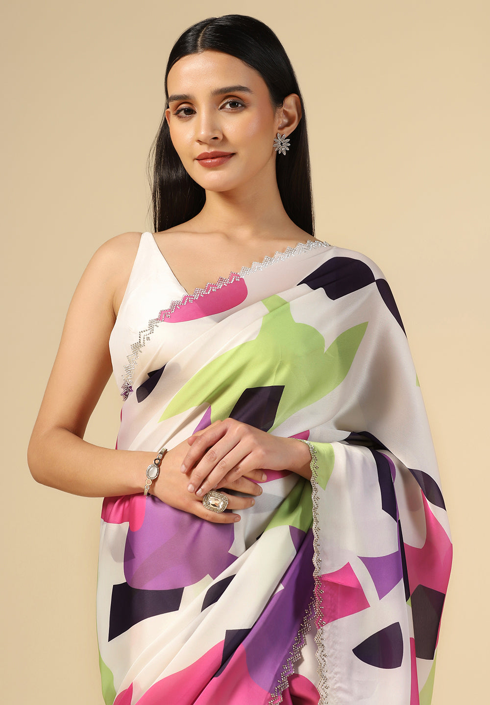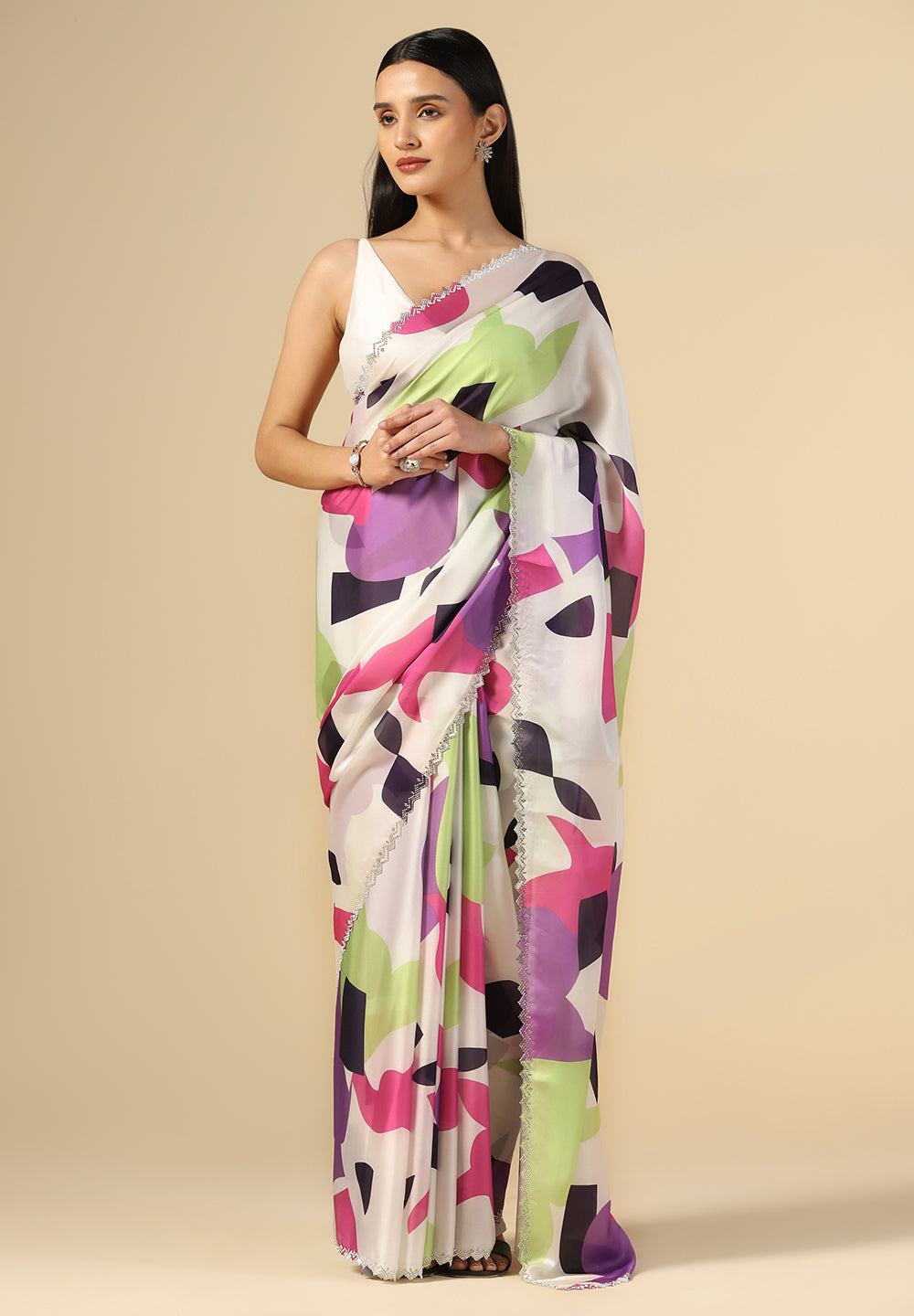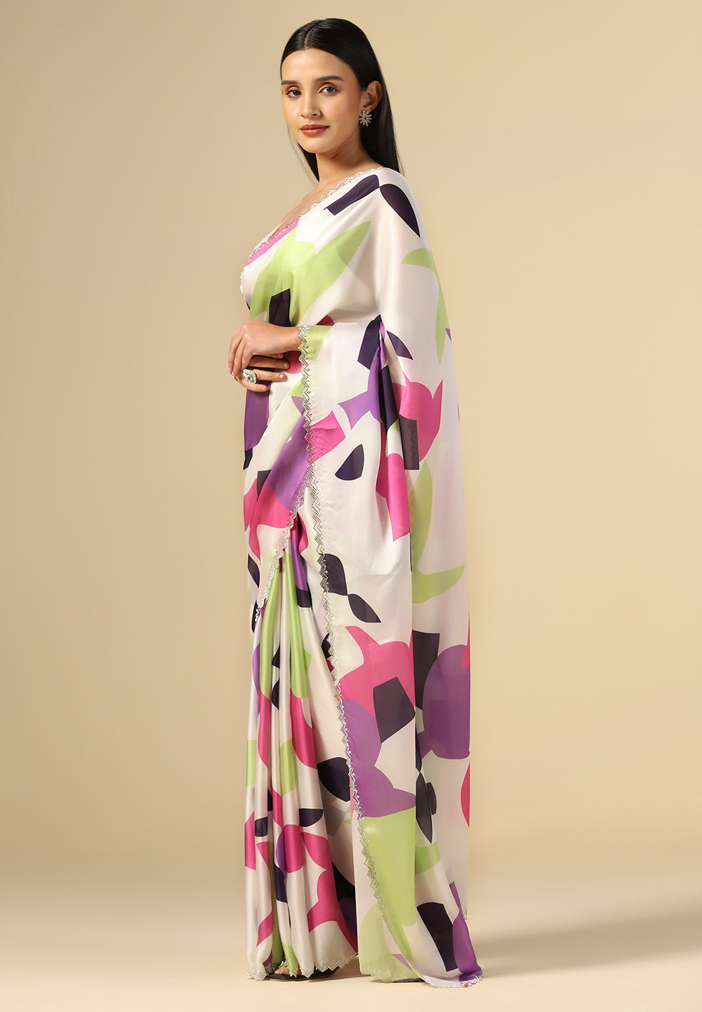 - Premium Fabrics: We use only the finest materials, from luxurious satin silk saree textures to breezy, comfortable satin crepe saree finishes.