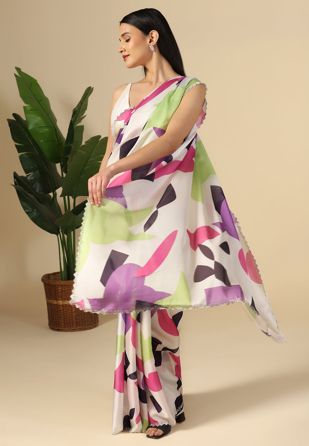 - Playful & Artistic Picks: Express your vibrant personality with a stunning multi-color satin saree, a true work of wearable art.