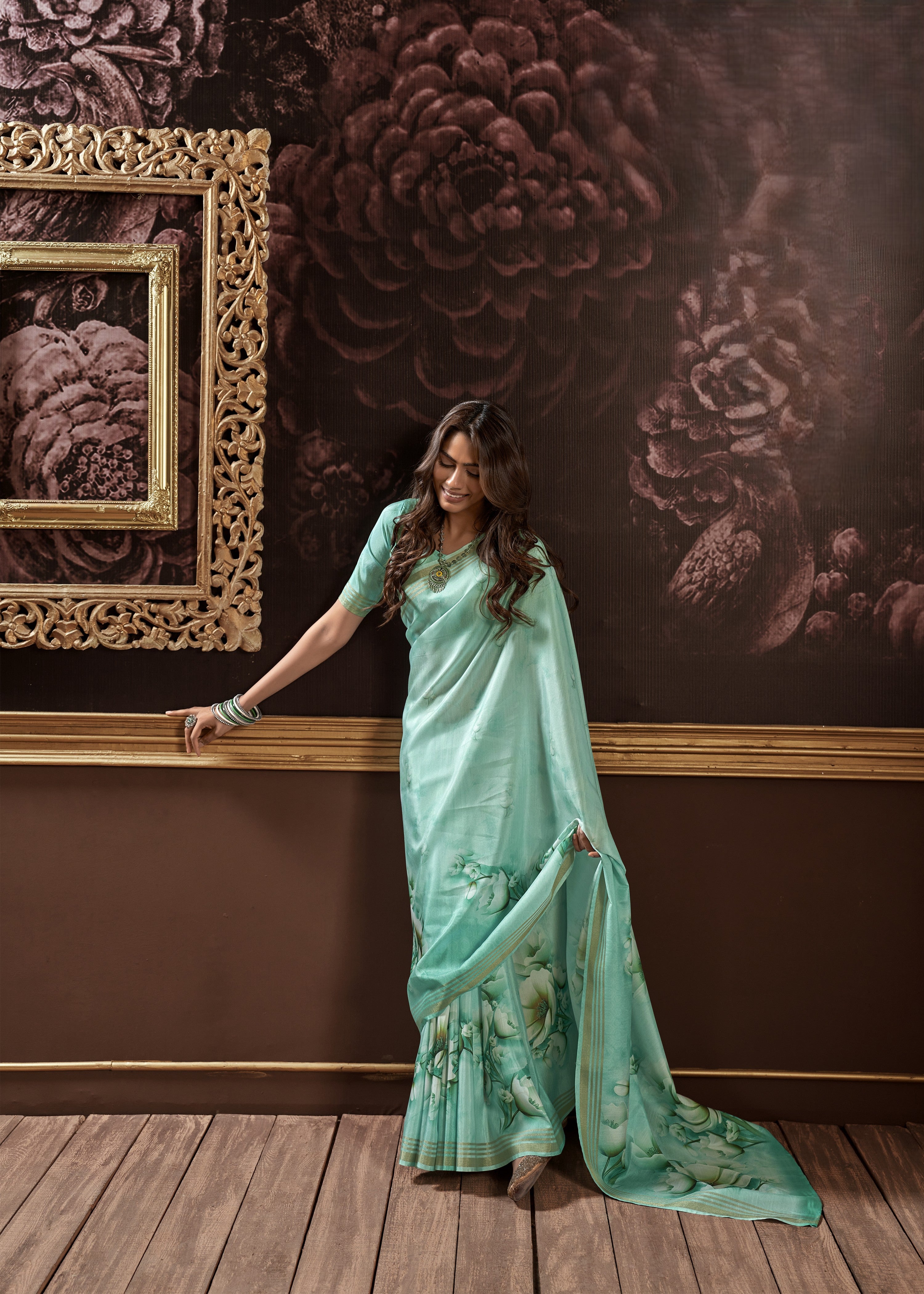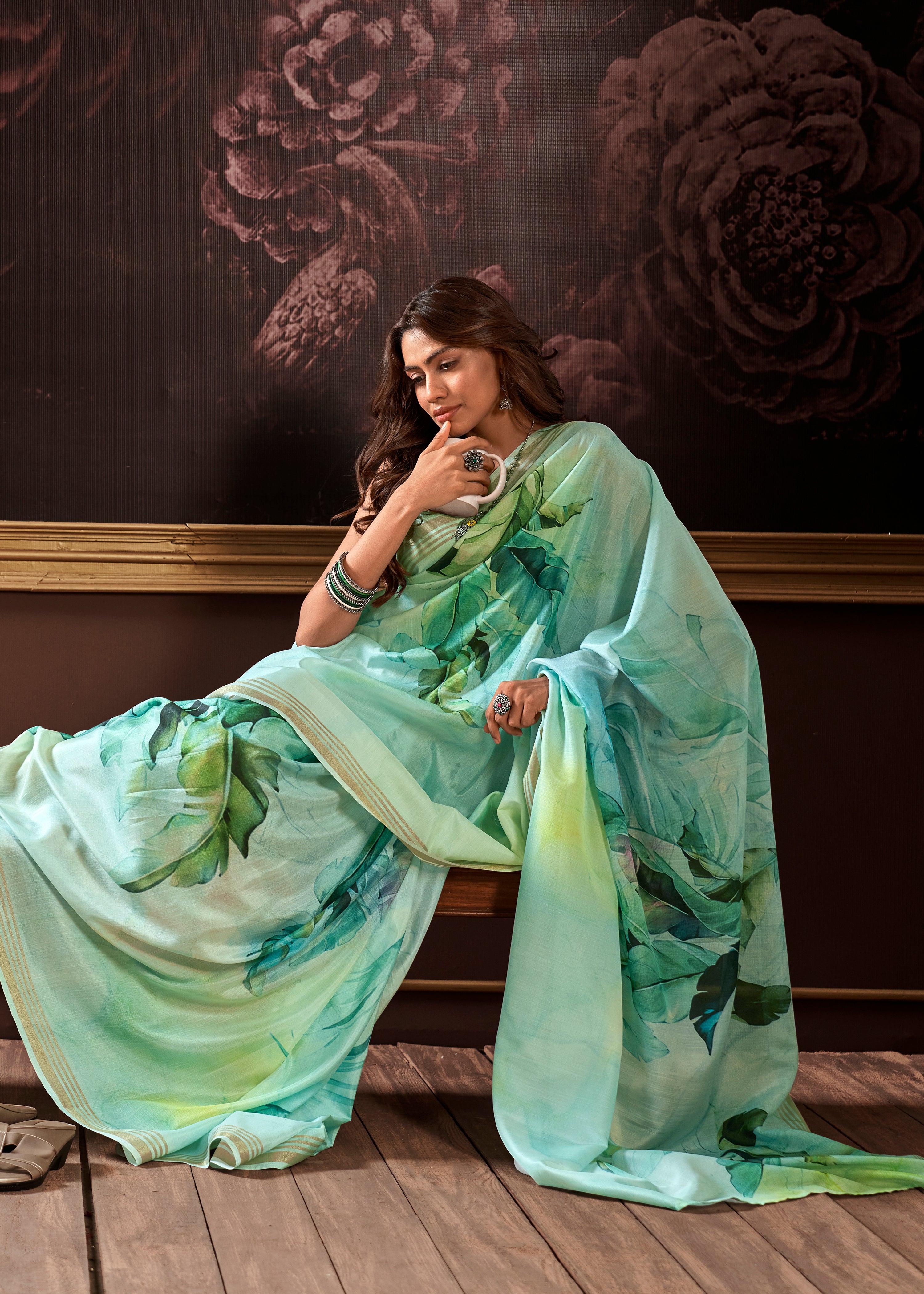 - Destination Weddings: Lightweight silk sarees in mint, lavender, coral—pair with floral headbands, minimal jewelry.