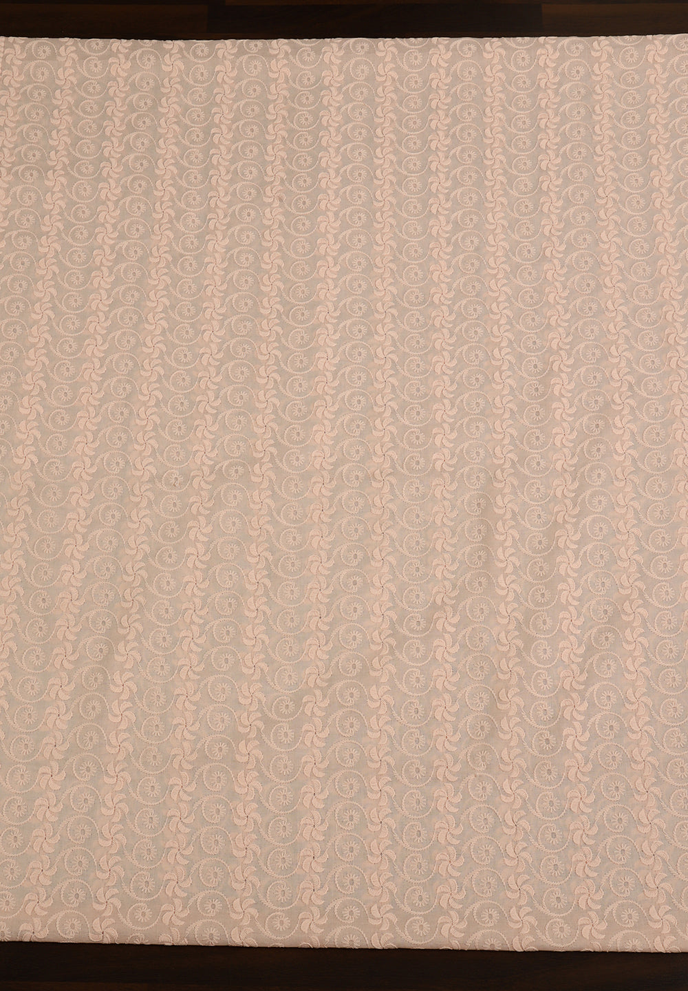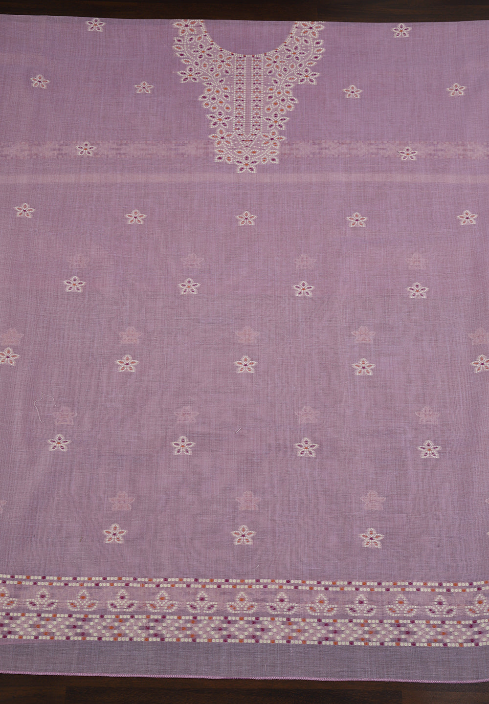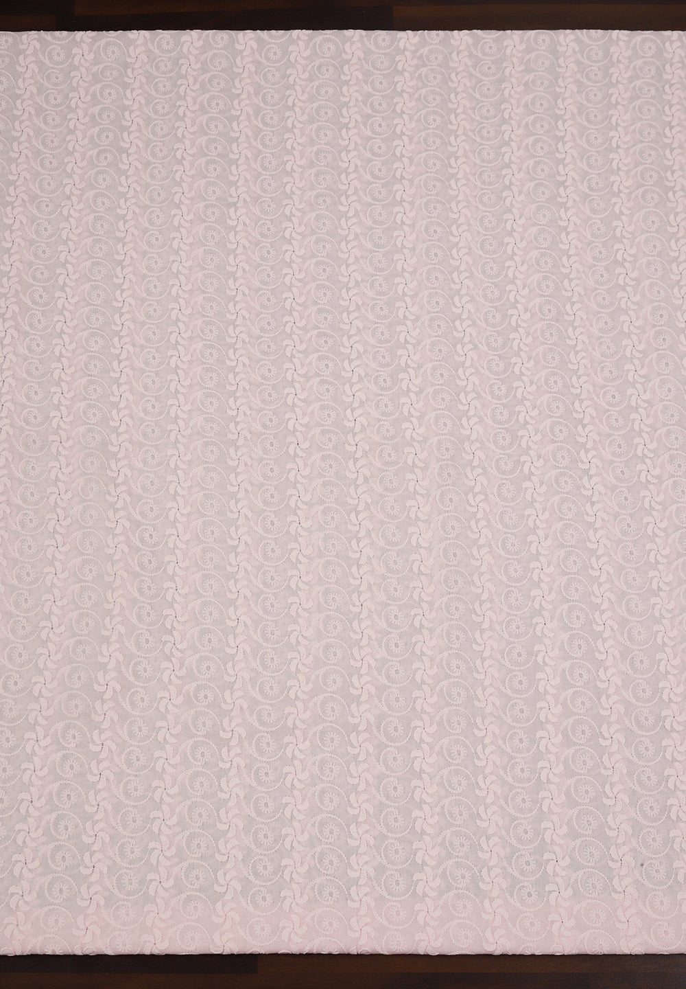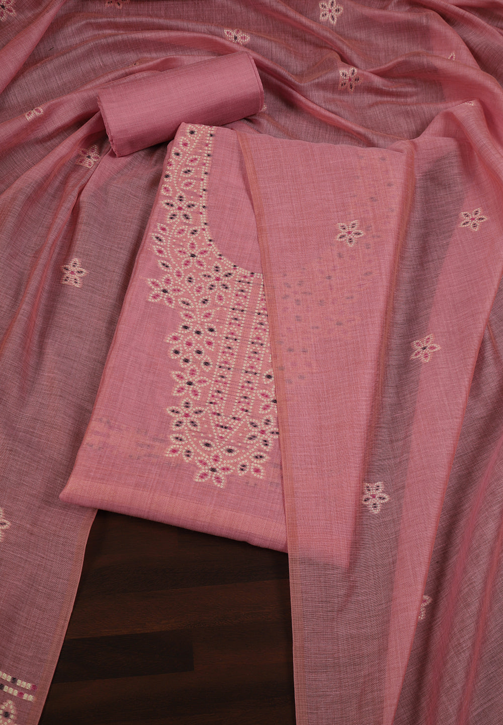 Pastel Pink Floral Linen-Cotton Suit – Intricate White Thread Work & Silver Zari Border Dupatta₹ 2,385