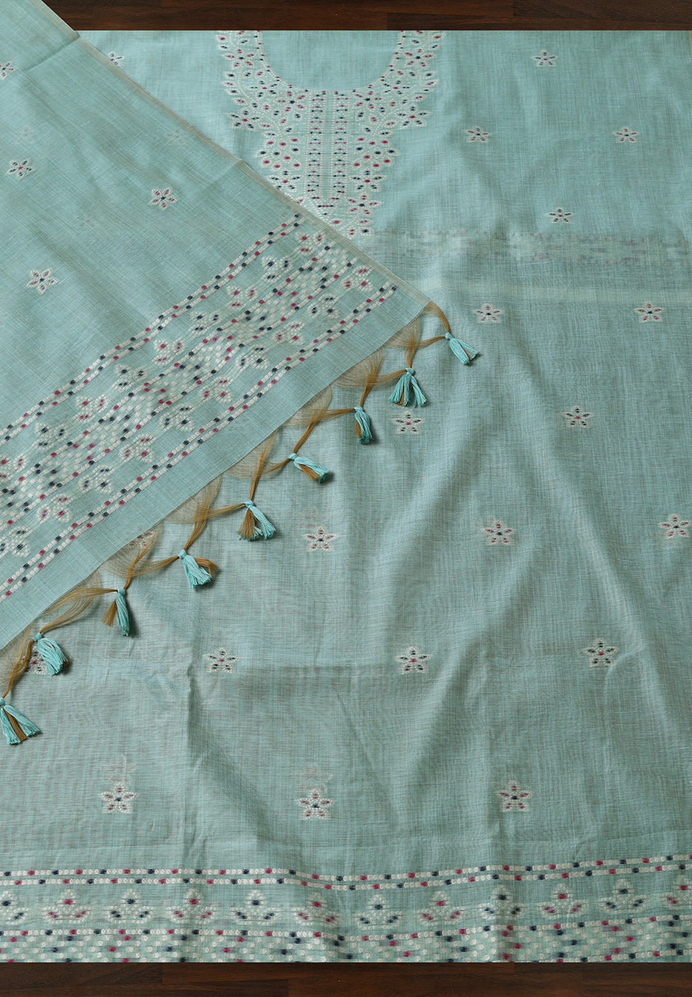 Handloom Linen-Cotton Unstitched Suit – Ivory Elegance with Ajrakh Block Prints₹ 4,185₹ 3,348