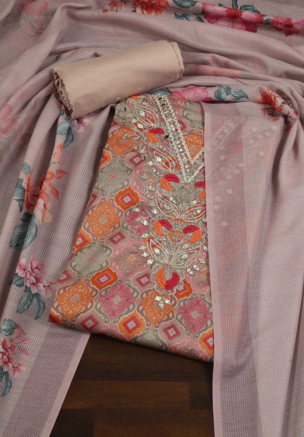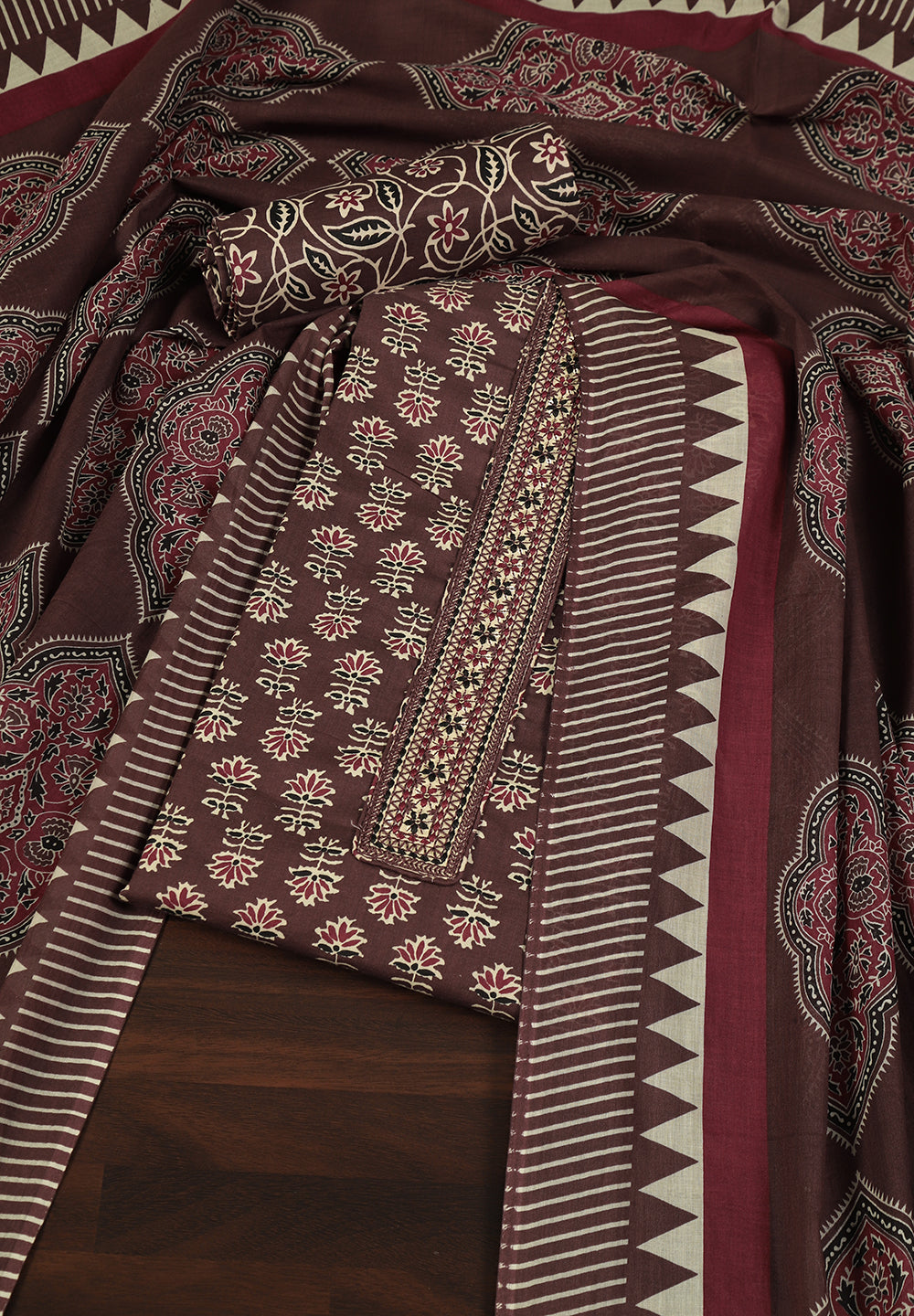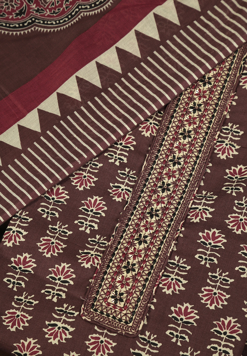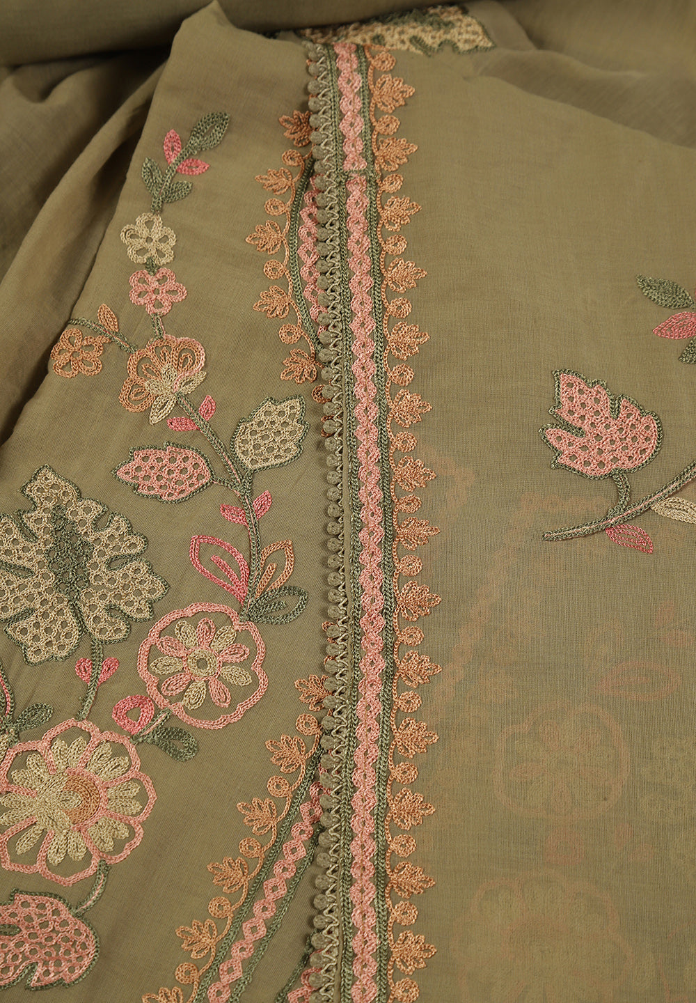 Earthy Taupe & Ivory Unstitched Suit – Geometric Thread Work with Sheer Tissue Dupatta₹ 3,185₹ 2,548