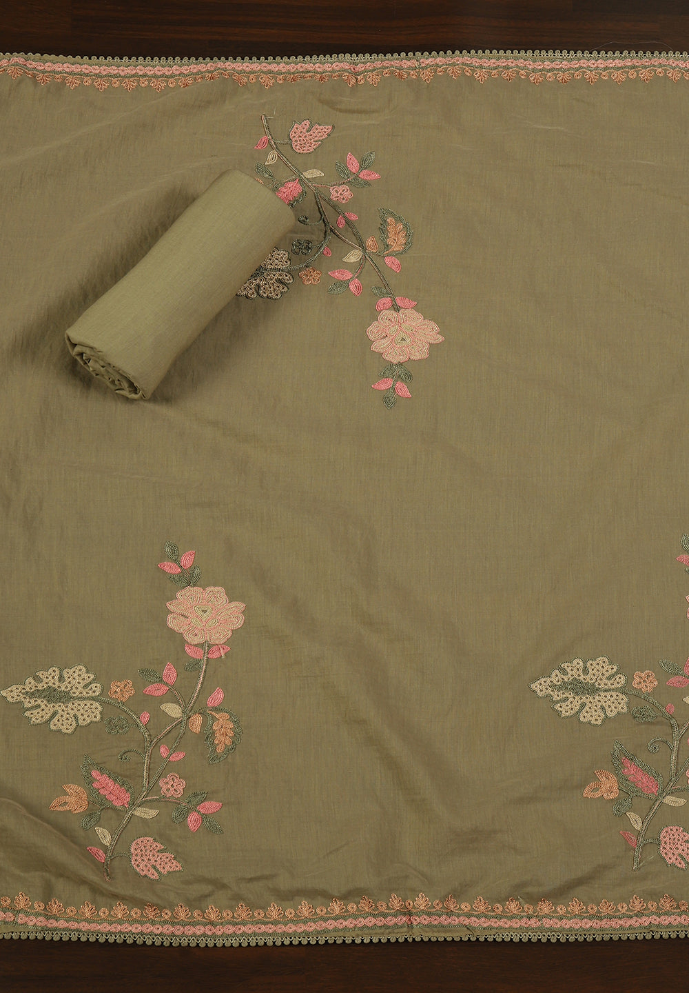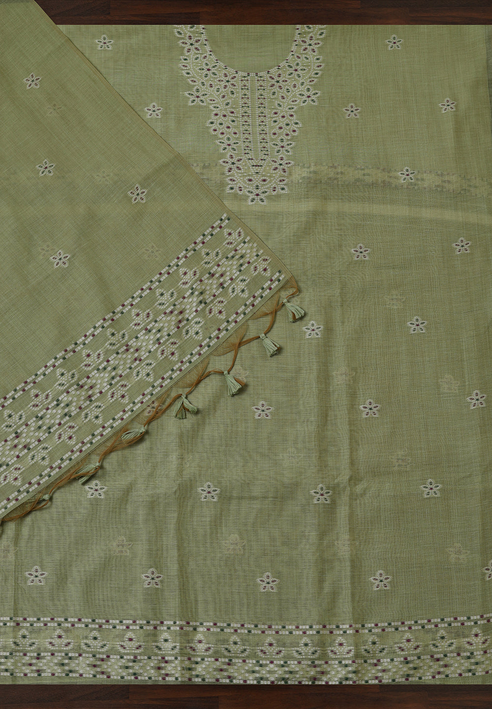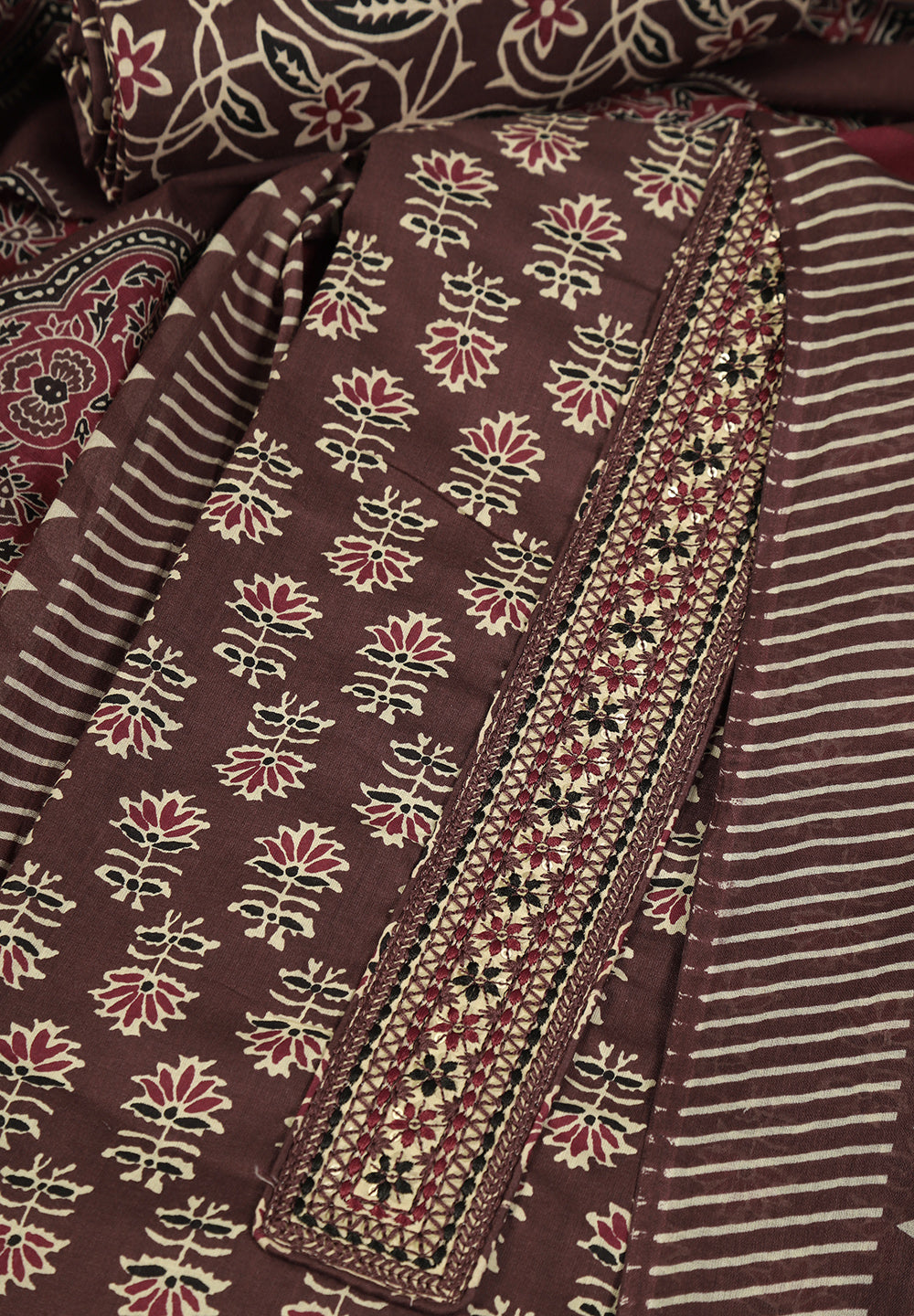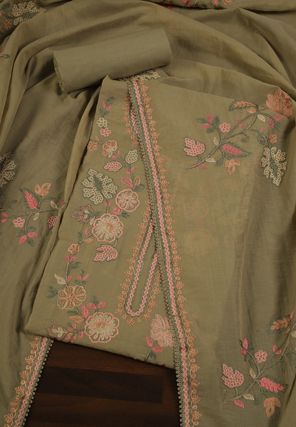 Earthy Taupe & Ivory Unstitched Suit – Geometric Thread Work with Sheer Tissue Dupatta₹ 3,185₹ 2,548