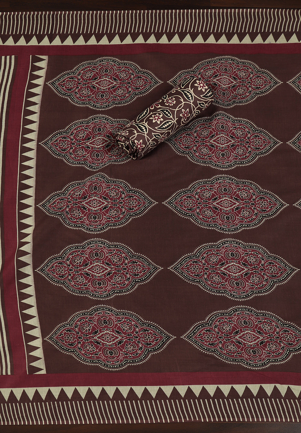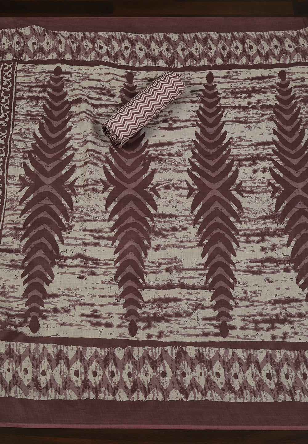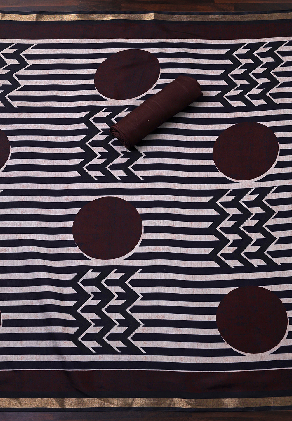 Sophisticated Cream Linen Cotton Unstitched Suit with Geometric Motif & Striped Accents₹ 4,785₹ 3,828