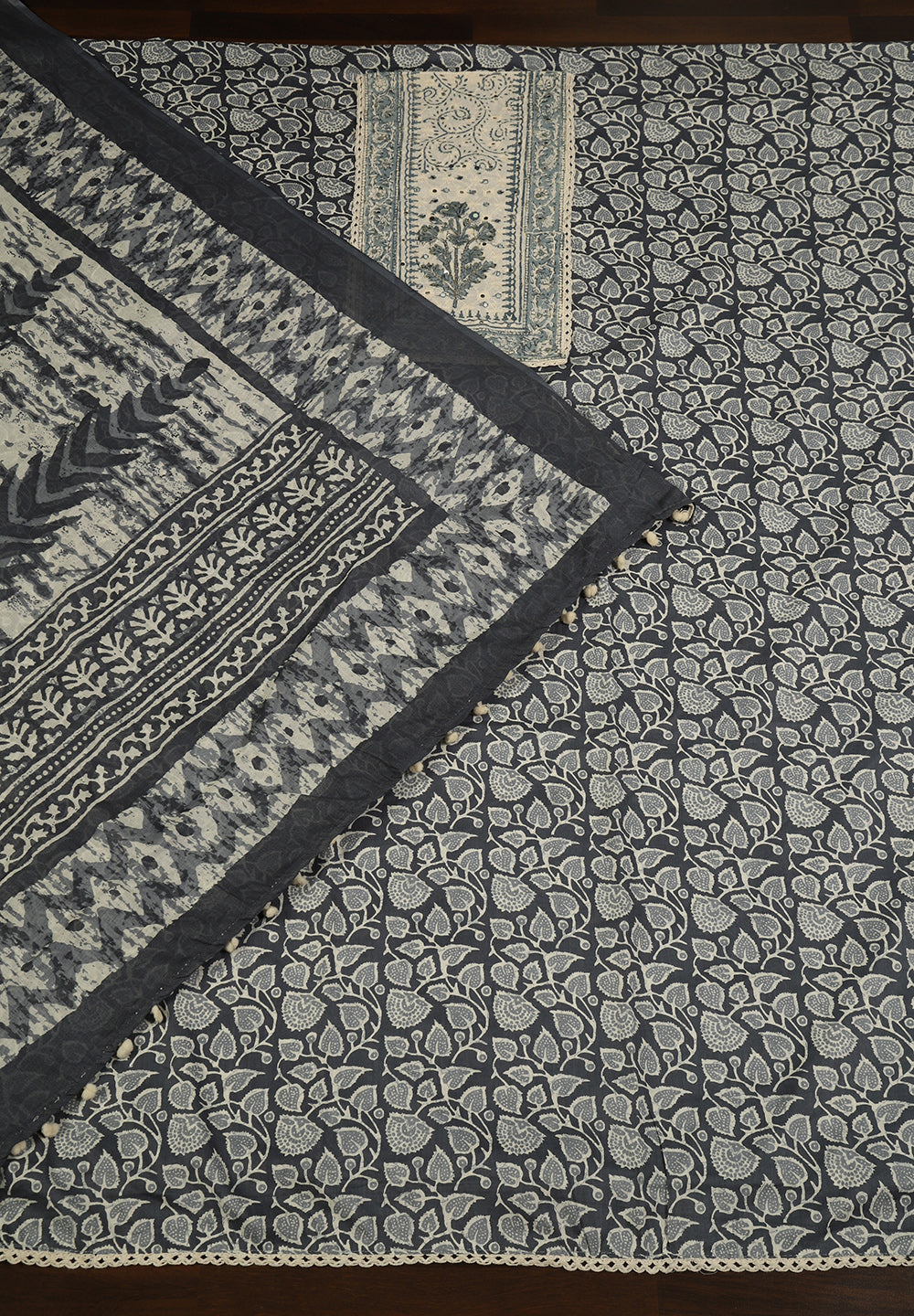 Hand-Block Floral Linen Unstitched Suit – Ivory & Cerulean Blue Serenity₹ 4,385₹ 3,508