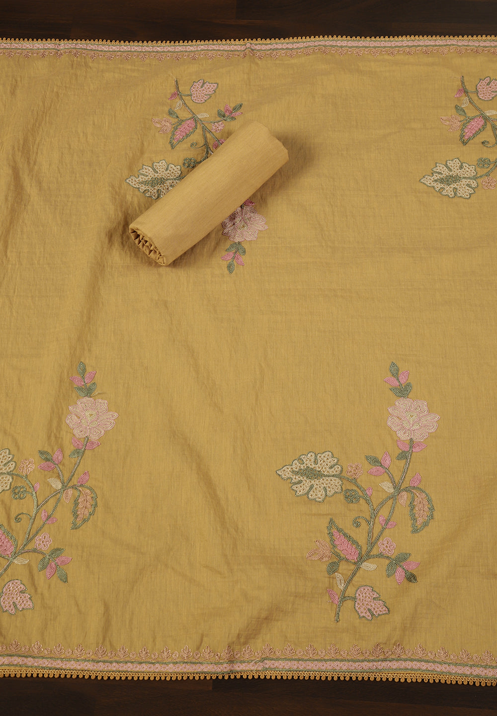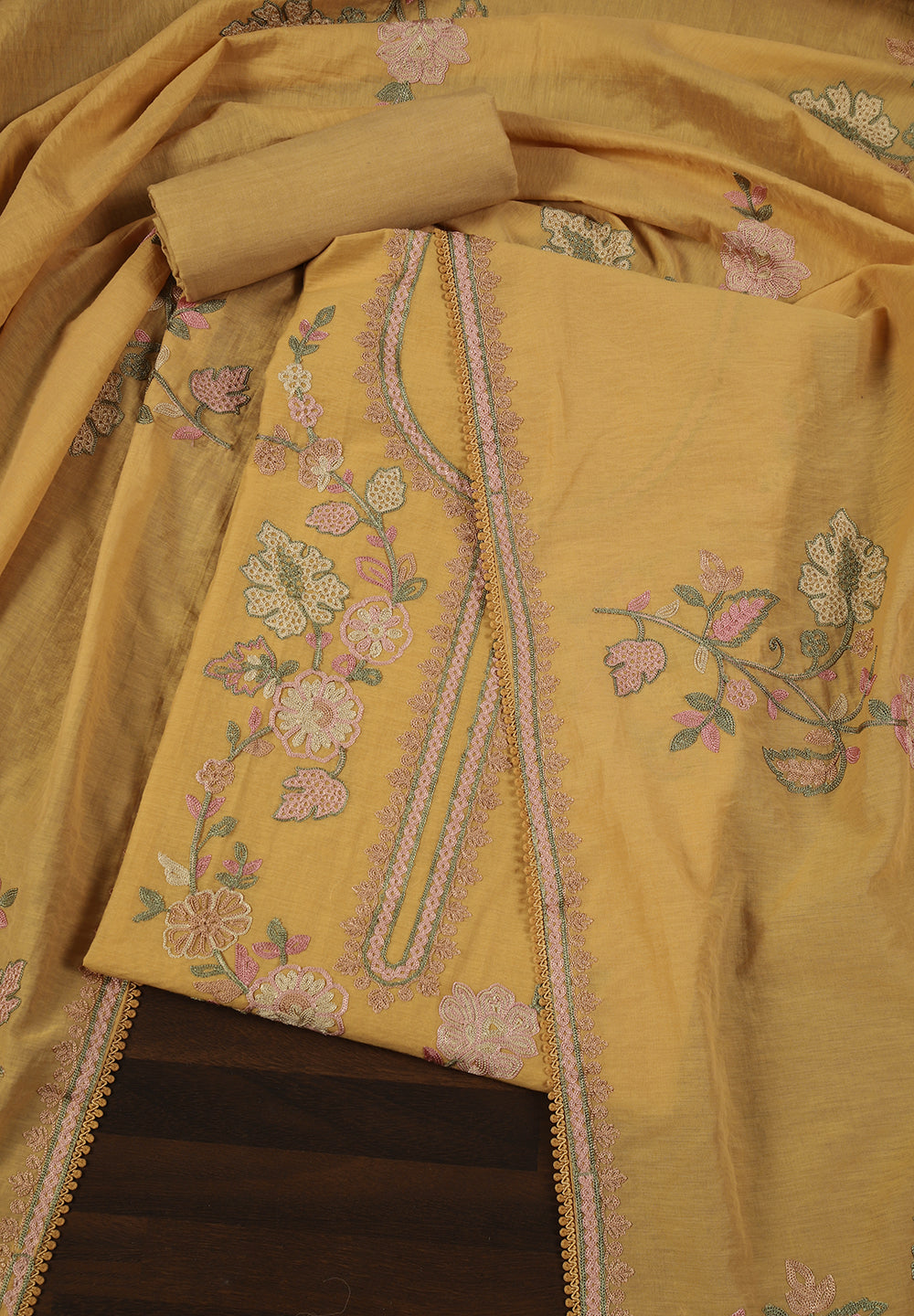 Exquisite Gold Banarasi Kota Doriya Unstitched Suit with Floral Embroidery₹ 3,485₹ 2,788