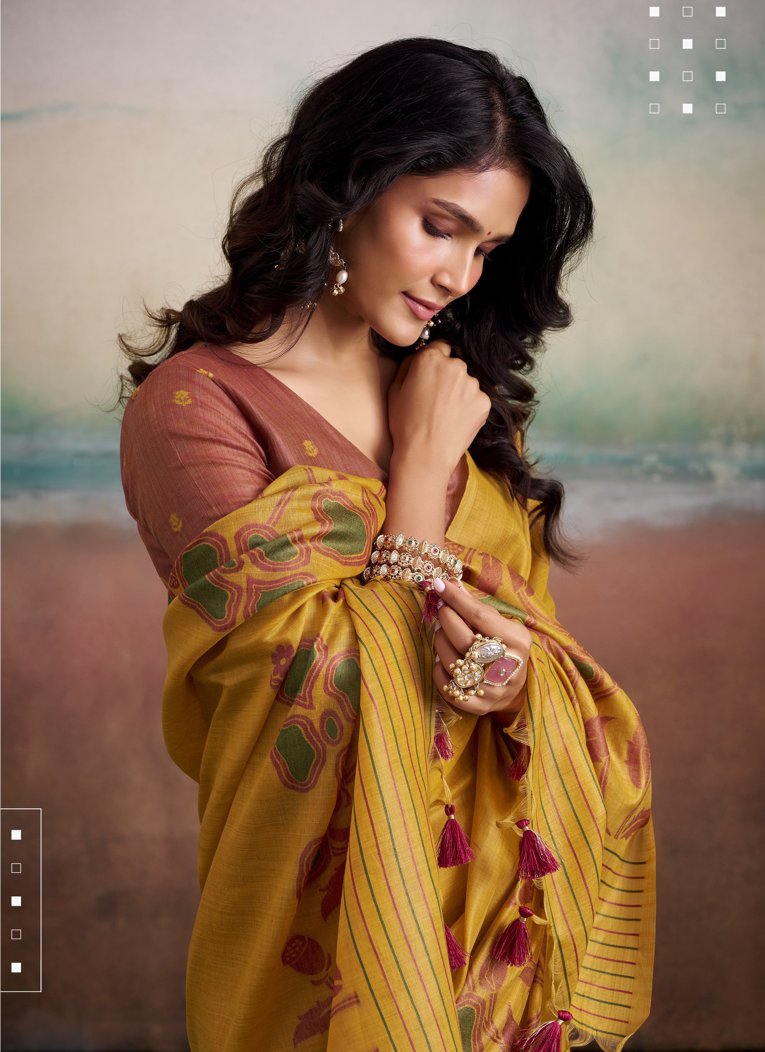 From mustard and lemon tones to pastel yellow and golden accents, every saree is tailored to suit diverse tastes while enhancing your style quotient.