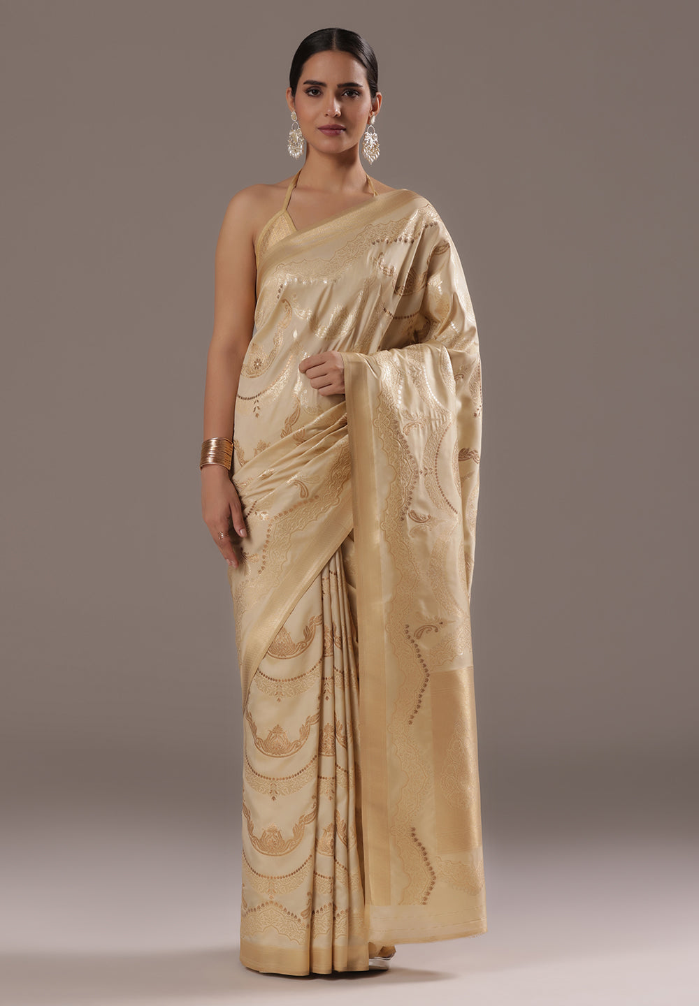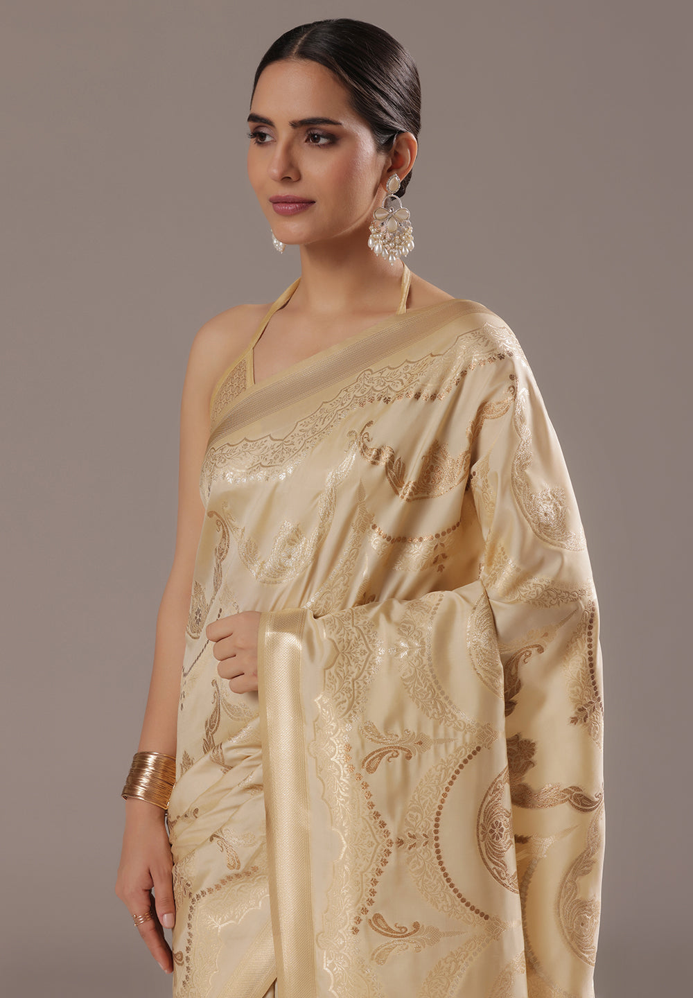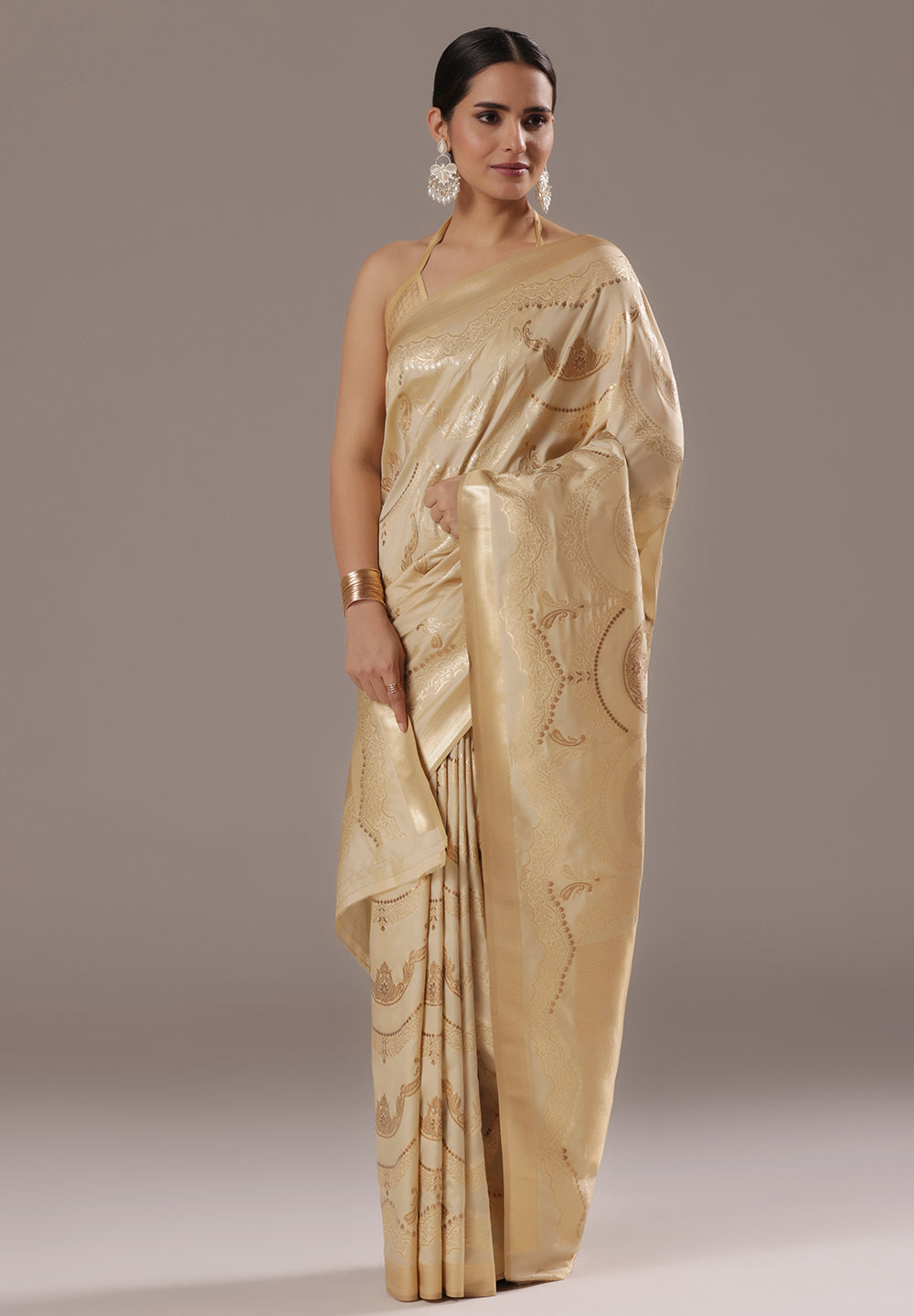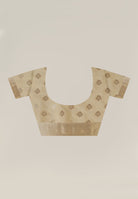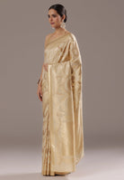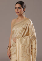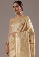 A Touch of Royalty: Cream Banarasi Silk Saree with Golden Zari Accents