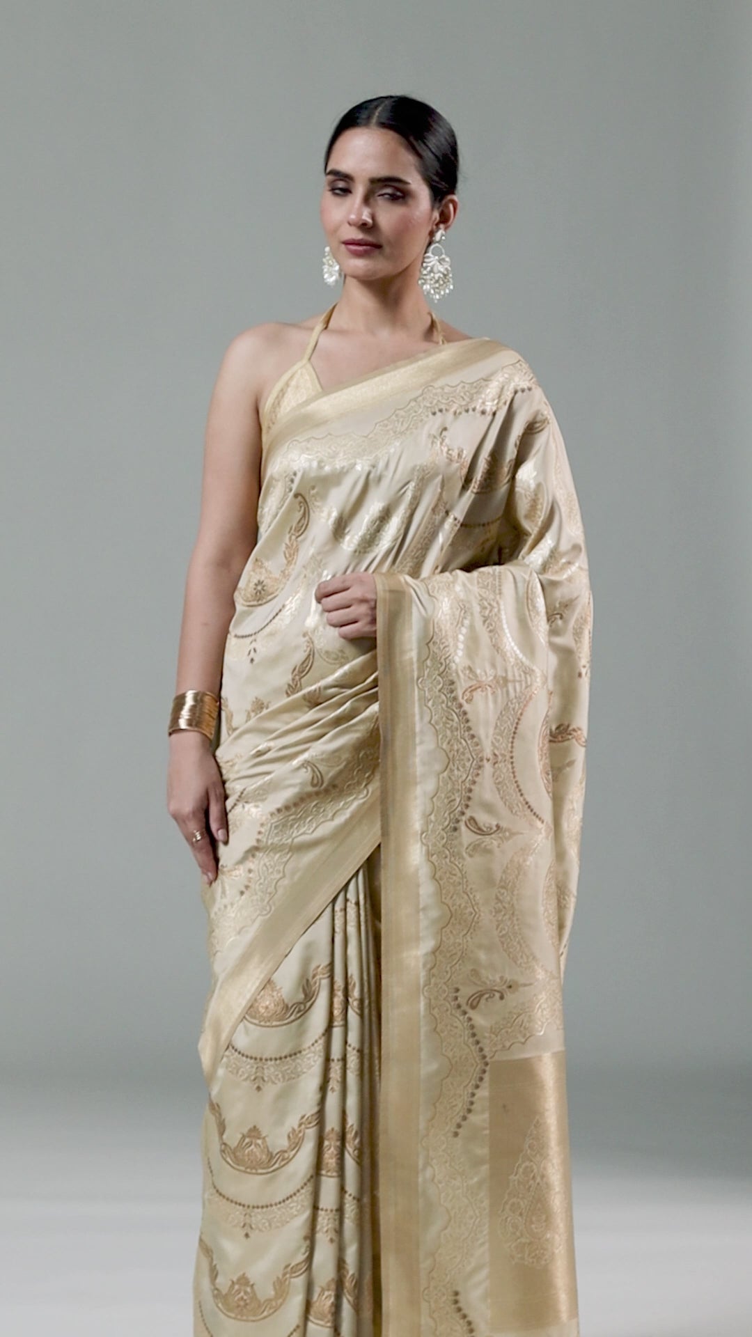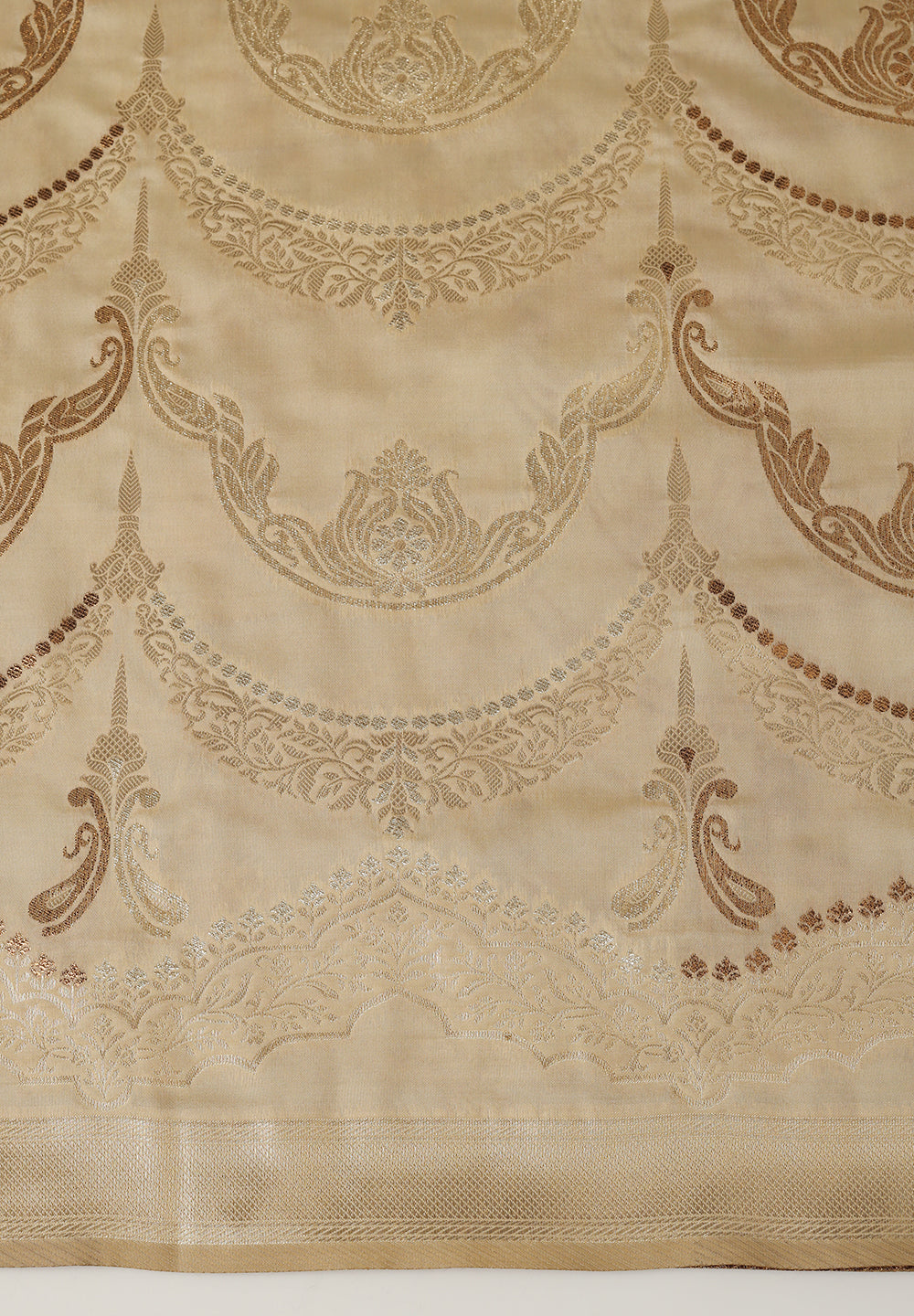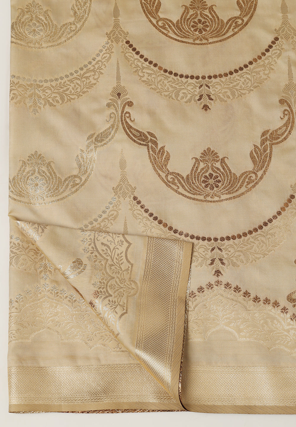 A Touch of Royalty: Cream Banarasi Silk Saree with Golden Zari Accents