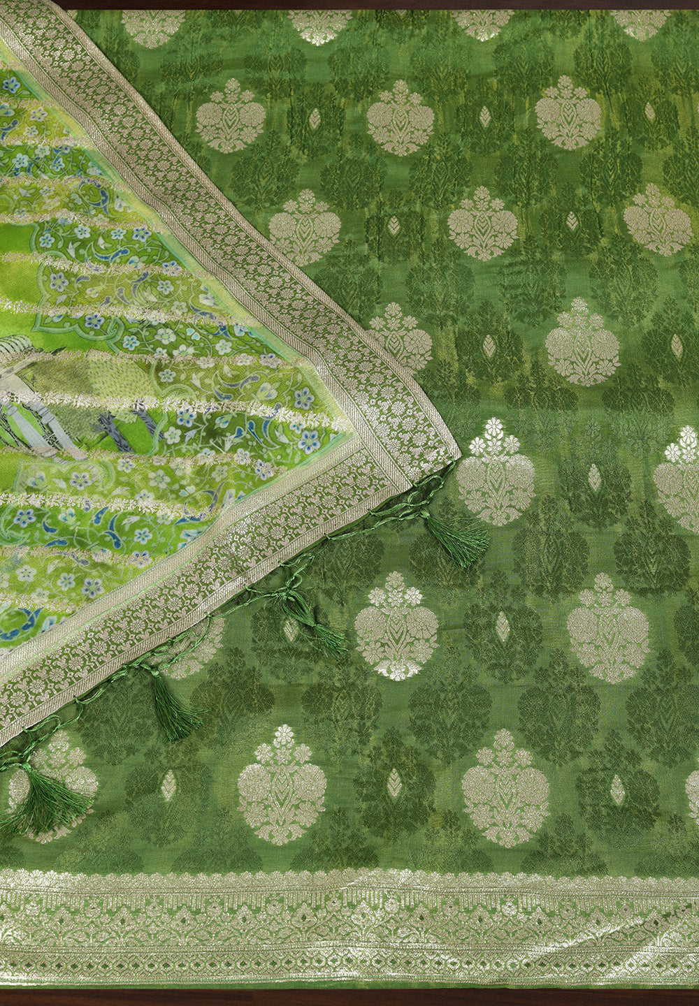 Banarasi Zari Work Suit with Art Silk Dupatta