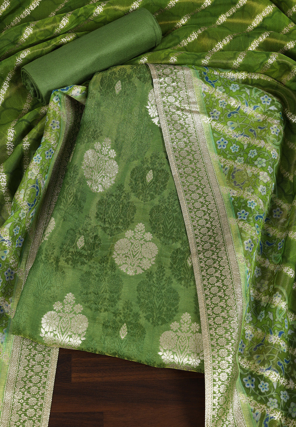 Immerse yourself in the opulent charm of our Banarasi Art Silk Unstitched Fabric Suit, elevated with a delightful floral pattern and intricate zari work in a Beautiful design. The luxurious Banarasi Art Silk fabric adds a touch of richness to the ensemble. Paired with an unstitched Art Silk bottom and an Art Silk Dupatta, this outfit is perfect for those who appreciate the fusion of tradition and modern style, creating a beautiful and graceful ensemble.