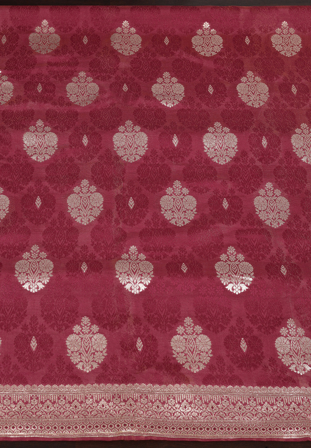 - Accompanied With An Unstitched Art Silk Bottom And Art Silk Dupatta