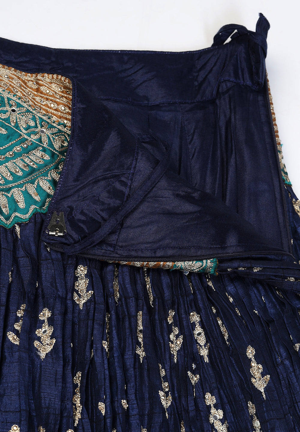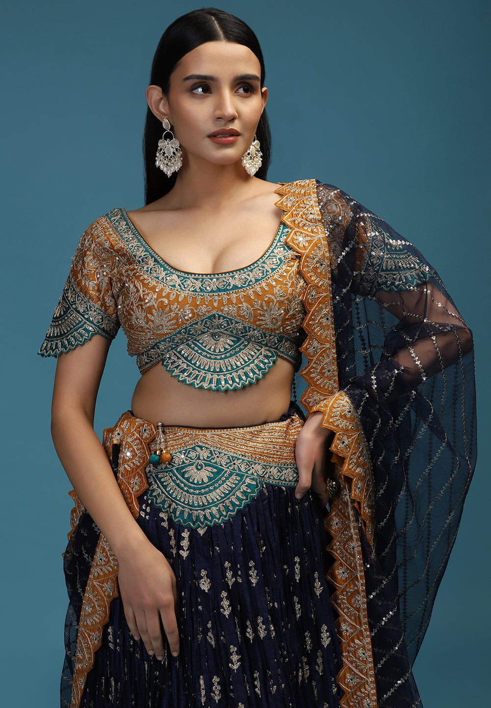 - The Lehenga is Embellished with Kasab and Mirror Work