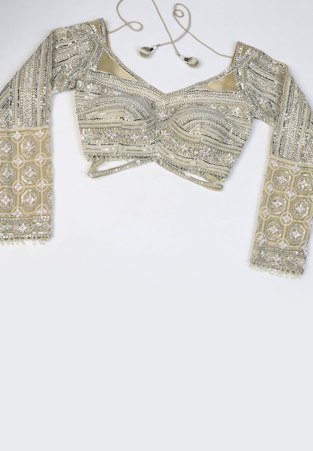 - The Lehenga is embellished with Zarkan, Sequins And Pearl Work