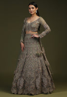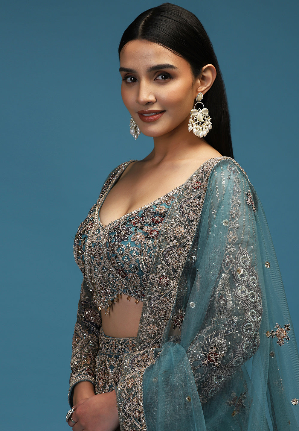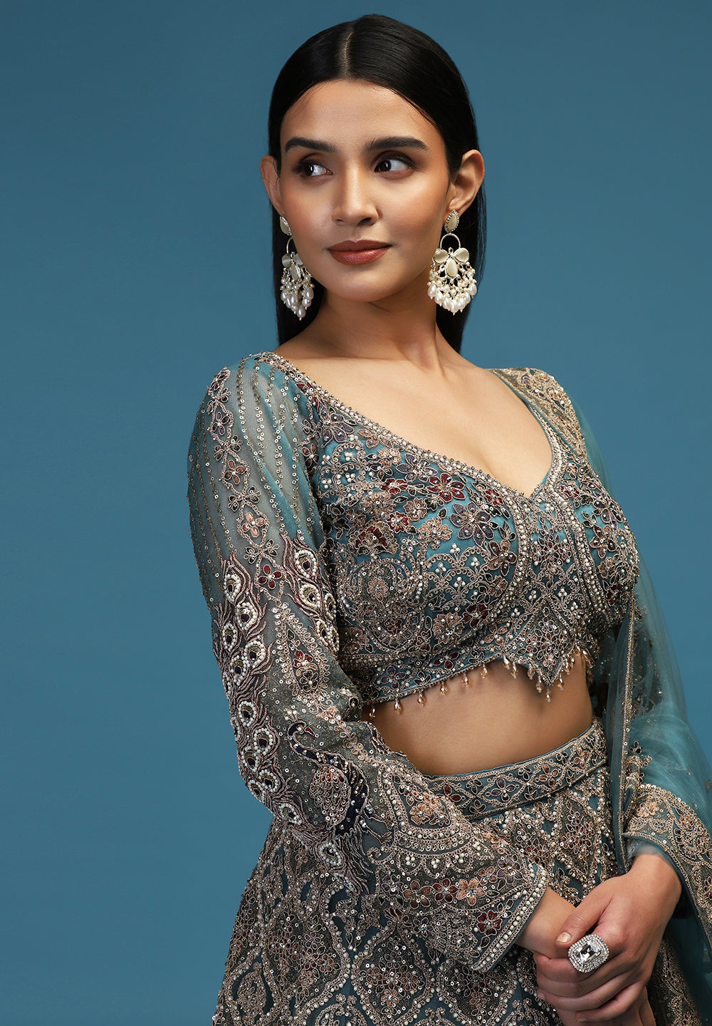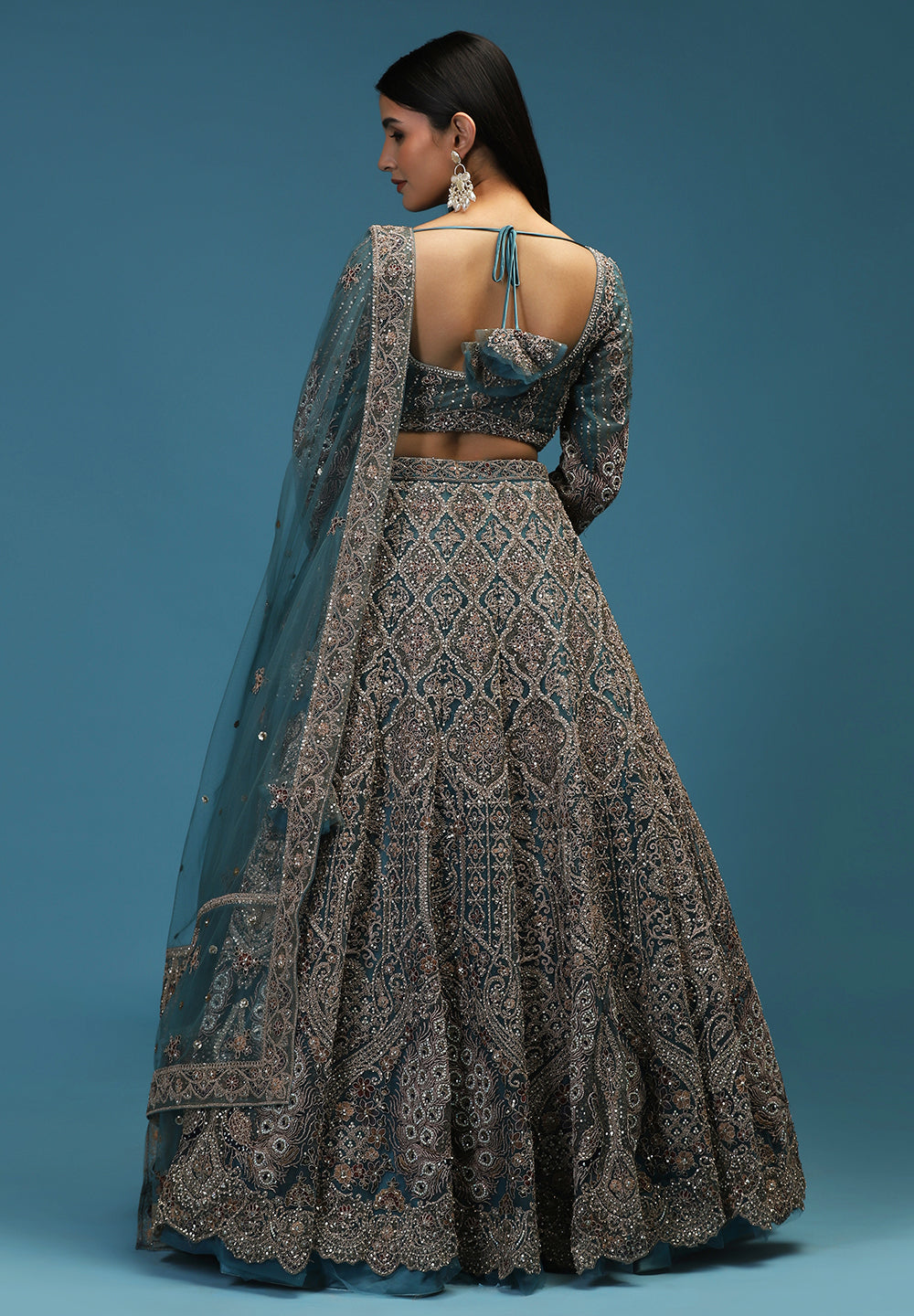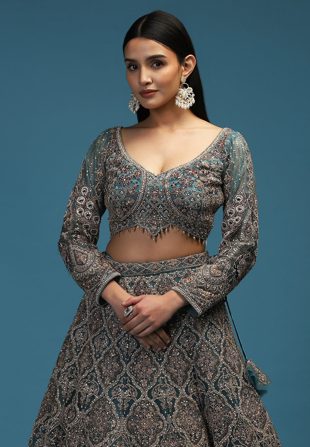 - The Lehenga is embellished with Zarkan, Dori And Pearl Work