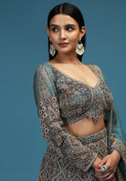Immerse yourself in the enchanting allure of "Ethereal Blossom" Lehenga Set by Bombay Selections. Crafted with precision from Net, this ready-to-wear ensemble exudes grace. The zip closure ensures easy elegance, while the included Dupatta adds a finishing touch to your timeless look.