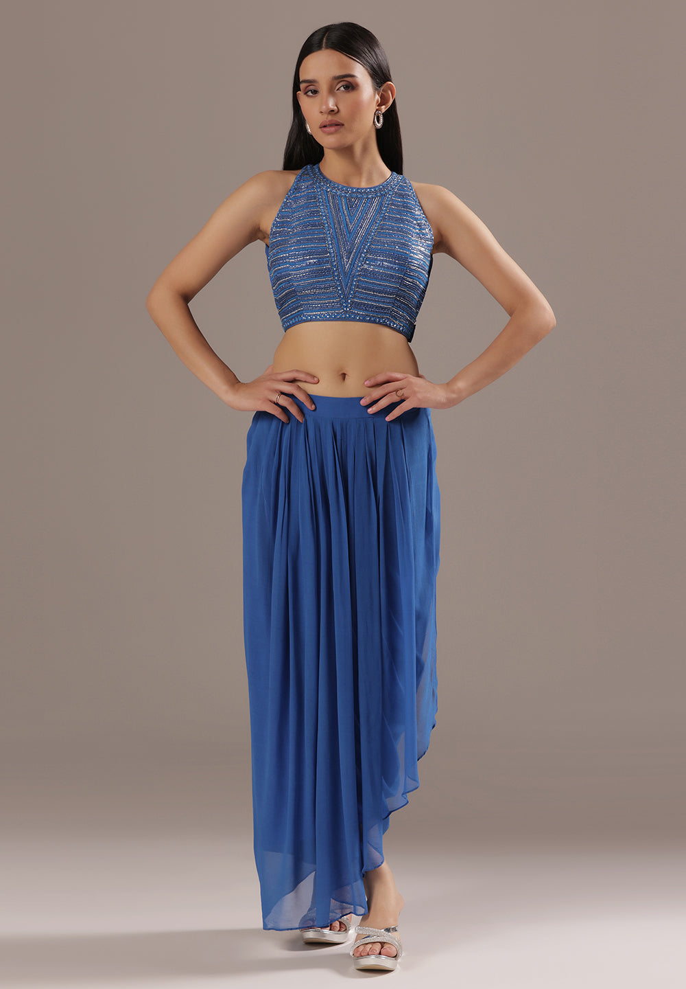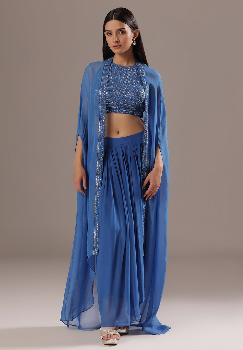 Blue Sequin Cape Co-ord Set