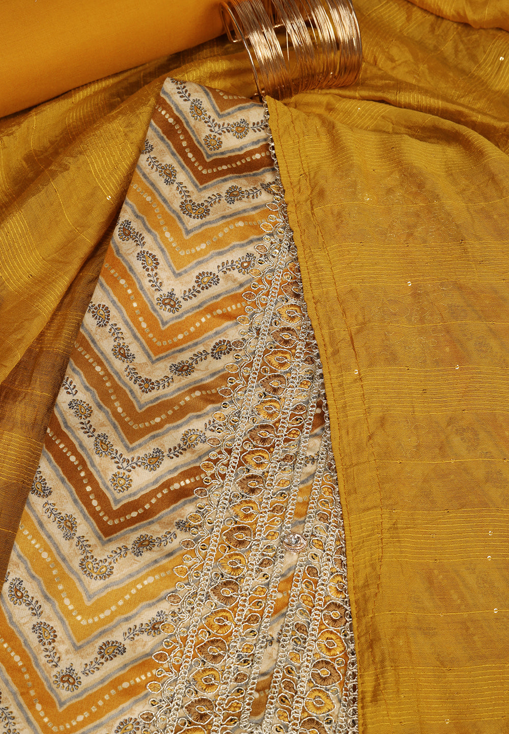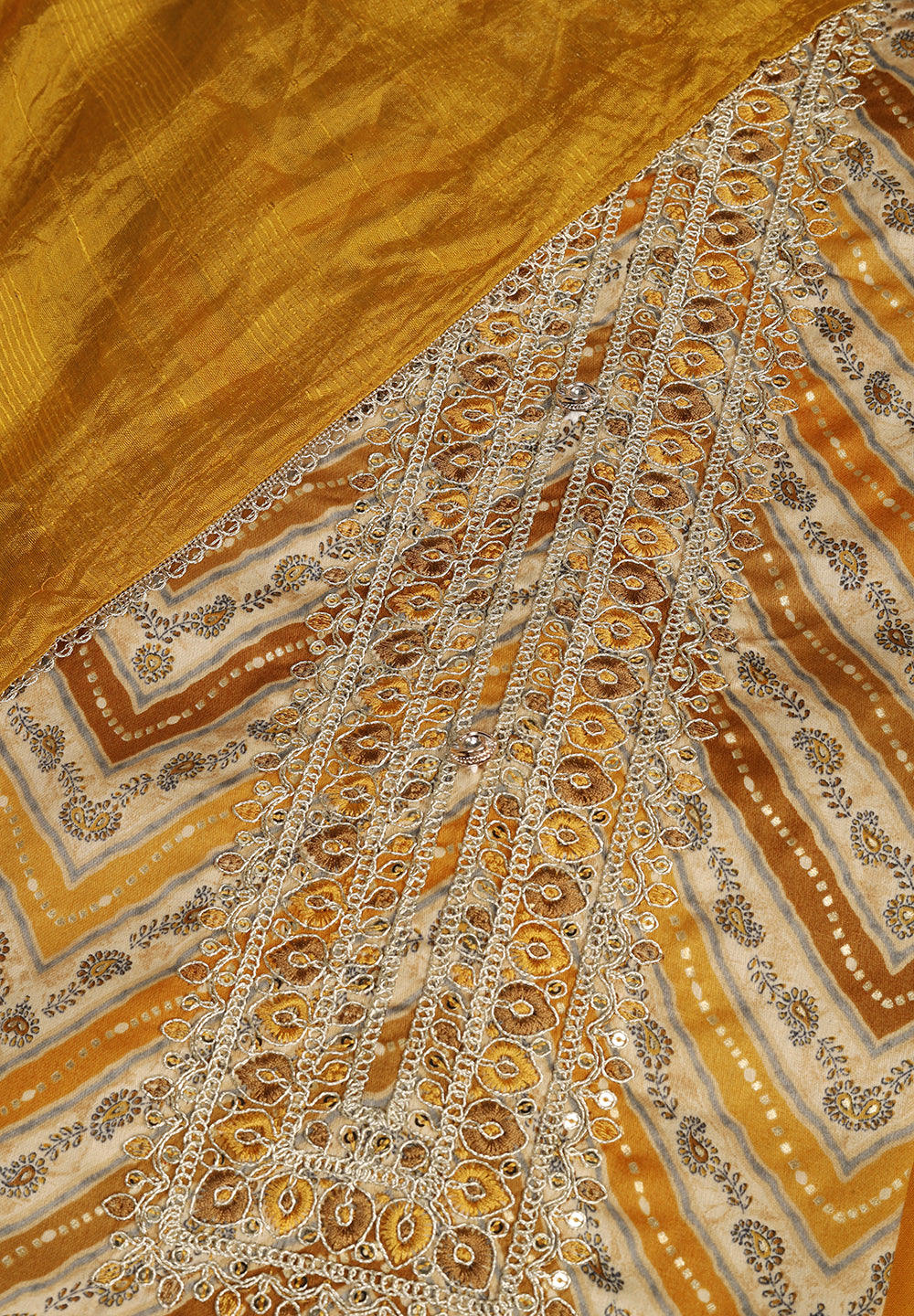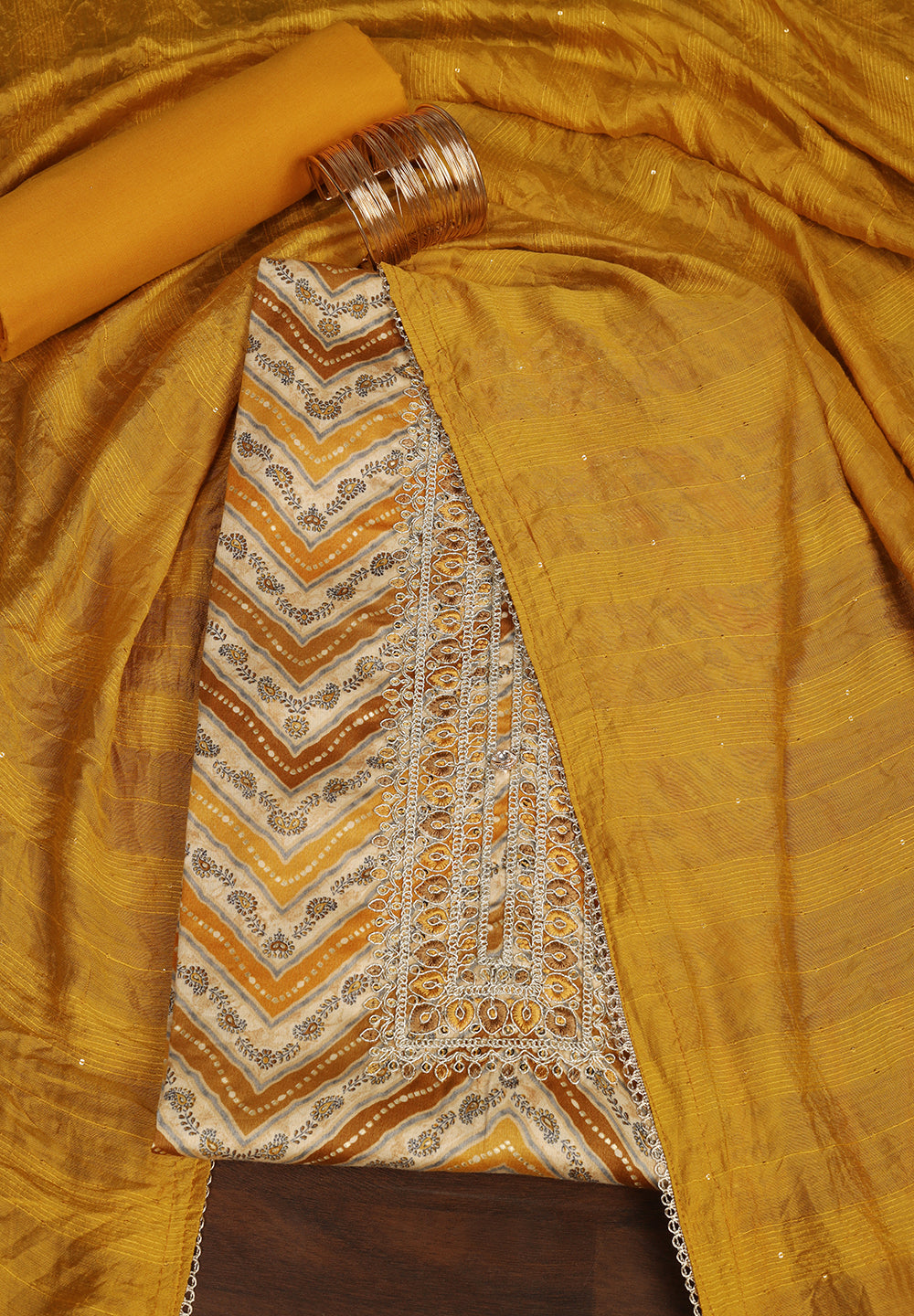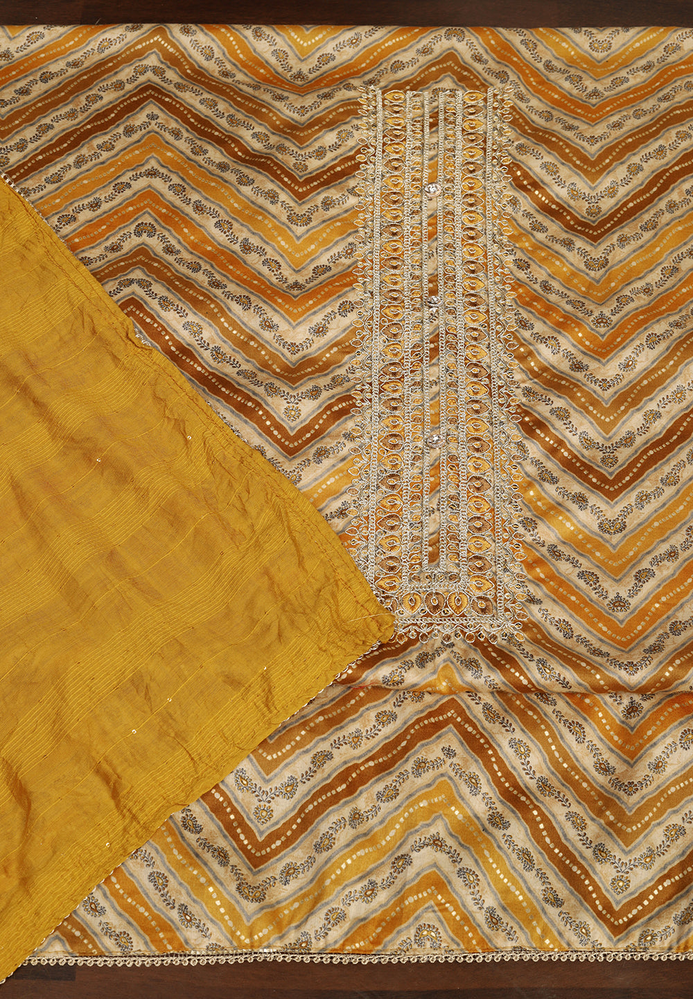 - Accompanied With An Unstitched Cotton Bottom And Georgette Dupatta