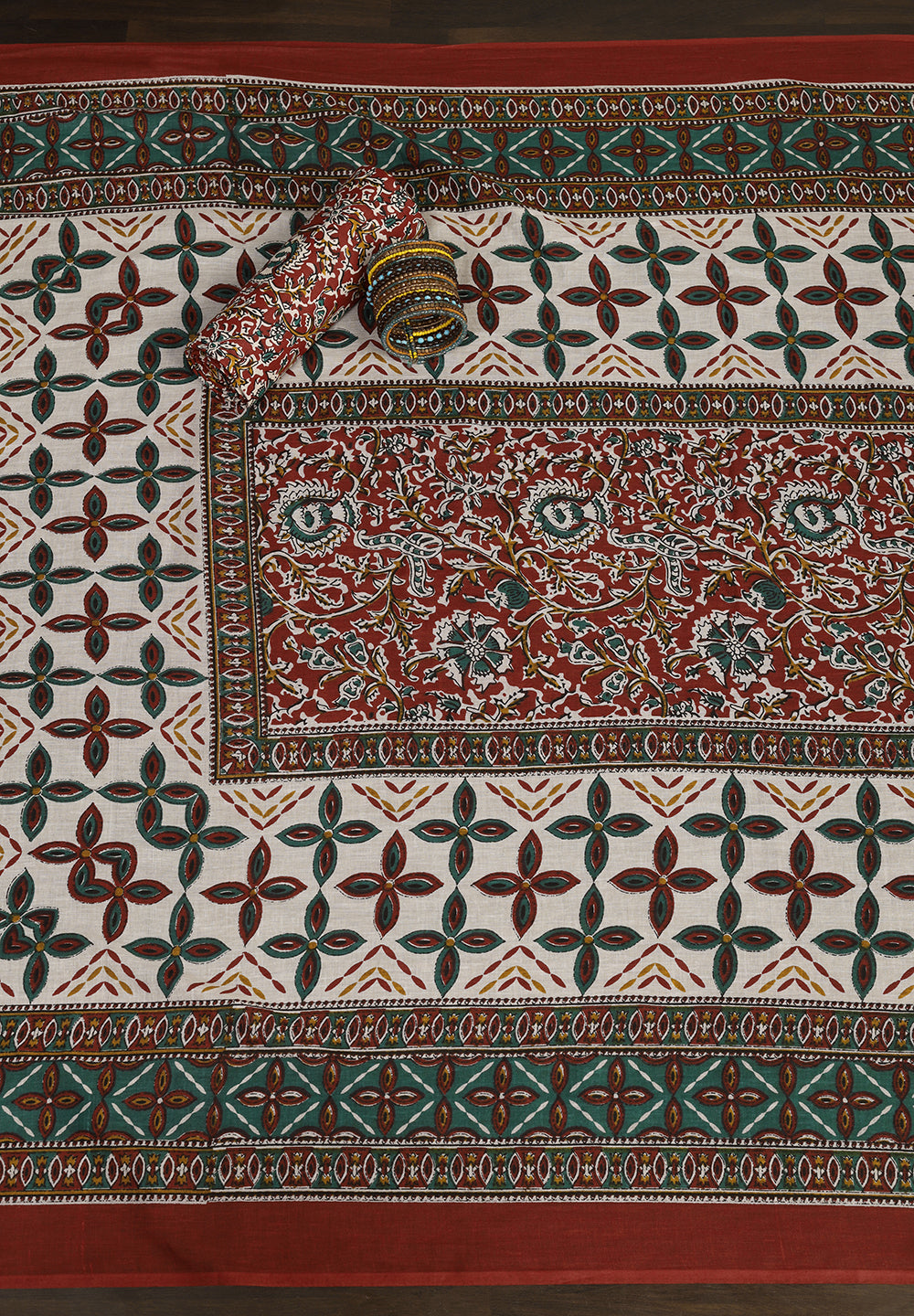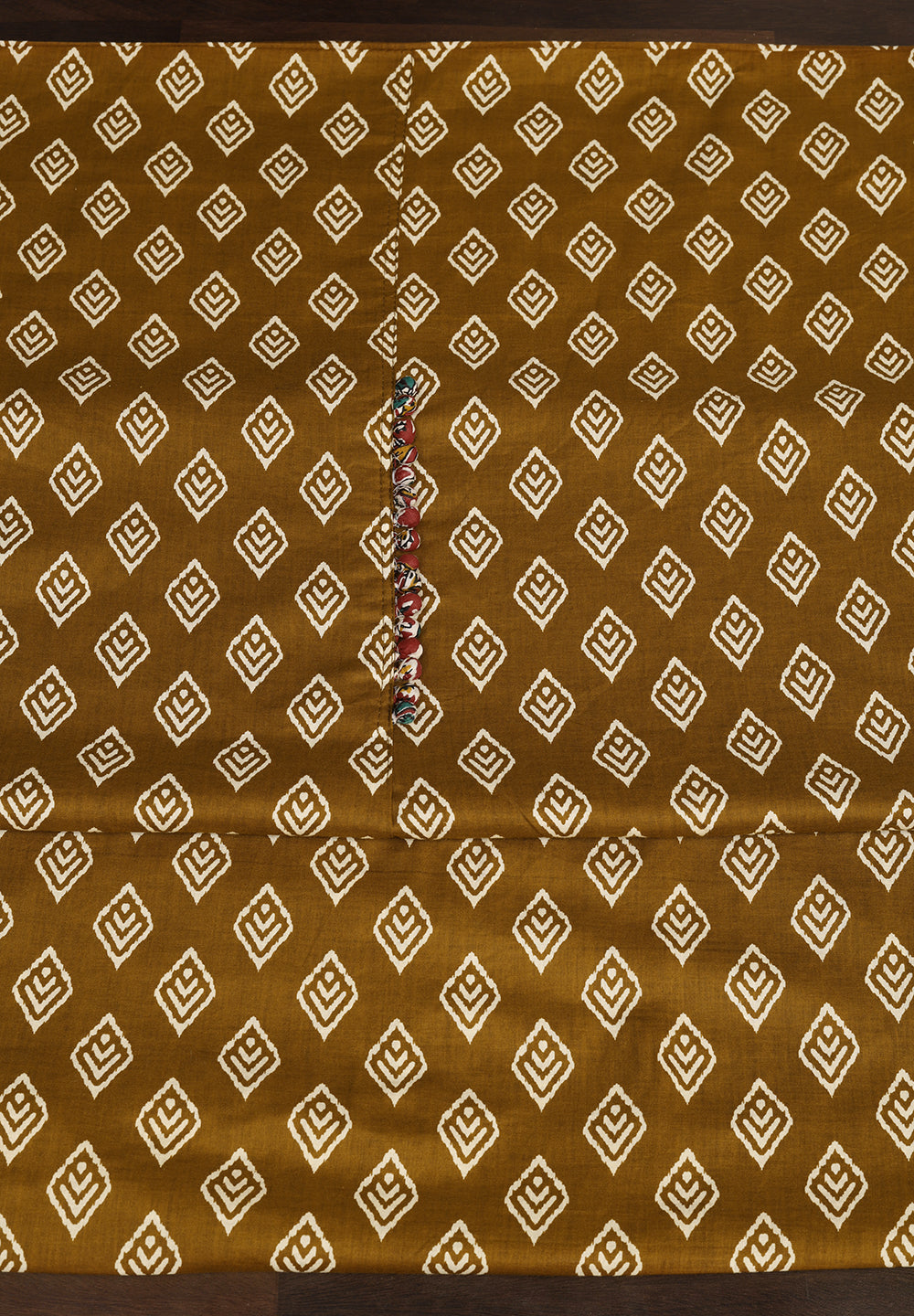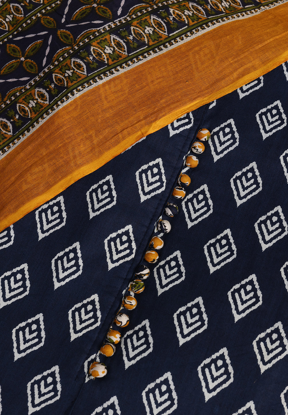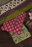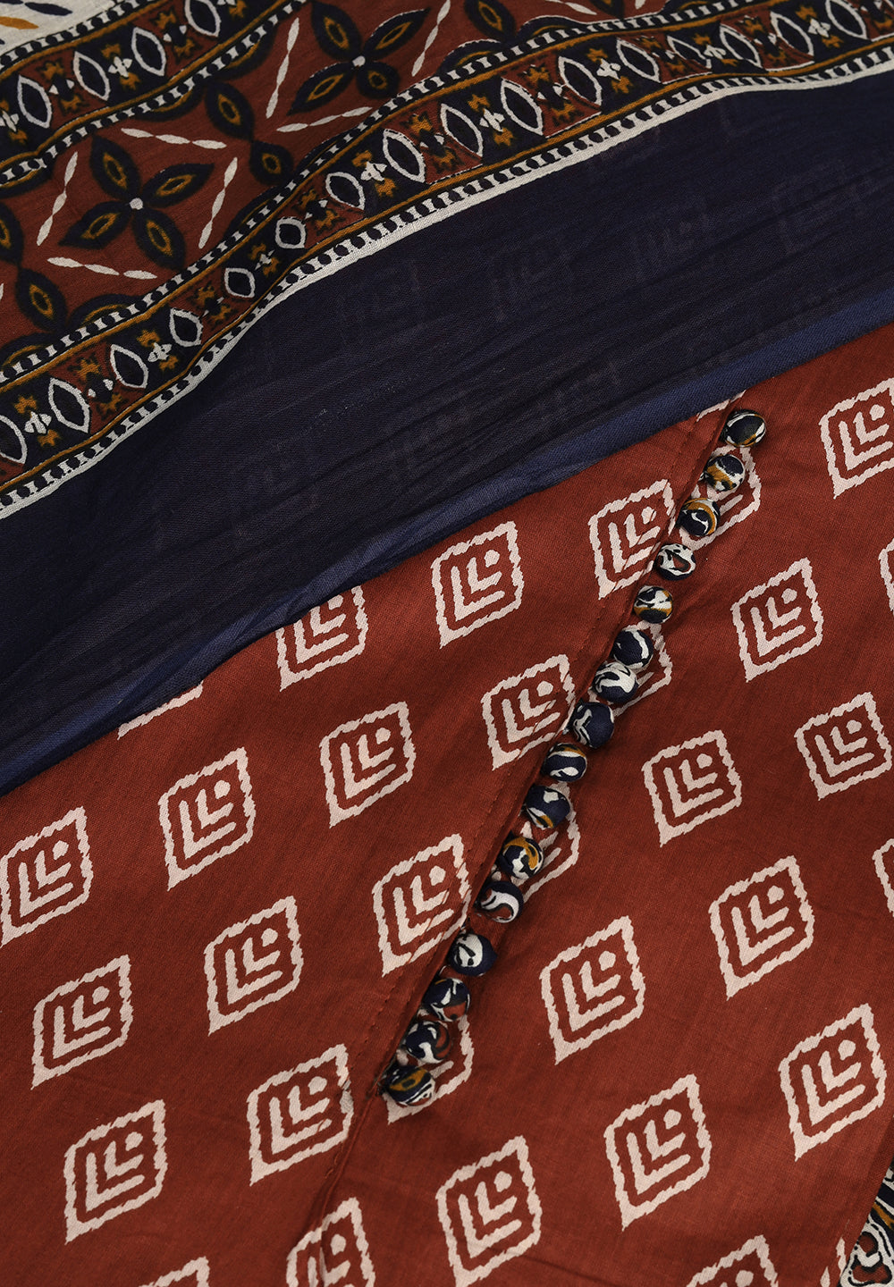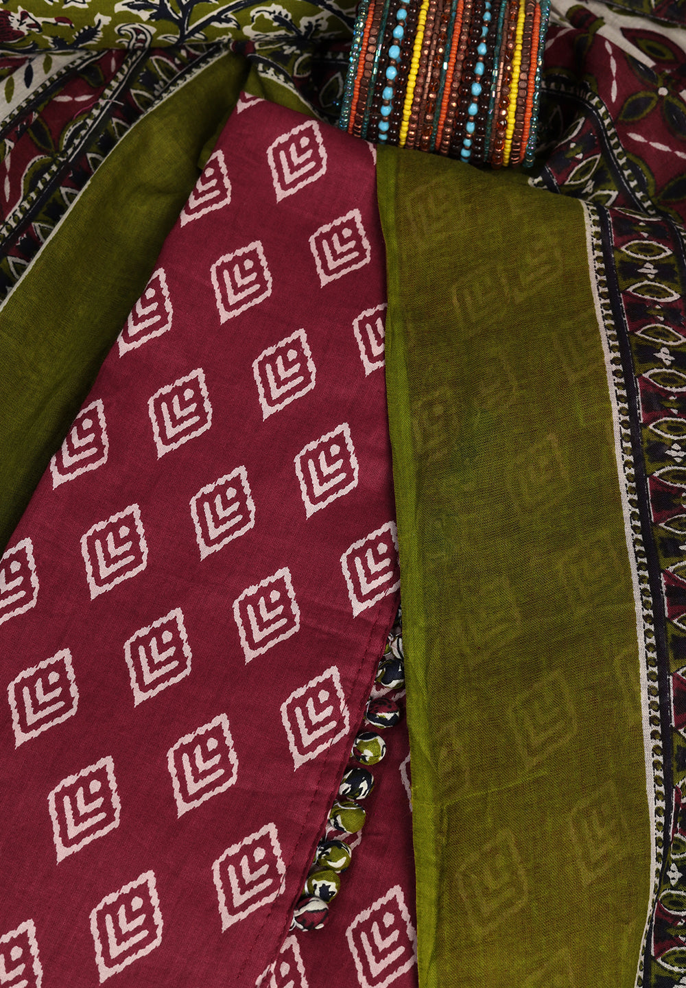 Elevate your style with our Printed Cotton Suit Set. The unstitched fabric is adorned with exquisite Neck Patch. Paired with an unstitched Printed Cotton bottom and a Printed Cotton Dupatta, the ensemble is designed to bring together the beauty of craftsmanship and elegance. Available in Maroon, Blue, Mustard and Rust Color.