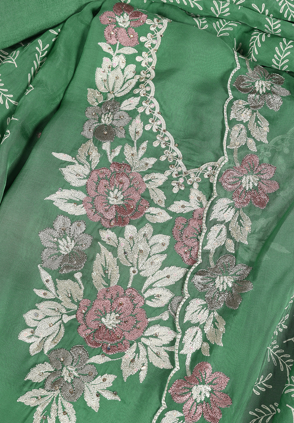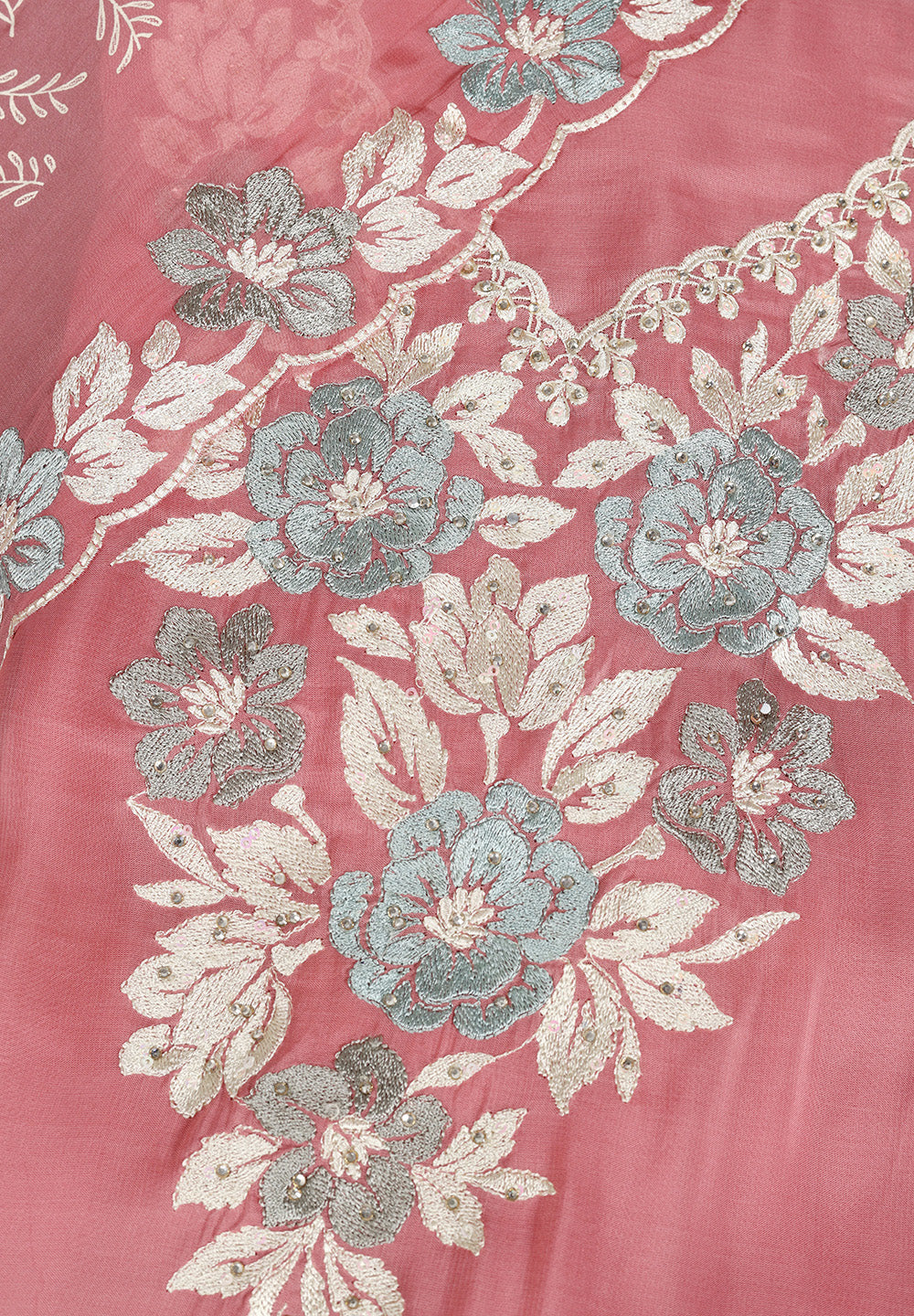 - Accompanied With An Unstitched Cotton Silk Bottom And Chinnon Dupatta