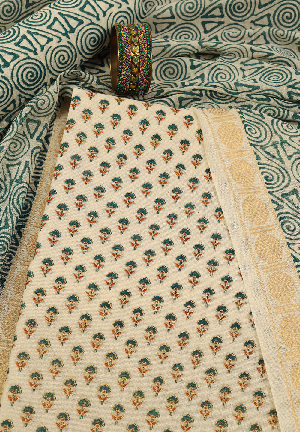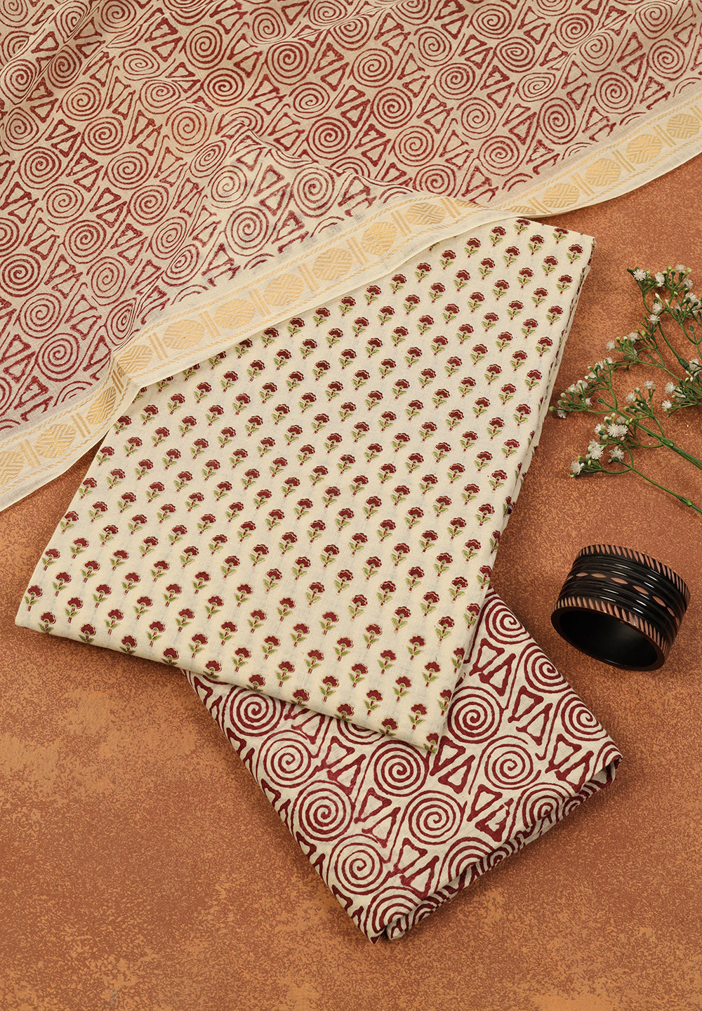 - Designed with Printed Cotton Dupatta