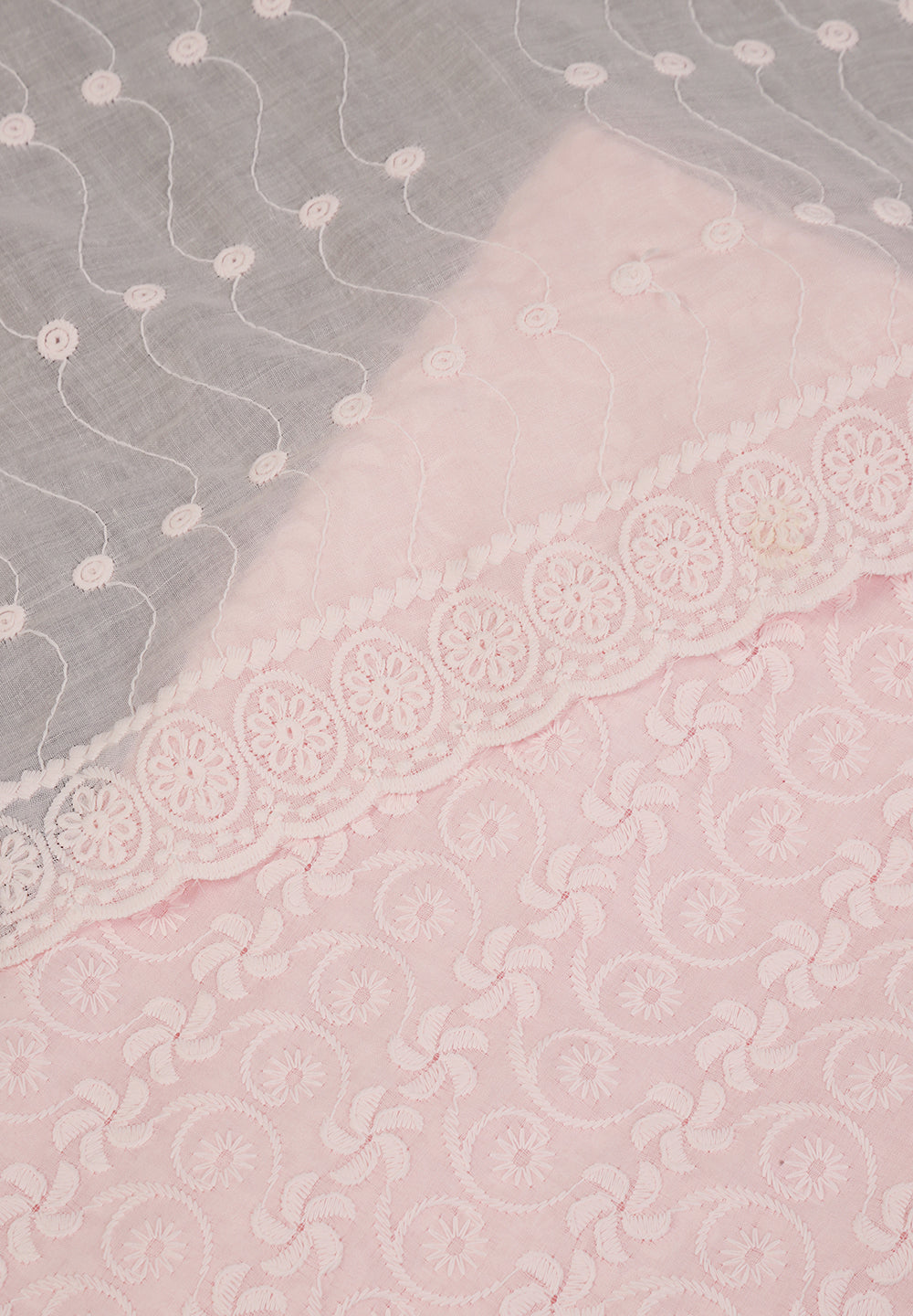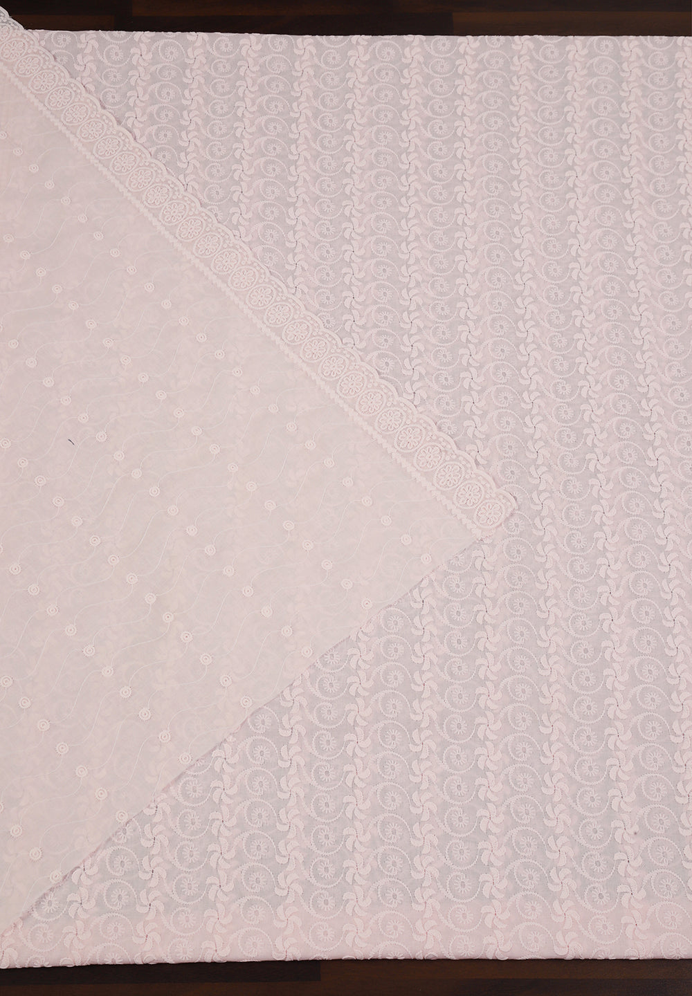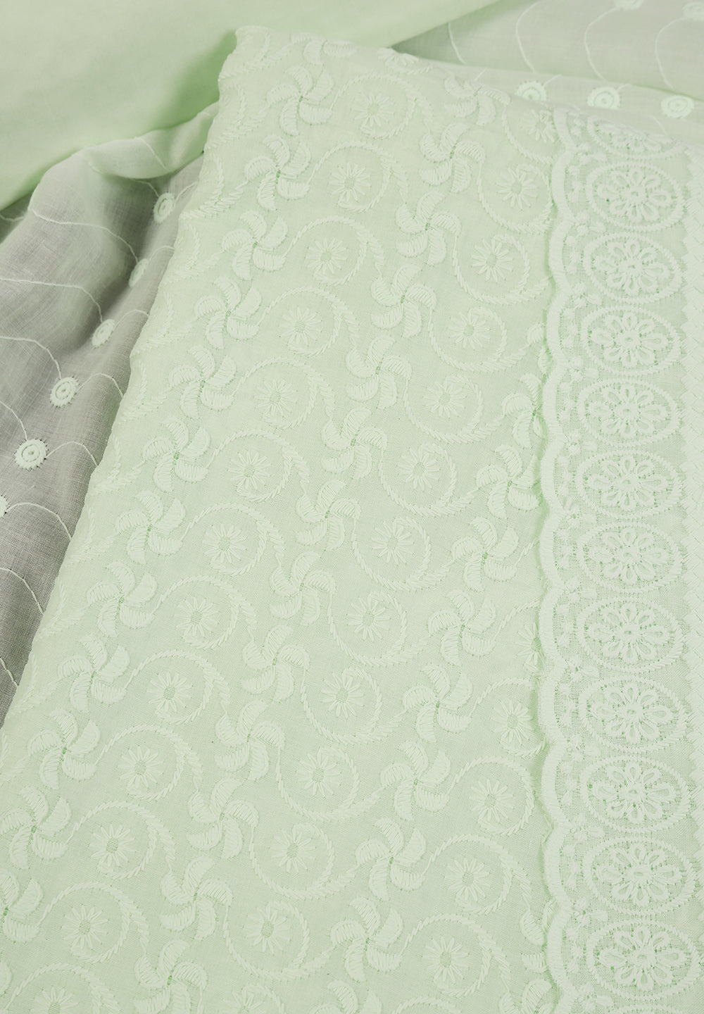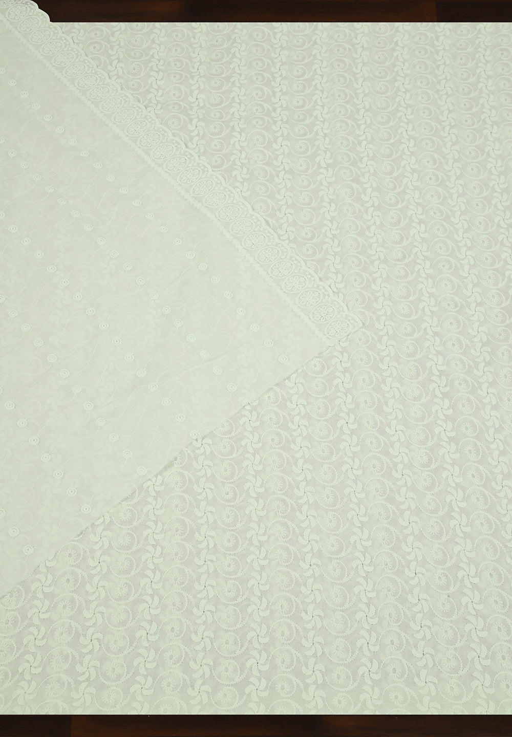 This ethnic ensemble is a Cotton Lucknowi Chikankari Unstitched Suit Piece , featuring traditional Thread Work from Lucknow, India. The set typically includes unstitched fabric for a kurta (top), a bottom, and a matching dupatta.