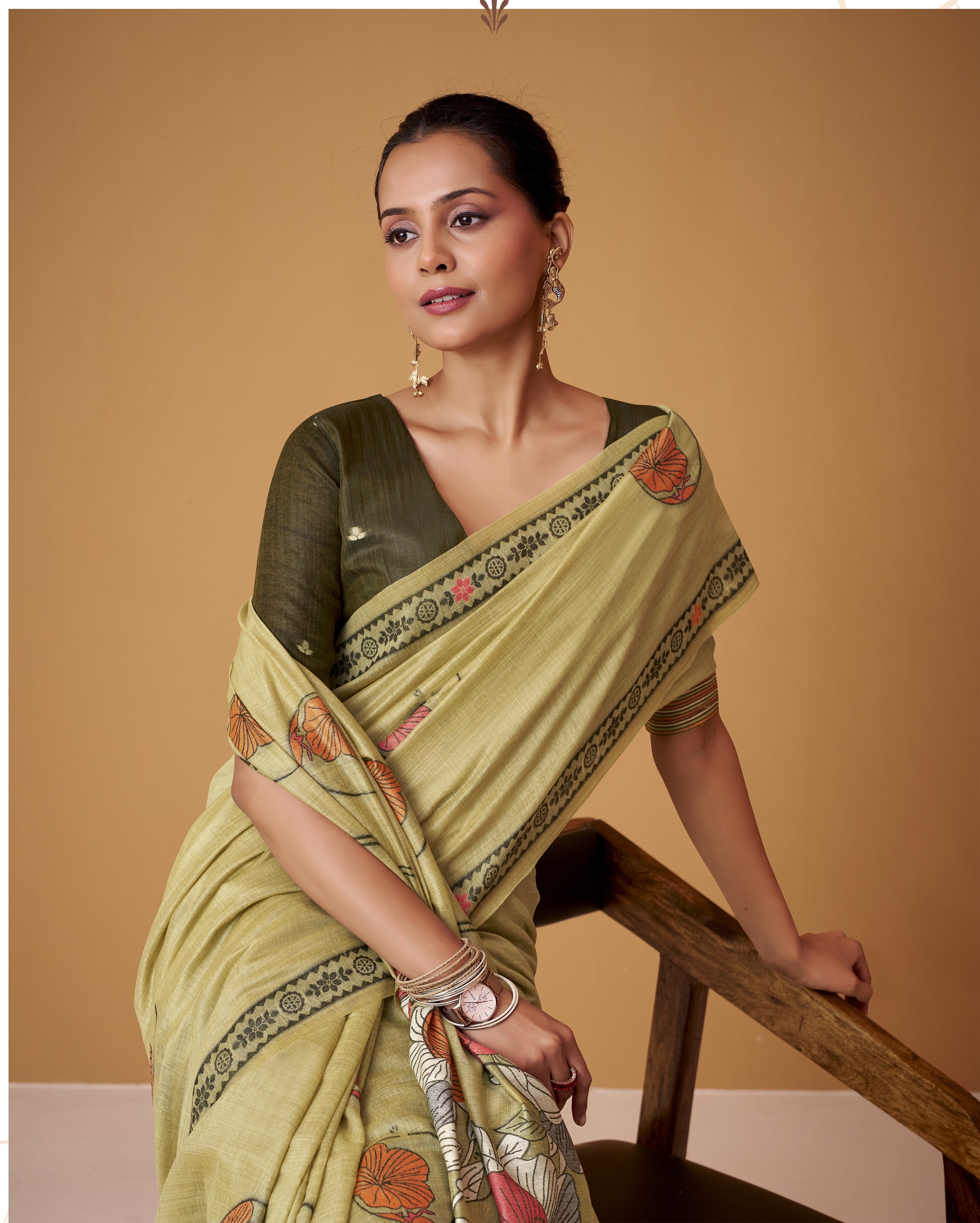 - It Comes With Matching Fabric Unstitched Blouse Piece