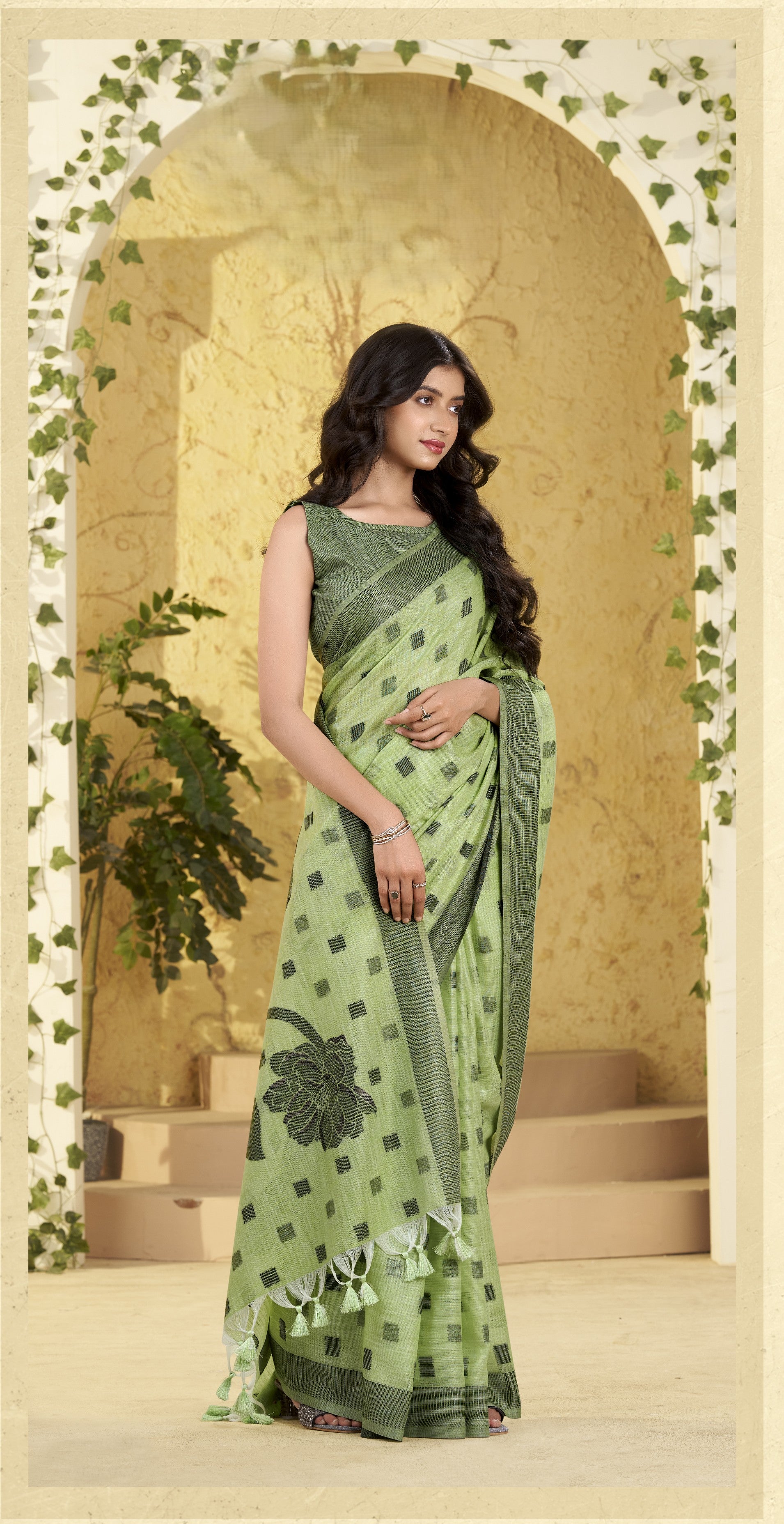 - It Comes With Matching Fabric Unstitched Blouse Piece
