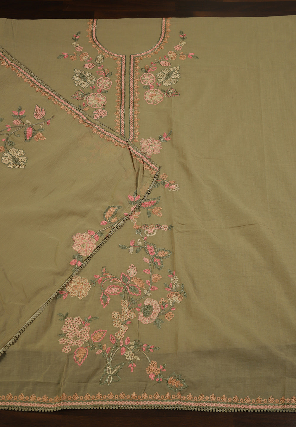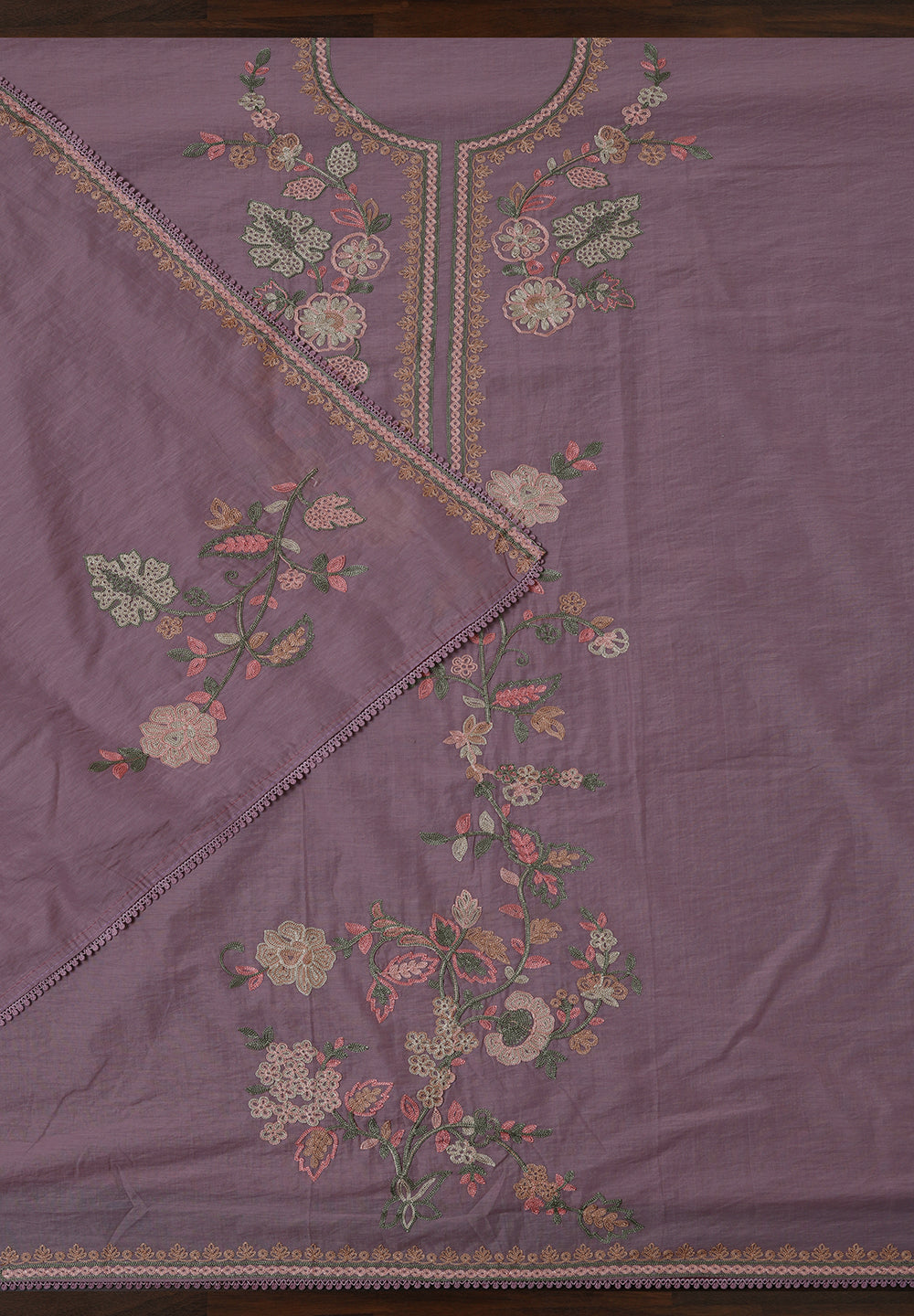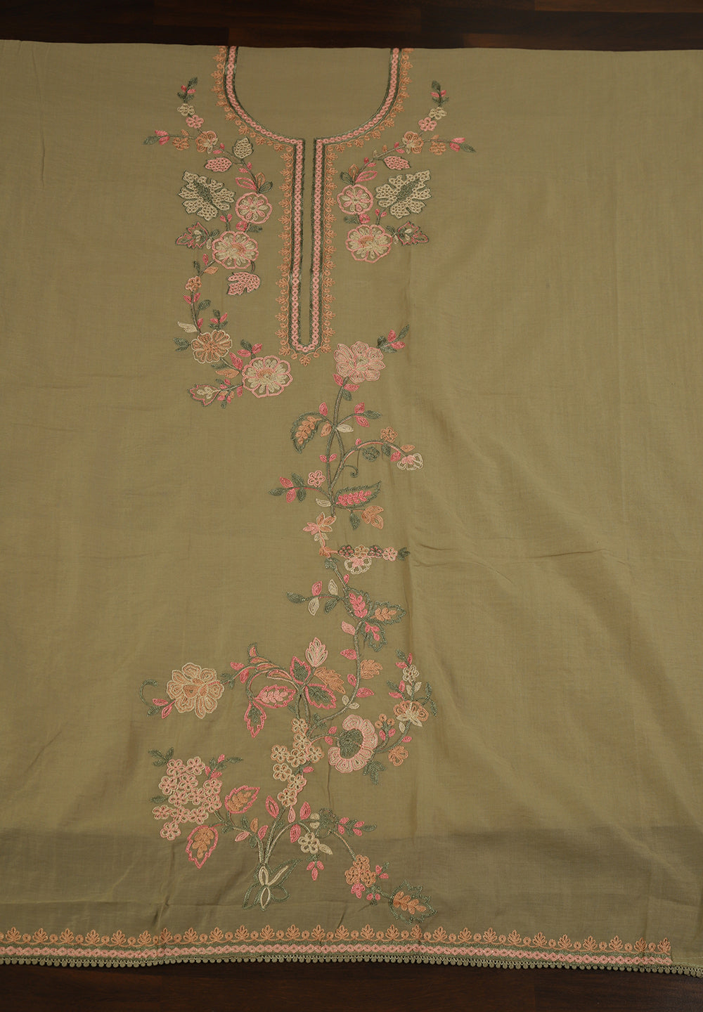 Cotton Unstitched Suit With Multi Resham Thread Work