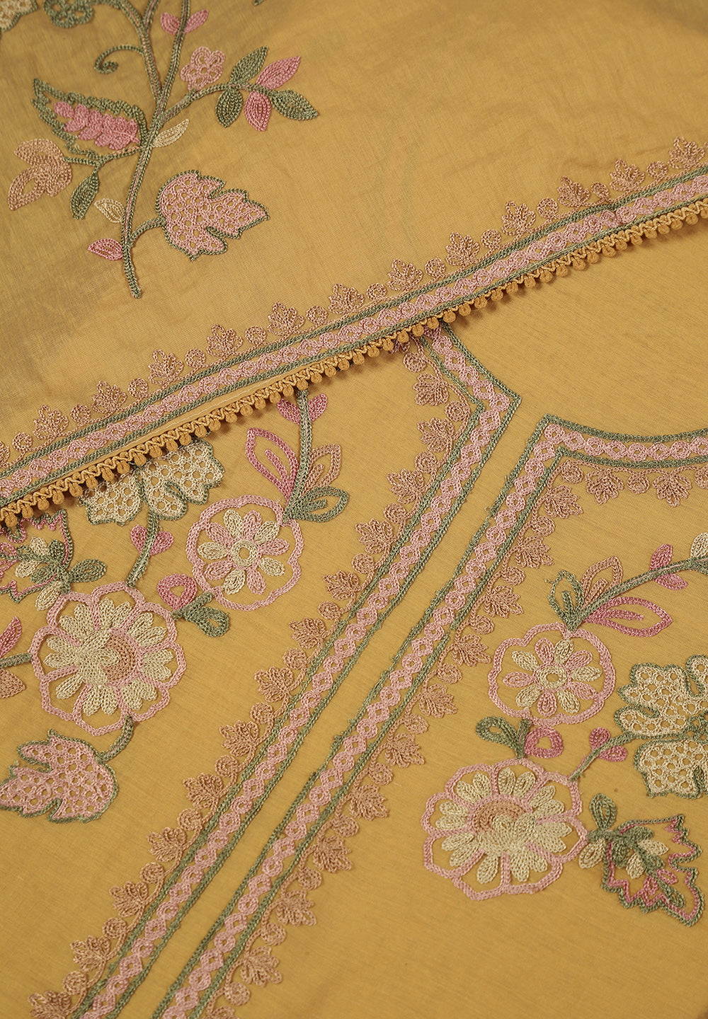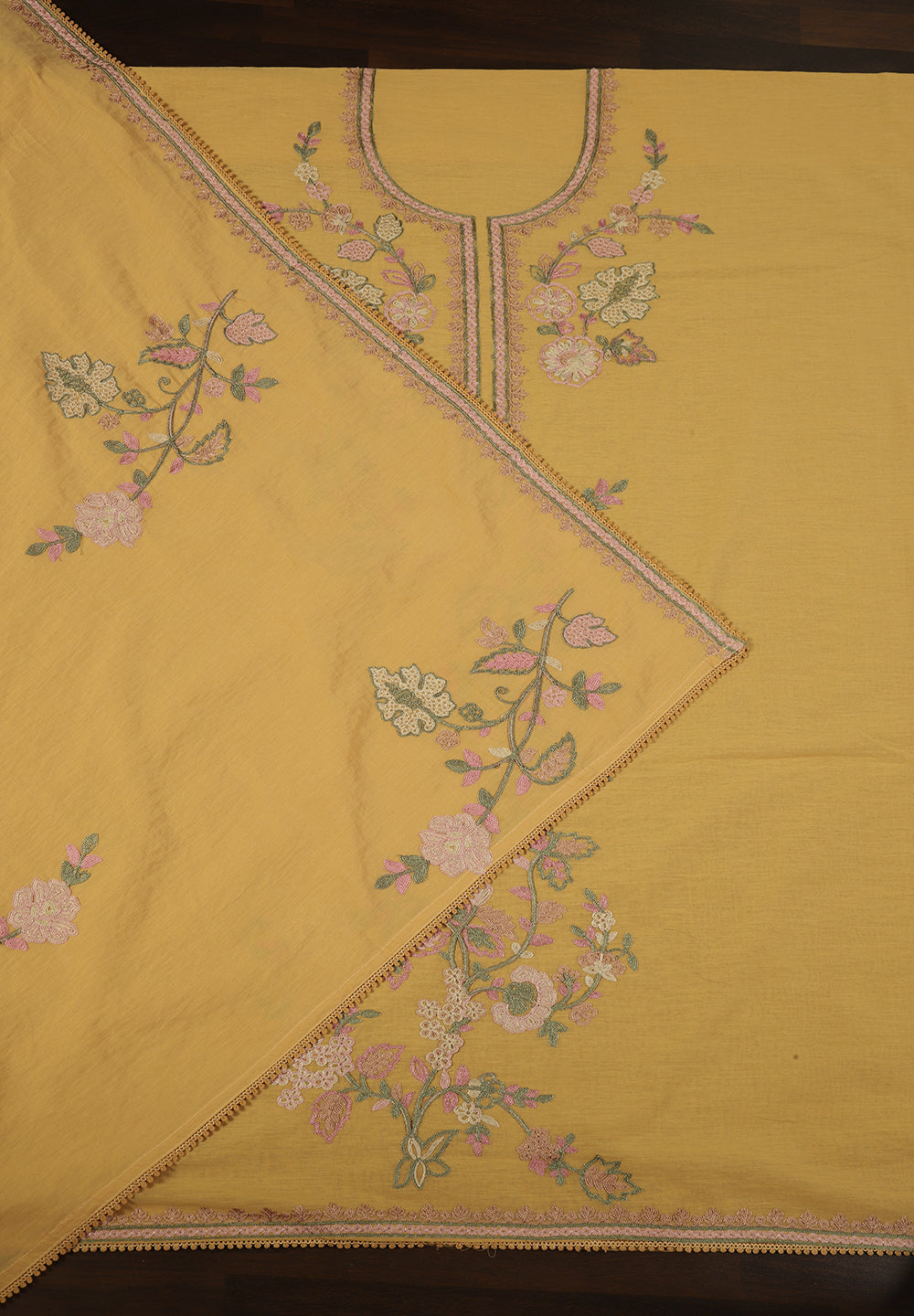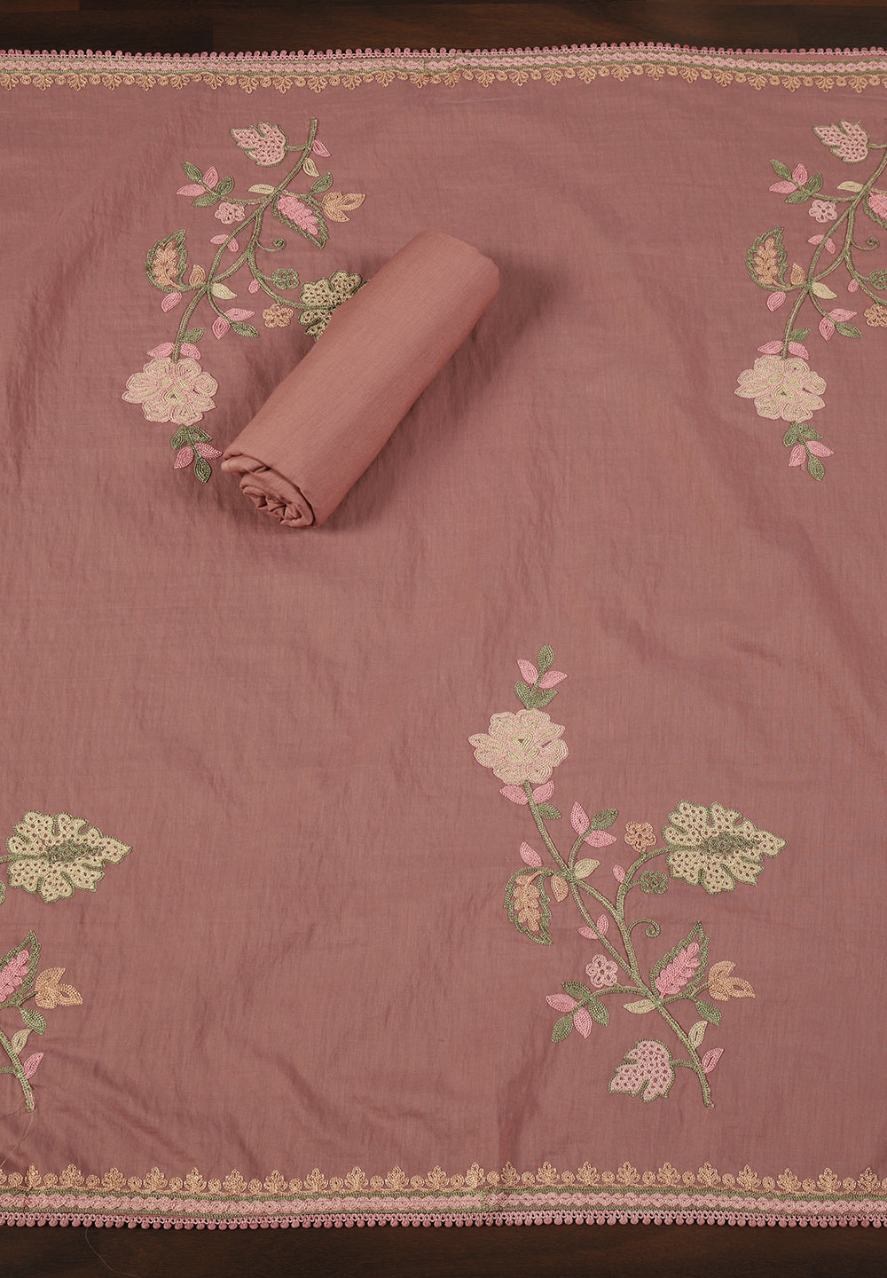 Cotton Unstitched Suit With Multi Resham Thread Work